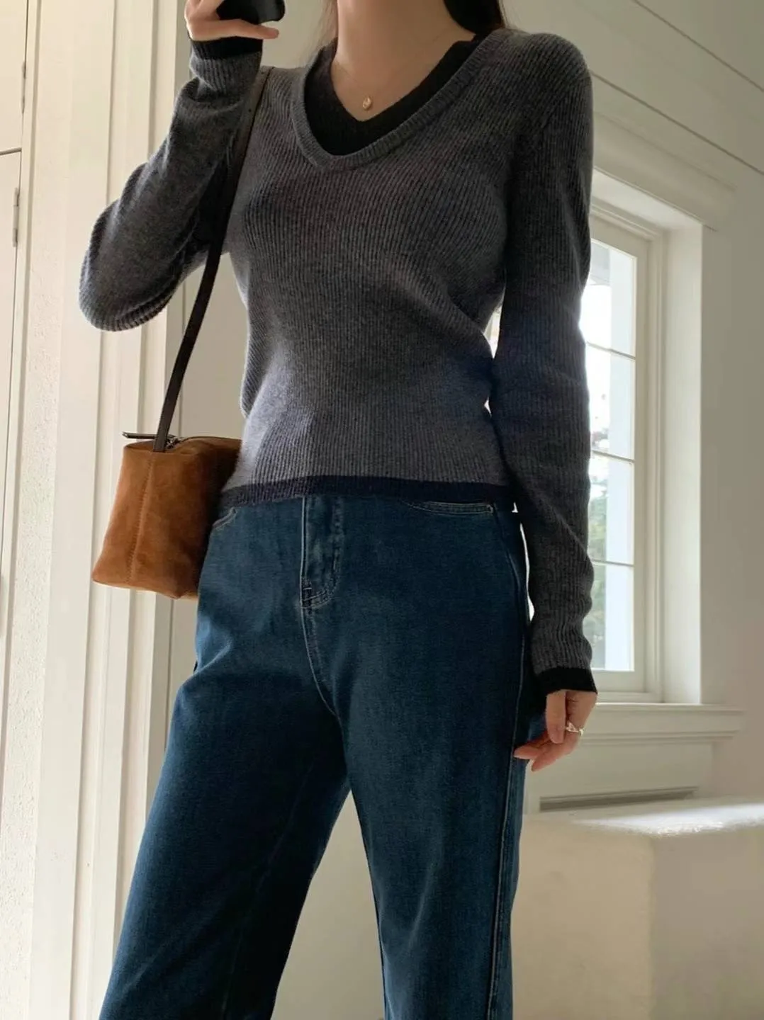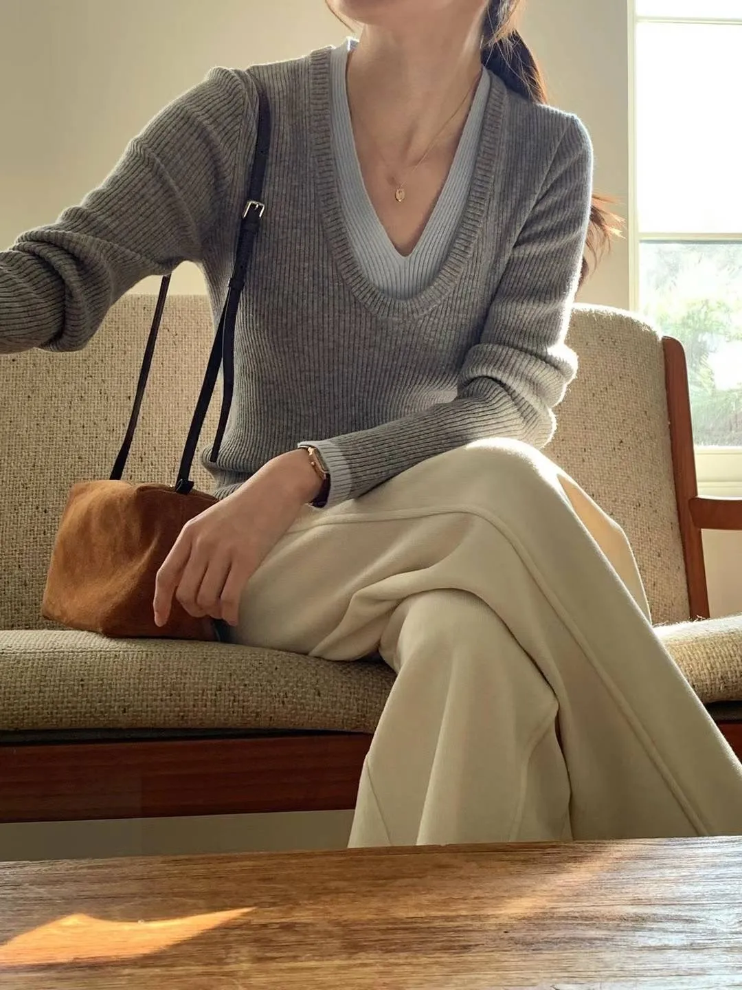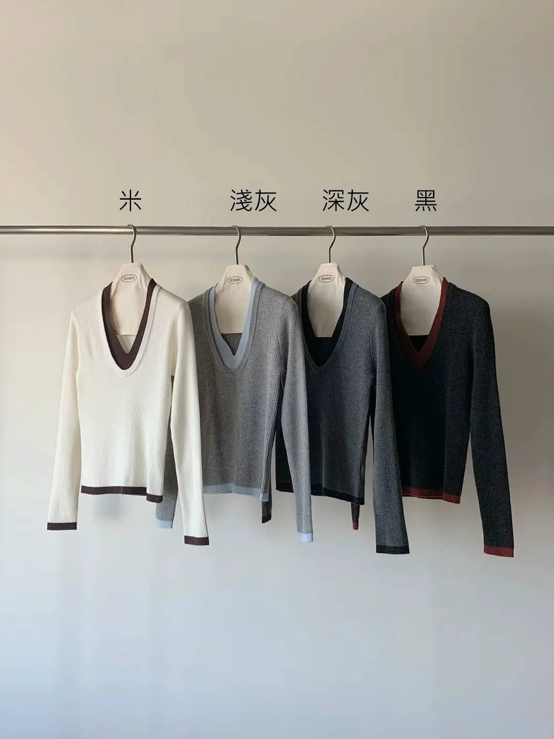 DC505層次感V領顯瘦羊毛針織衣 米 黑 淺灰 深灰 官網價$1180 線上價$1150