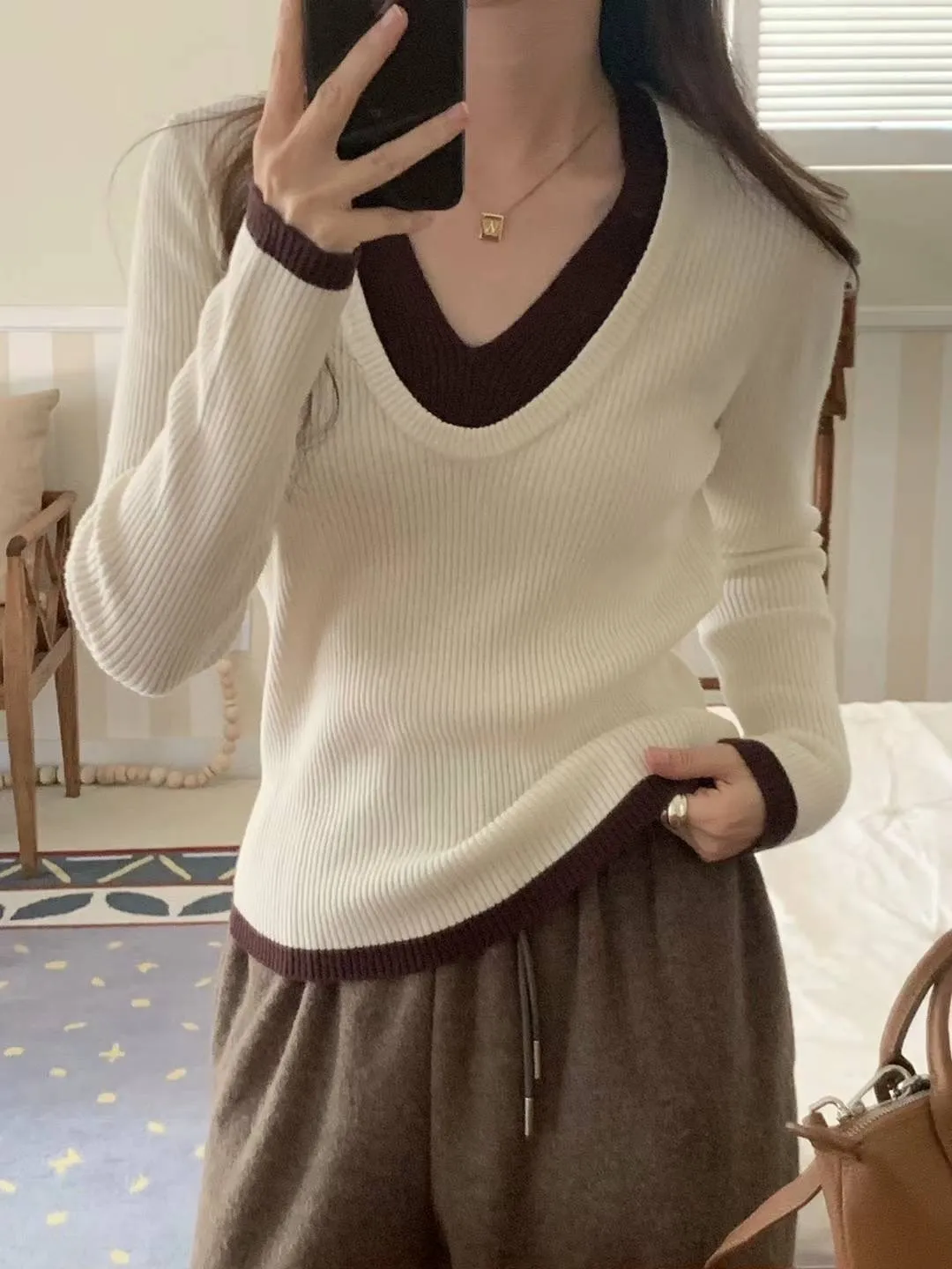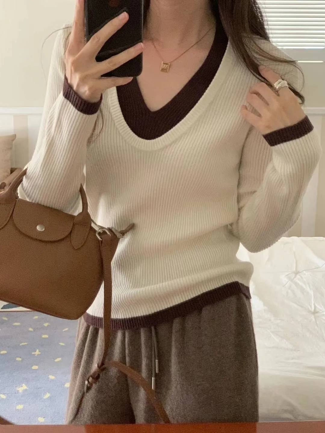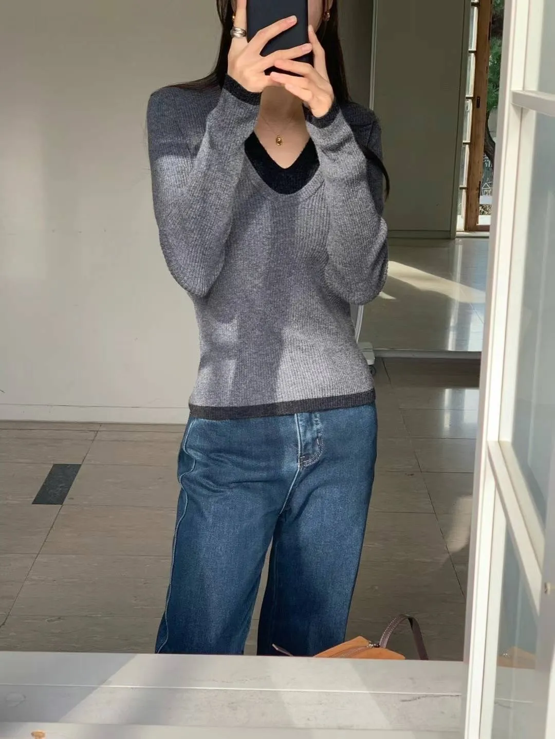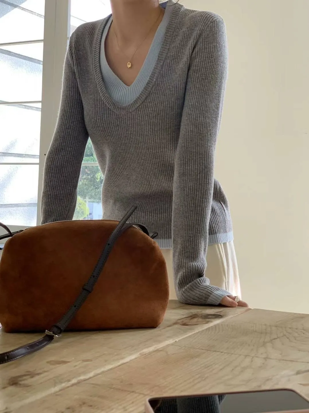 DC505層次感V領顯瘦羊毛針織衣 米 黑 淺灰 深灰 官網價$1180 線上價$1150