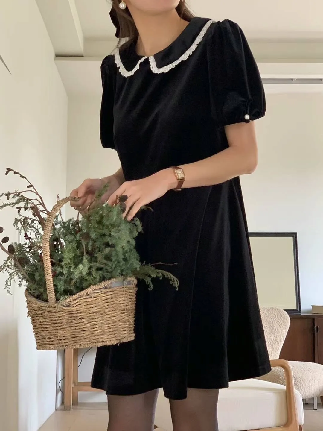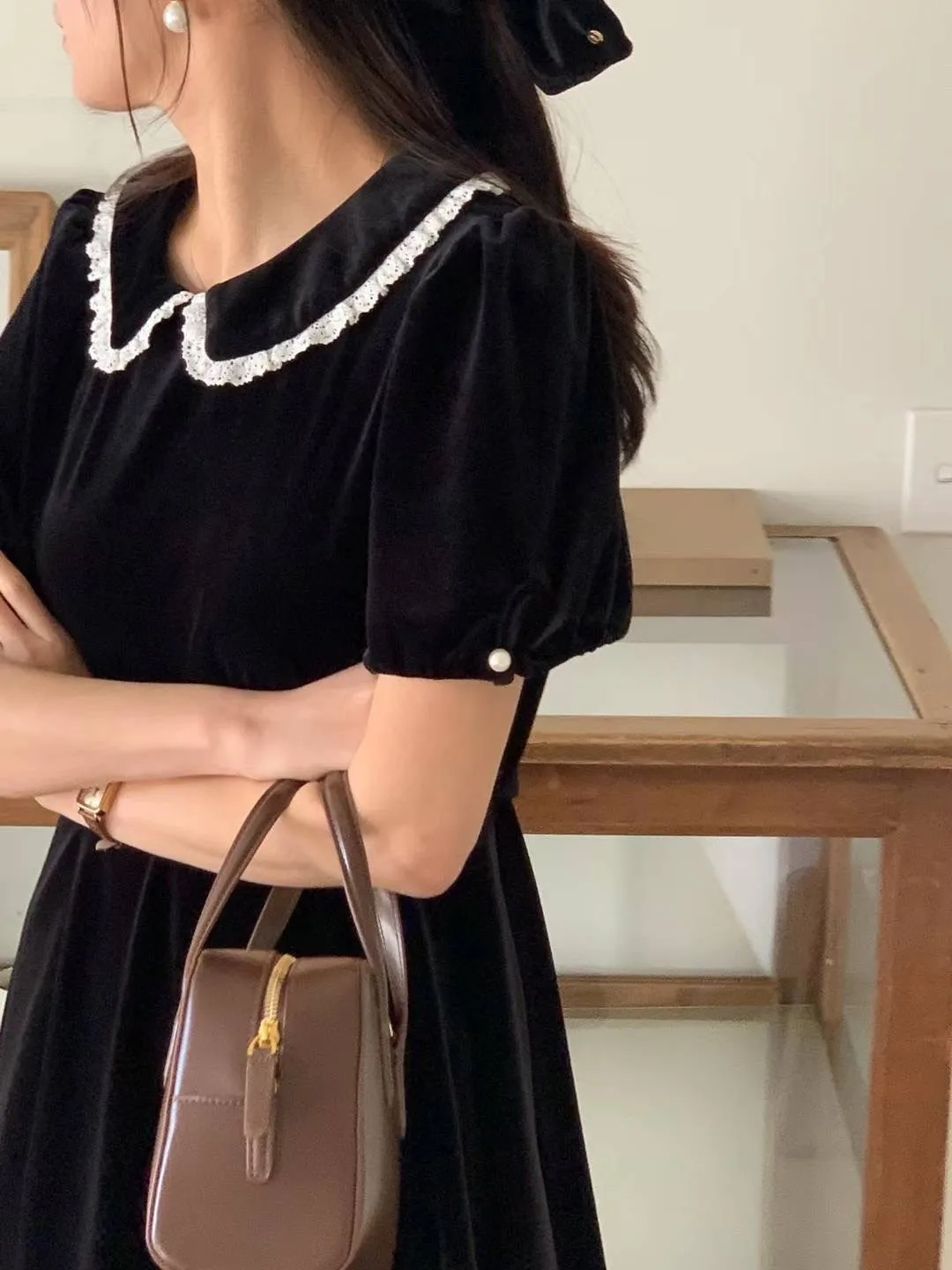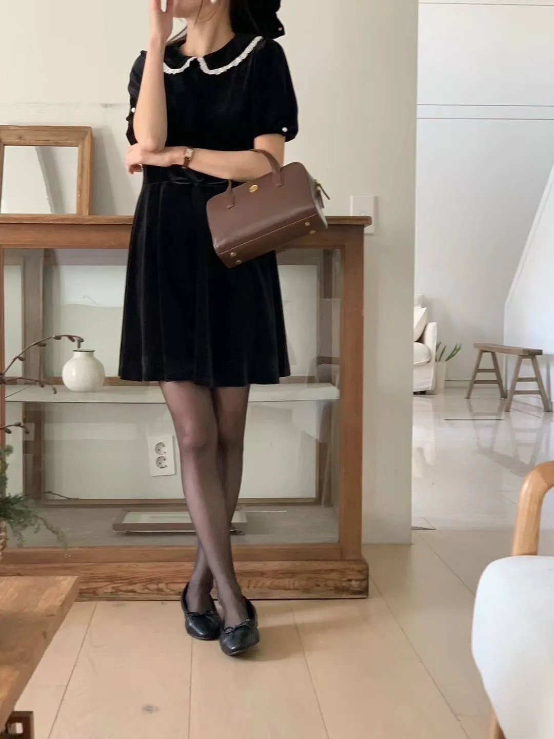 DC511流光絲絨蕾絲領洋裝 官網價$1280 線上價$1250