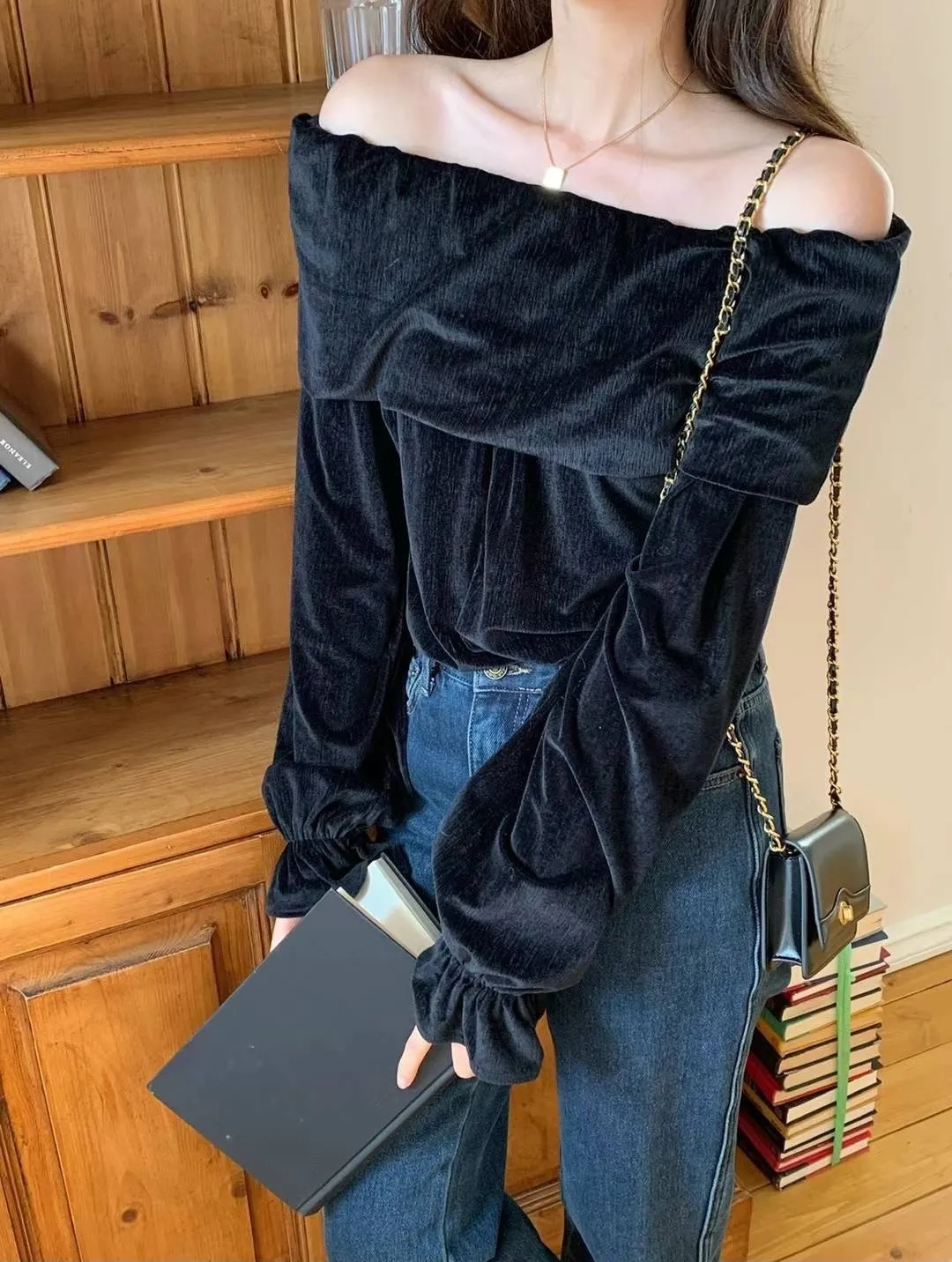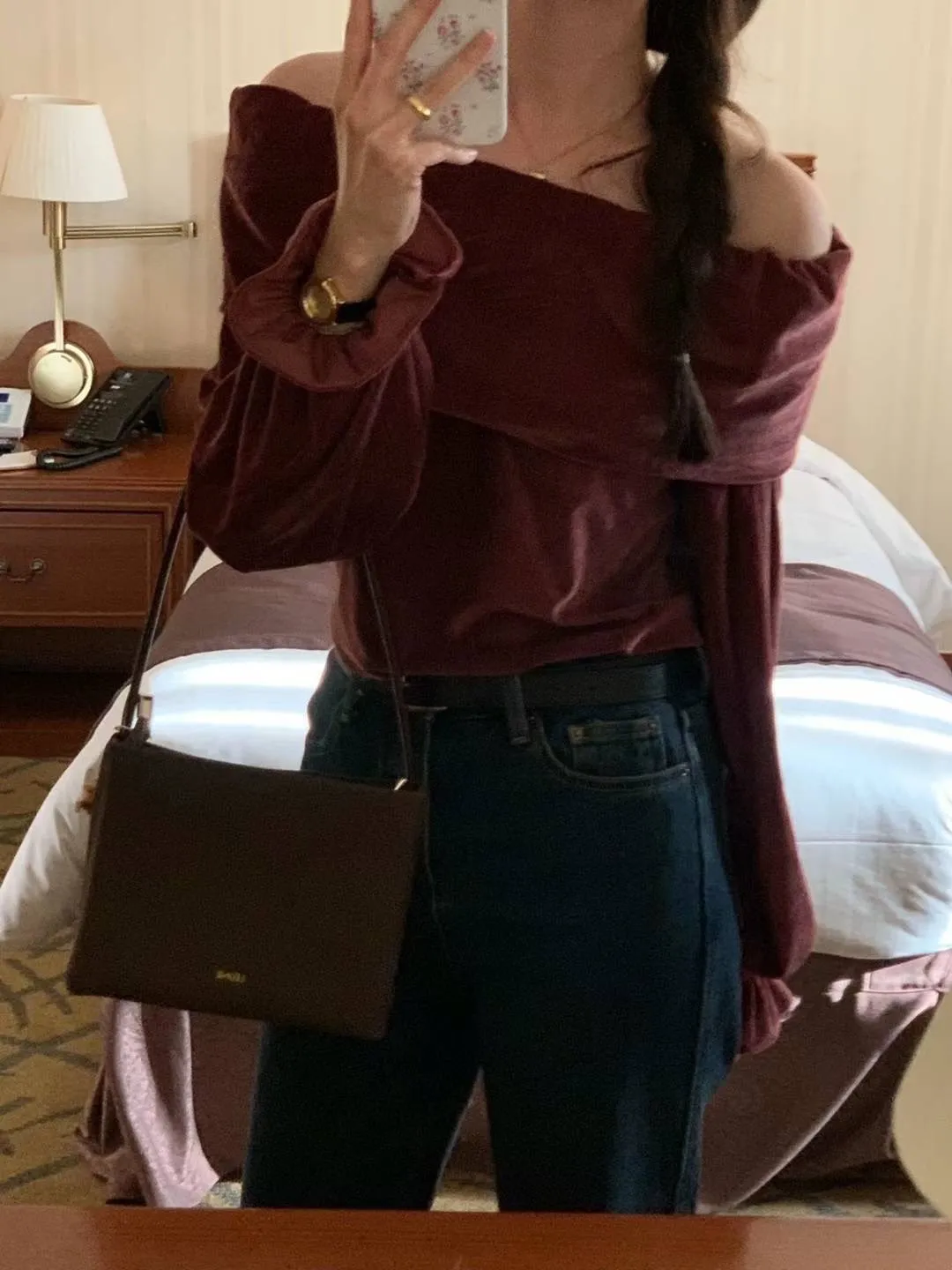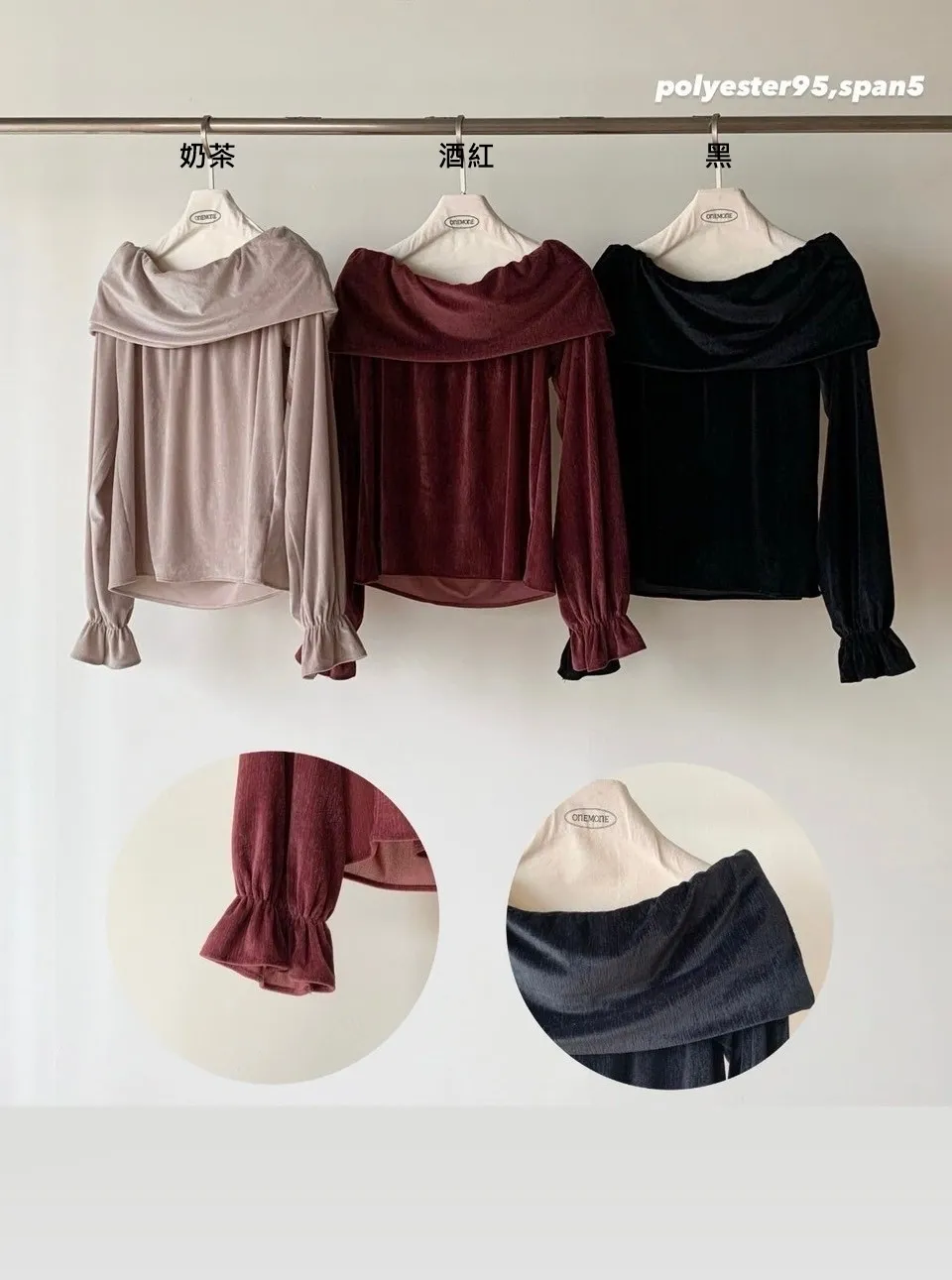 DC512女神鎖骨層次天鵝絨上衣 黑 酒紅 奶茶 官網價$920 線上價$890