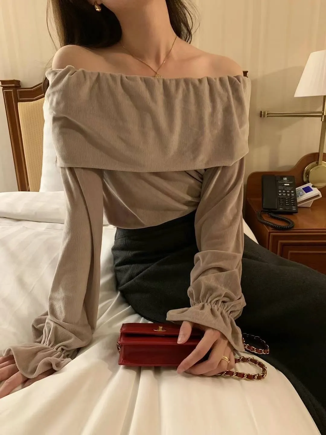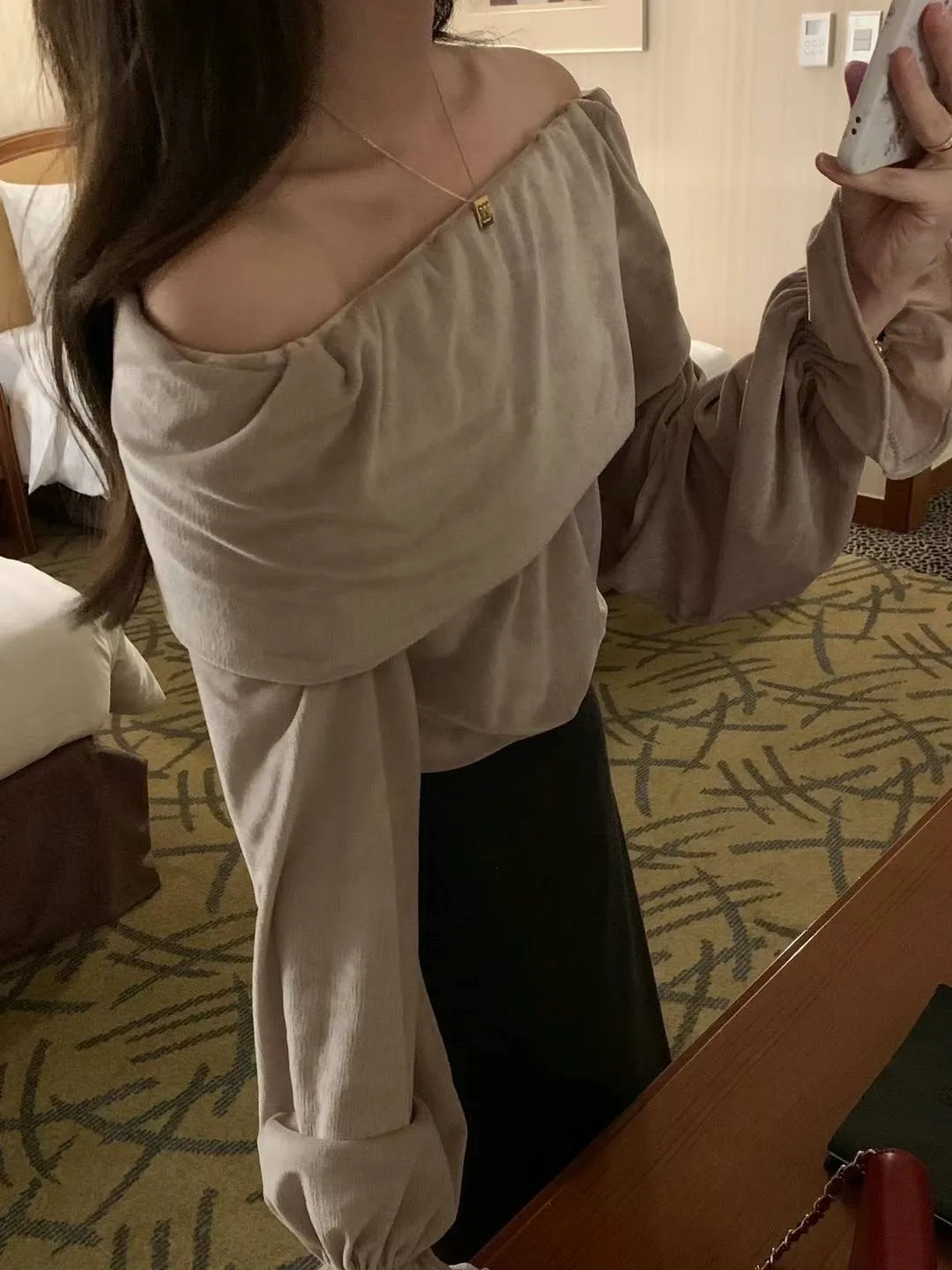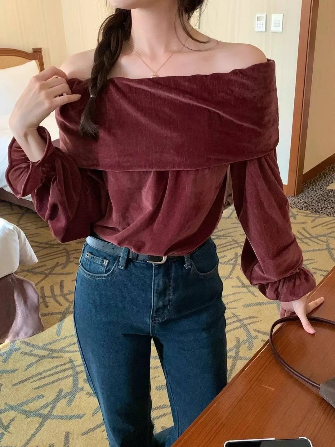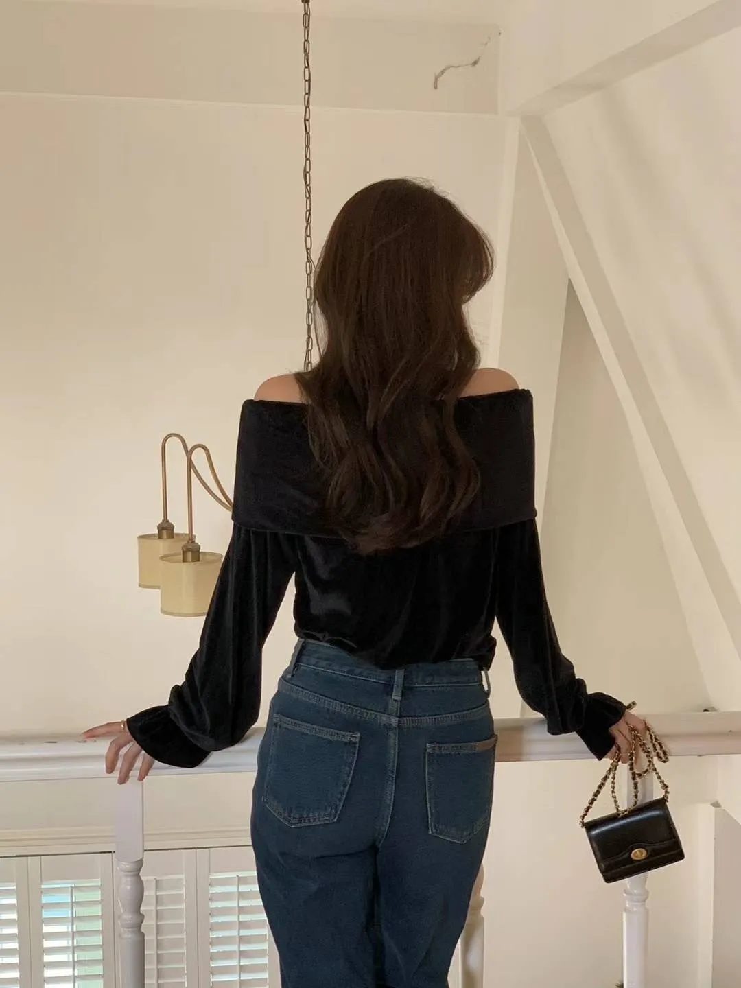 DC512女神鎖骨層次天鵝絨上衣 黑 酒紅 奶茶 官網價$920 線上價$890