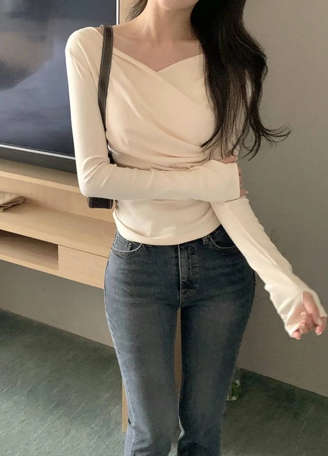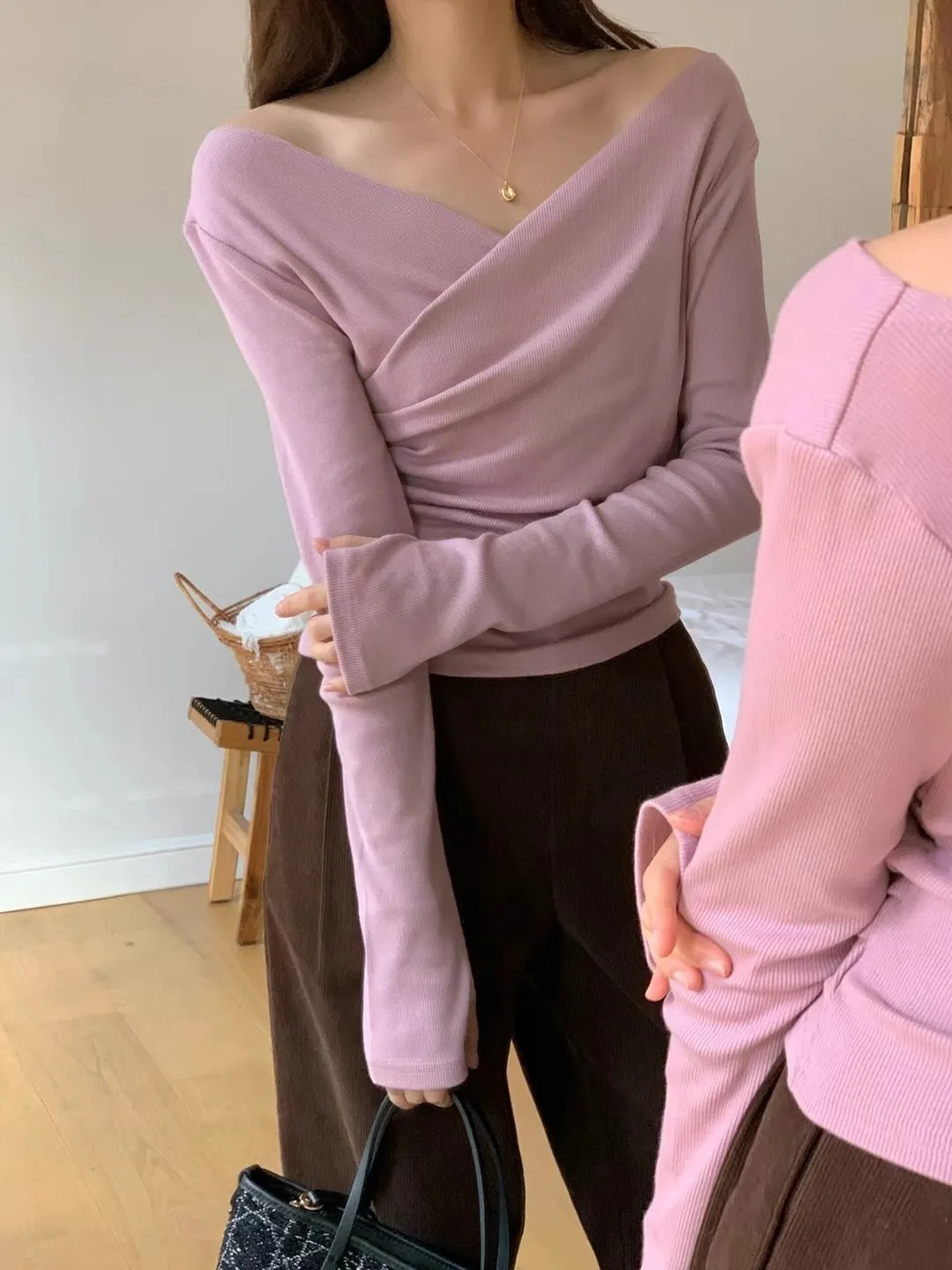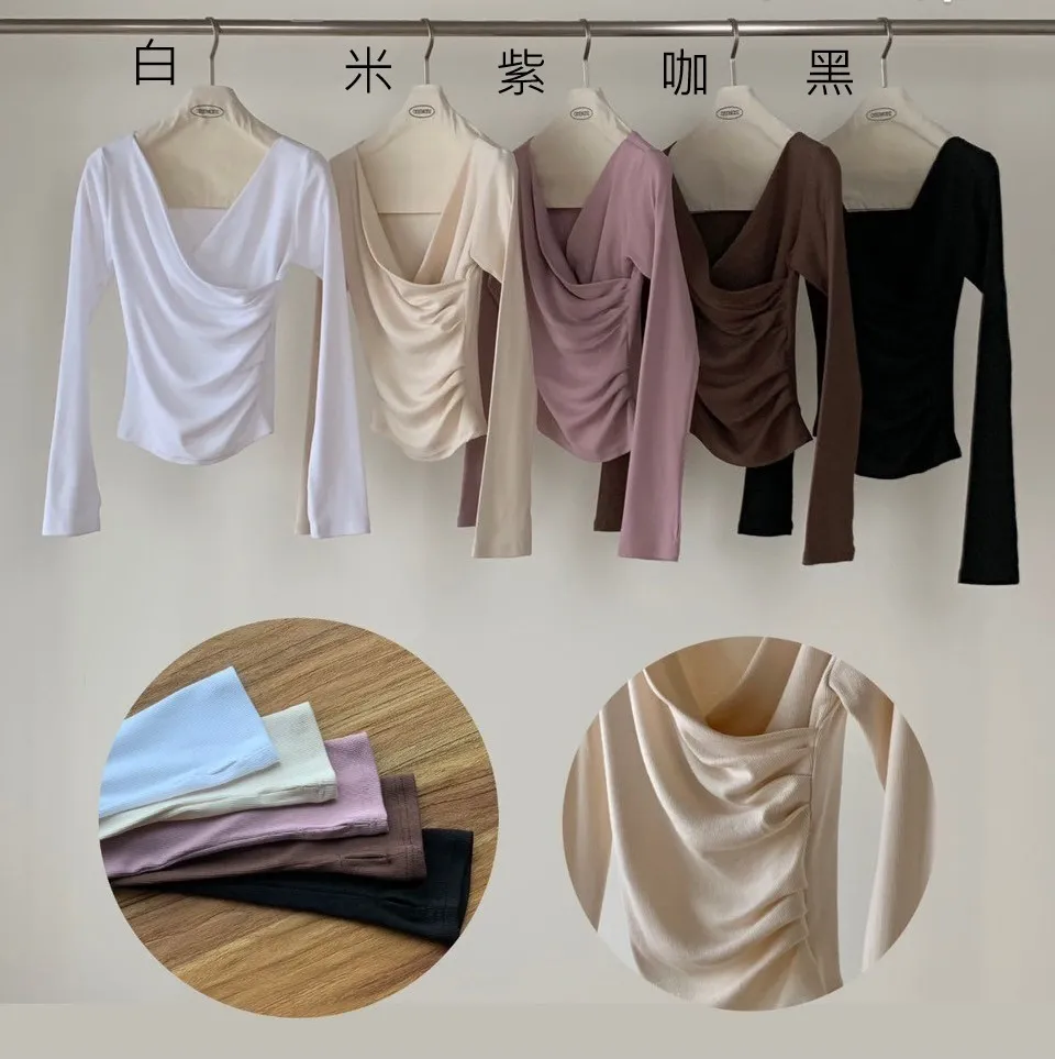 DC516交叉V領女神莫代爾上衣 白 米 紫 咖 黑 官網價$650 線上價$620