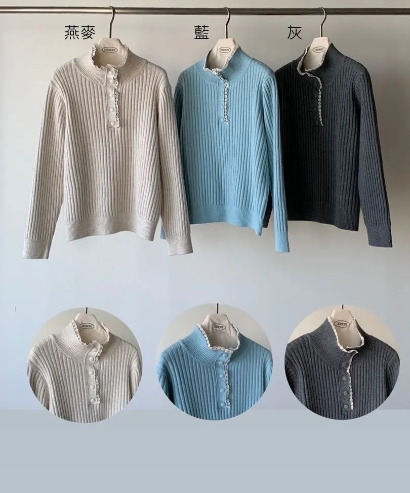 DC529特價蕾絲翻領氣質針織衫 藍 灰 燕麥 特價$699