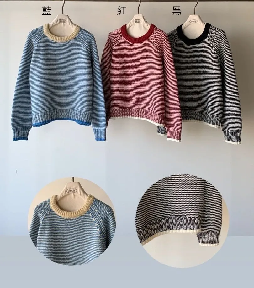 DC533特價條紋羊毛針織上衣 藍 紅 黑 特價$780