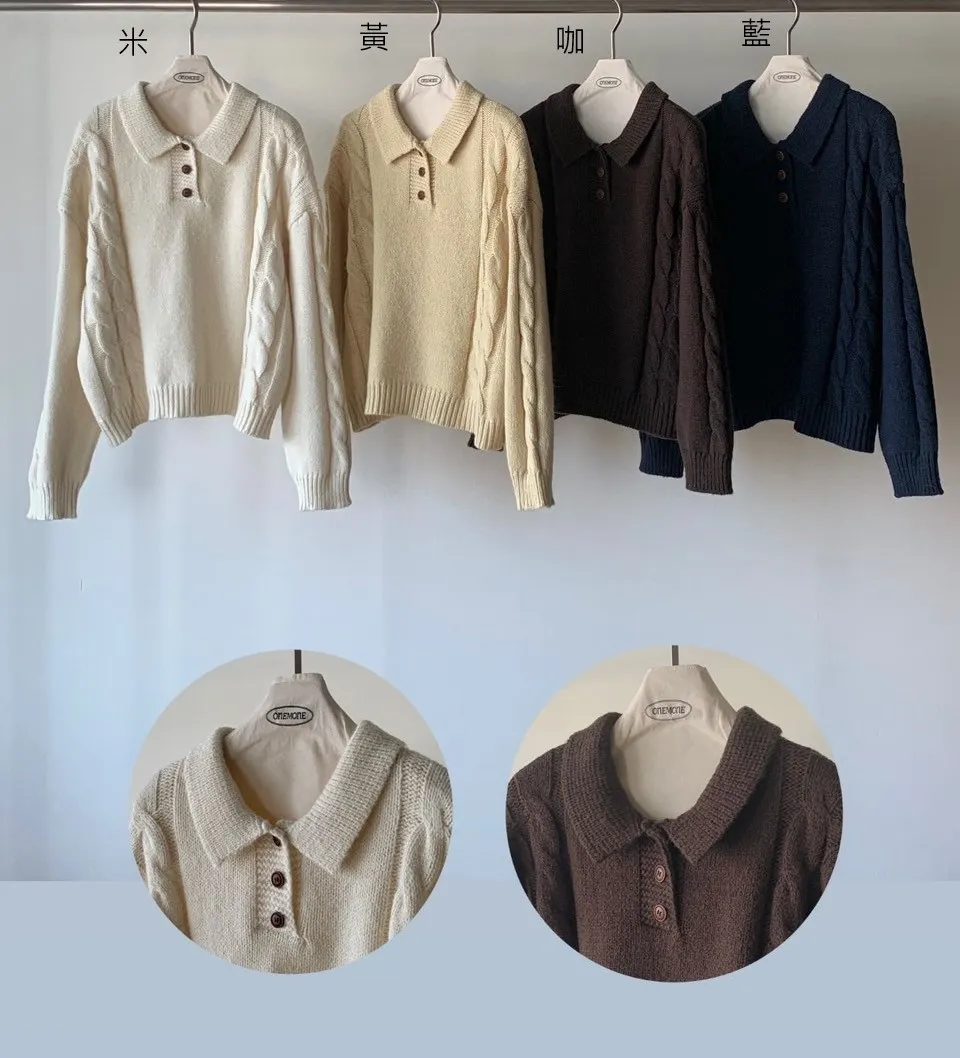 DC534特價三釦翻領麻花上衣 米 黃 藍 咖 特價$799