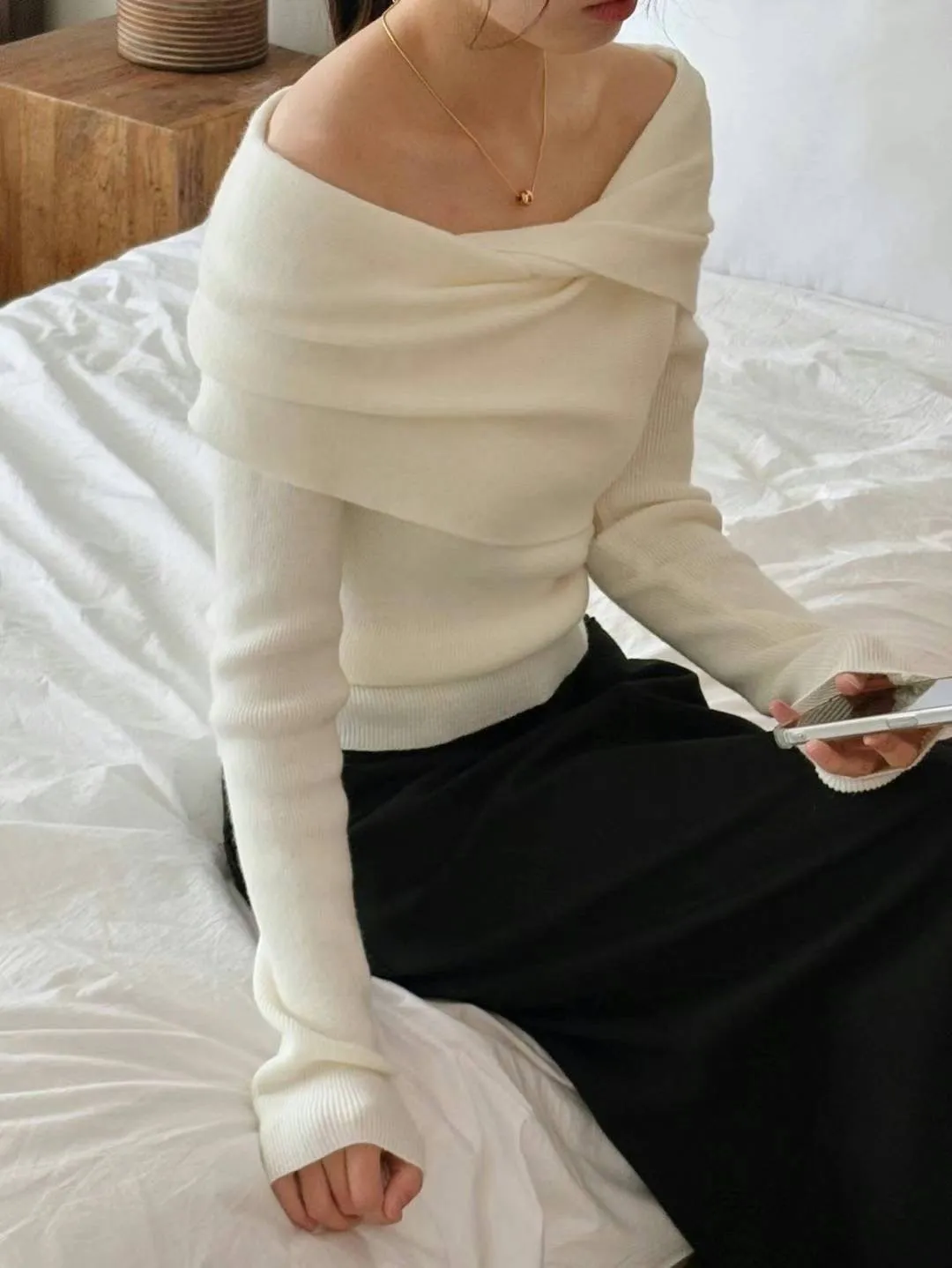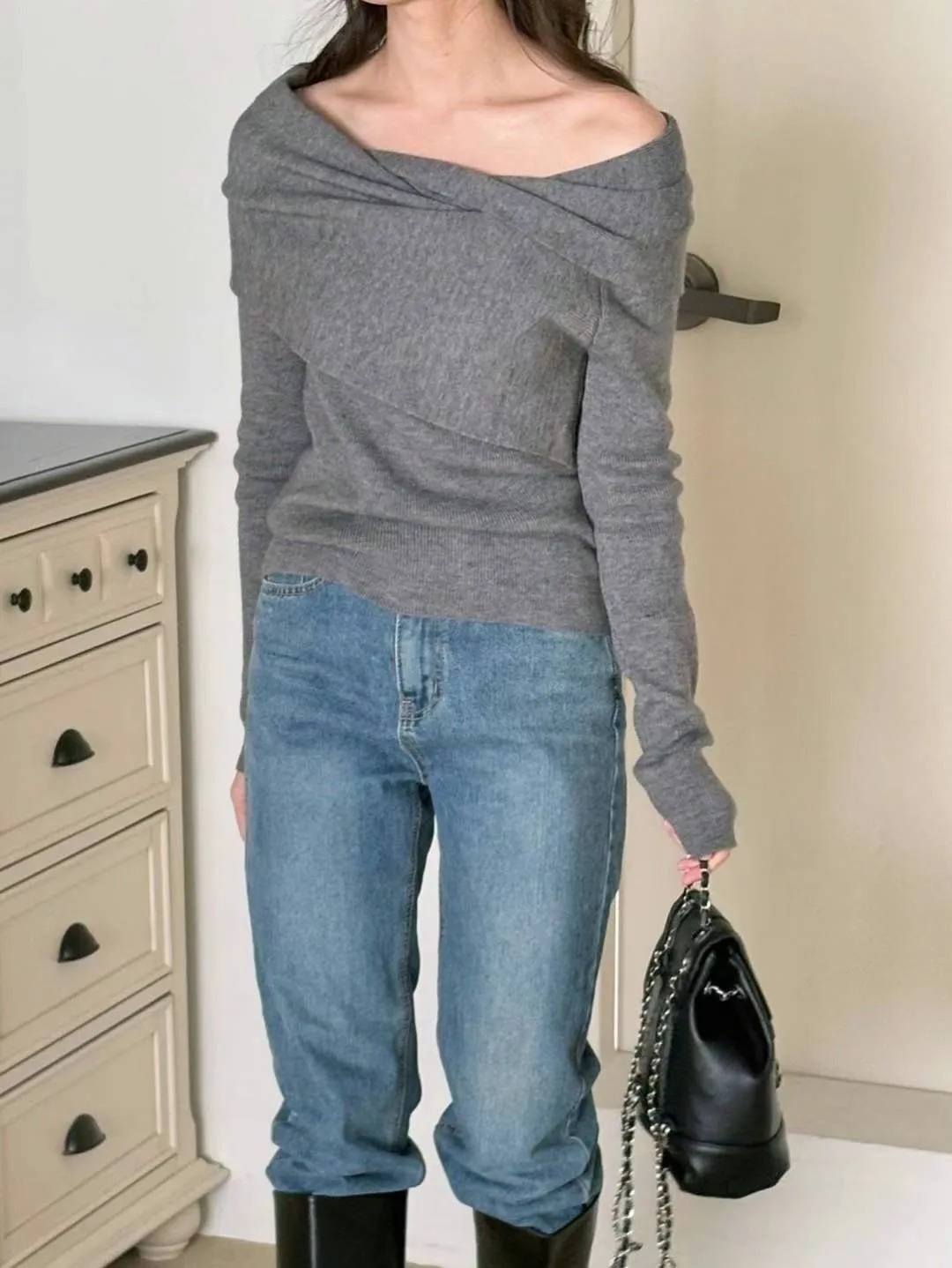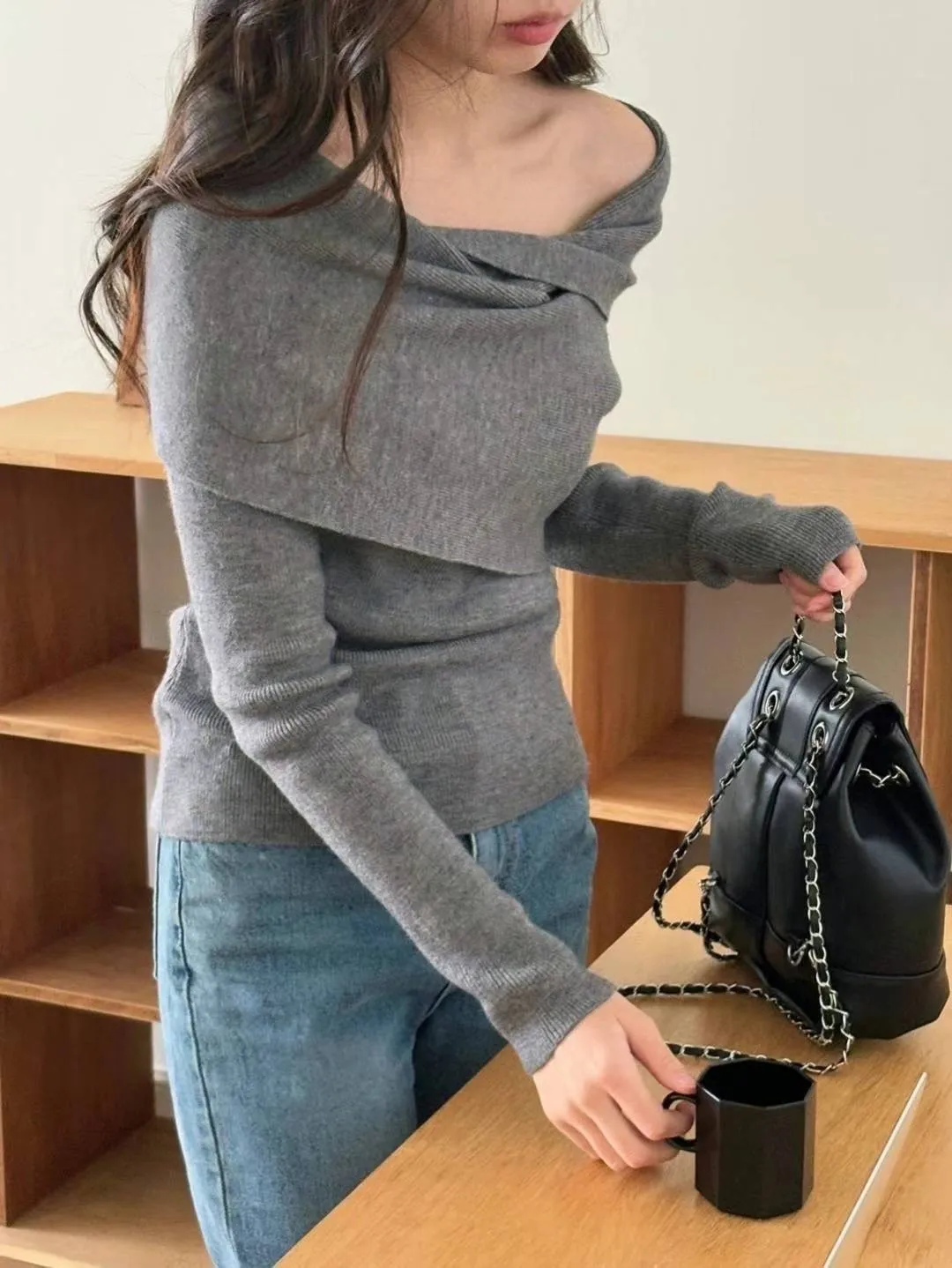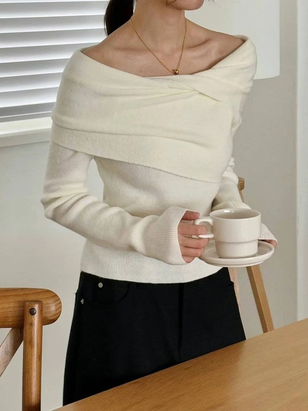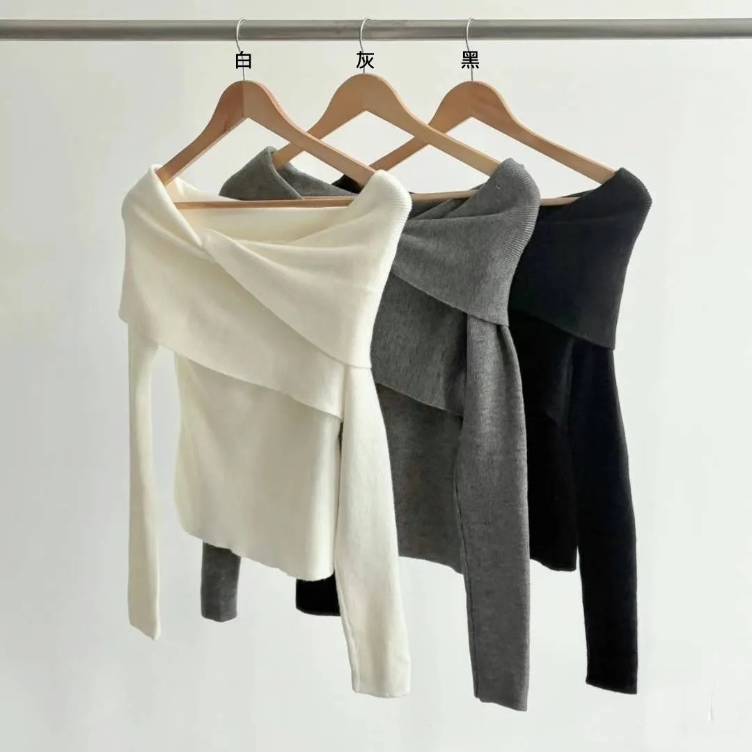 壓克力+聚酯+彈力 交叉層次 可拉一字領 穿到L號