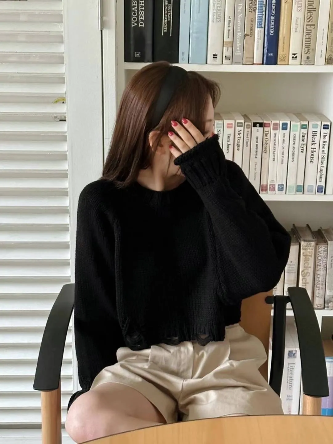 壓克力+聚酯 推薦款 抓破設計 短版好比例