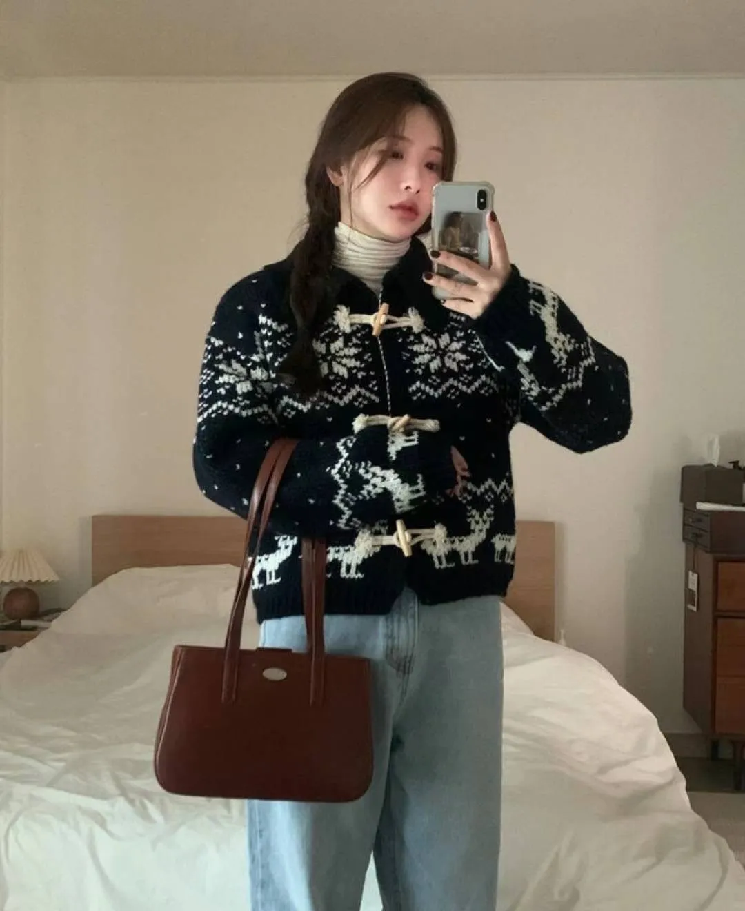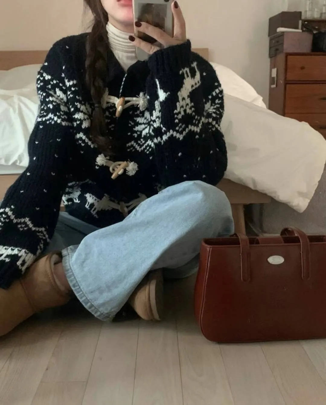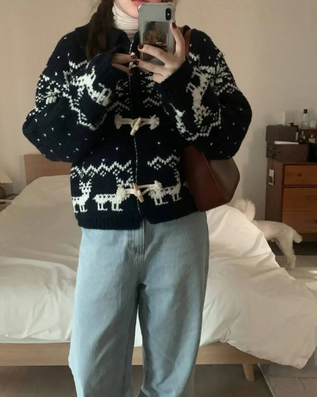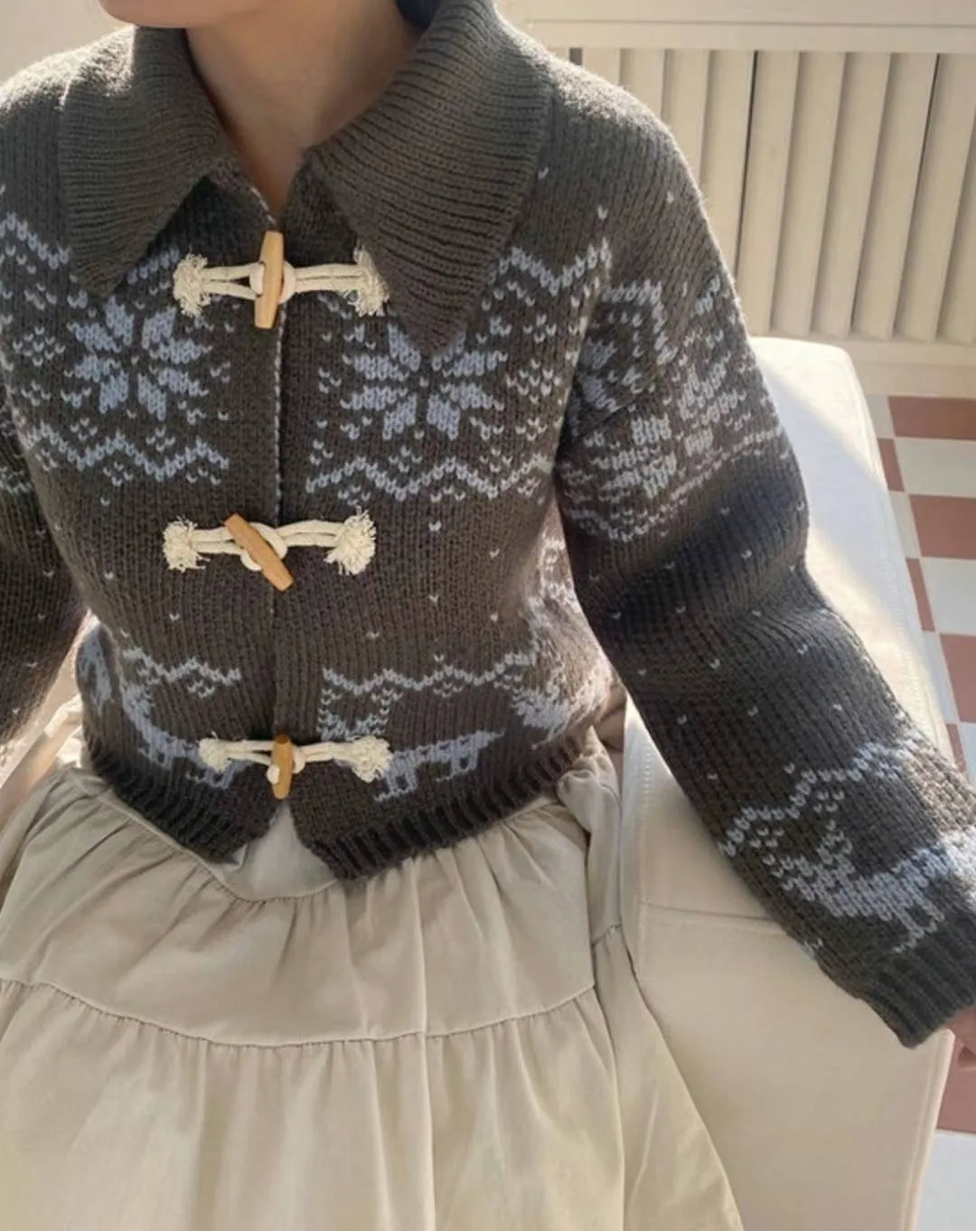 DC603雪花酒桶釦針織衫 深藍 灰 奶茶 官網價$1090 線上價$1060