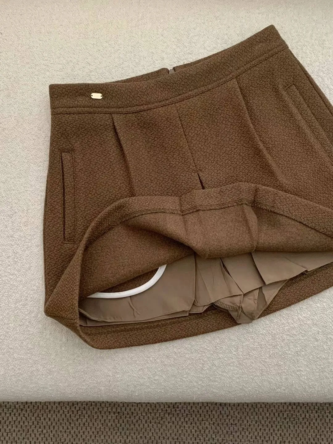 羊毛+尼龍+聚酯+彈力 有口袋 內磨毛 後拉鍊穿脫 是褲裙