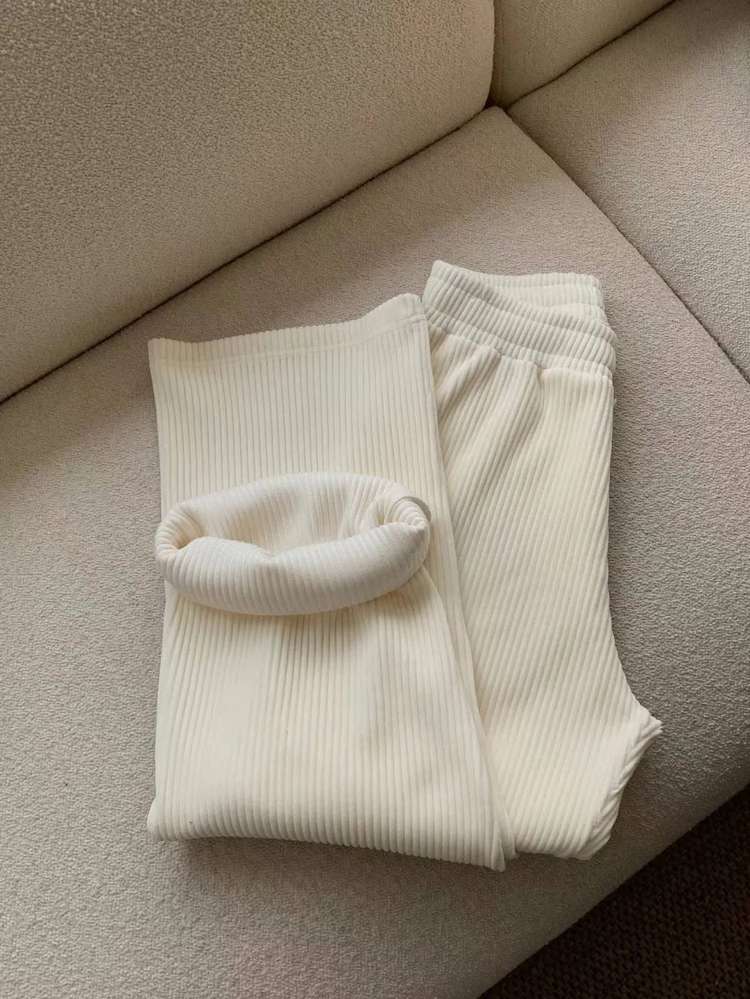 棉+聚酯+彈力纖維 絲絨高級感 全腰鬆緊 不易皺 視覺長腿