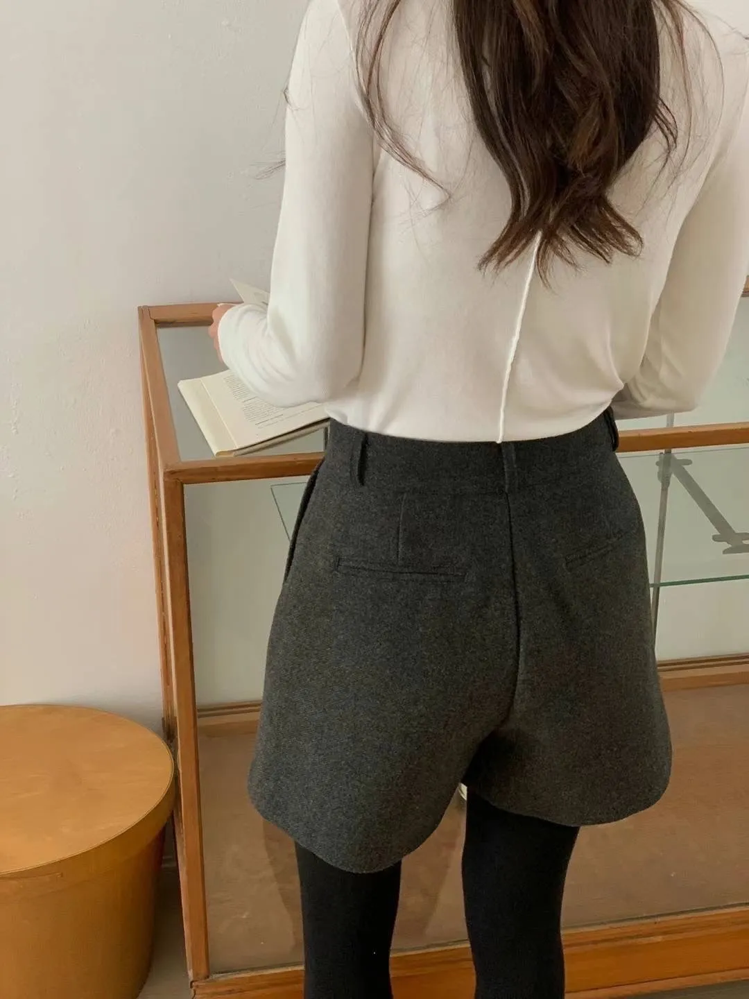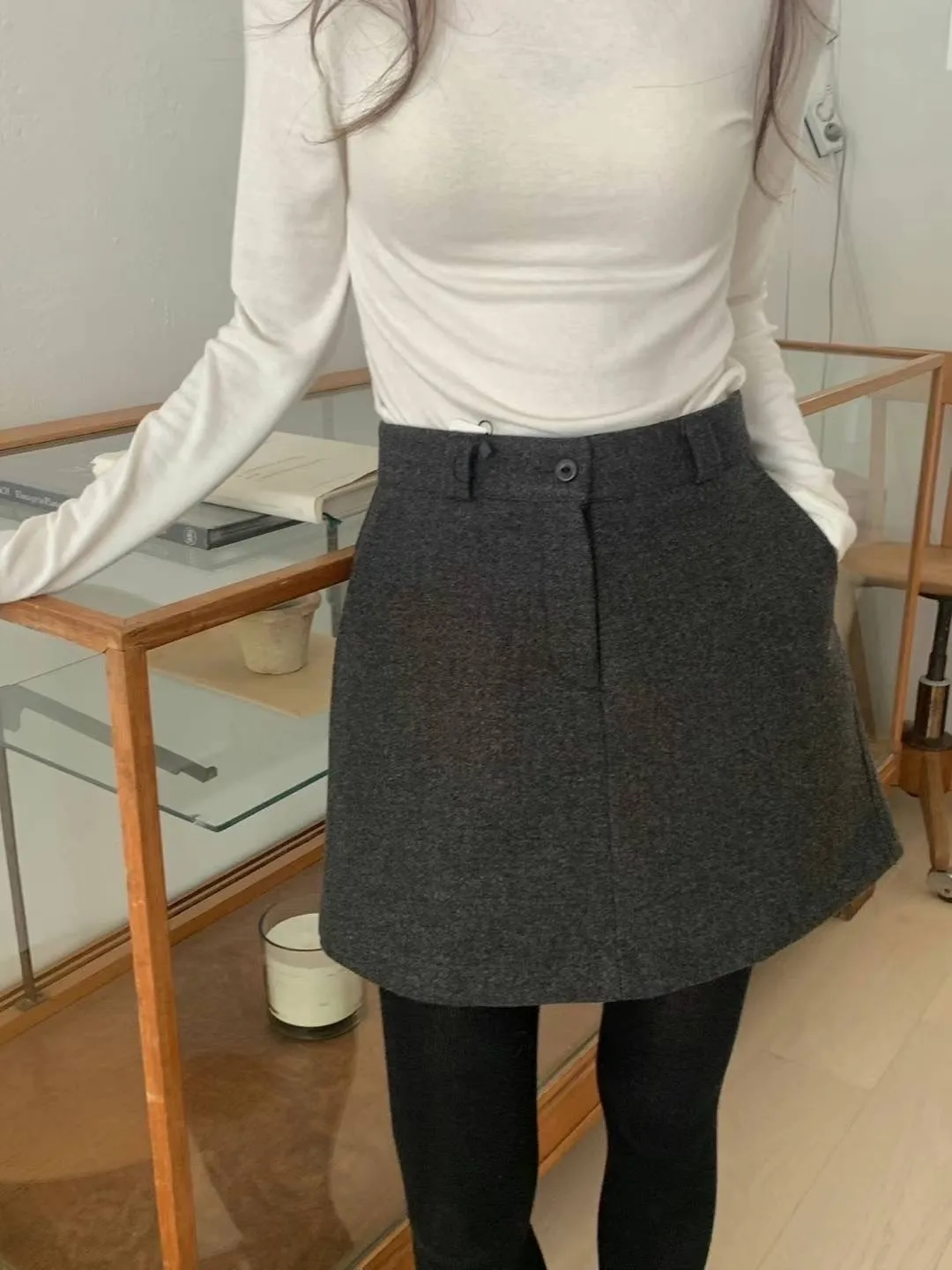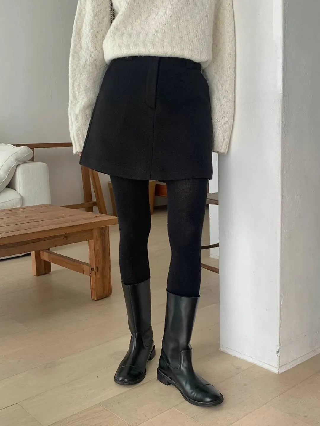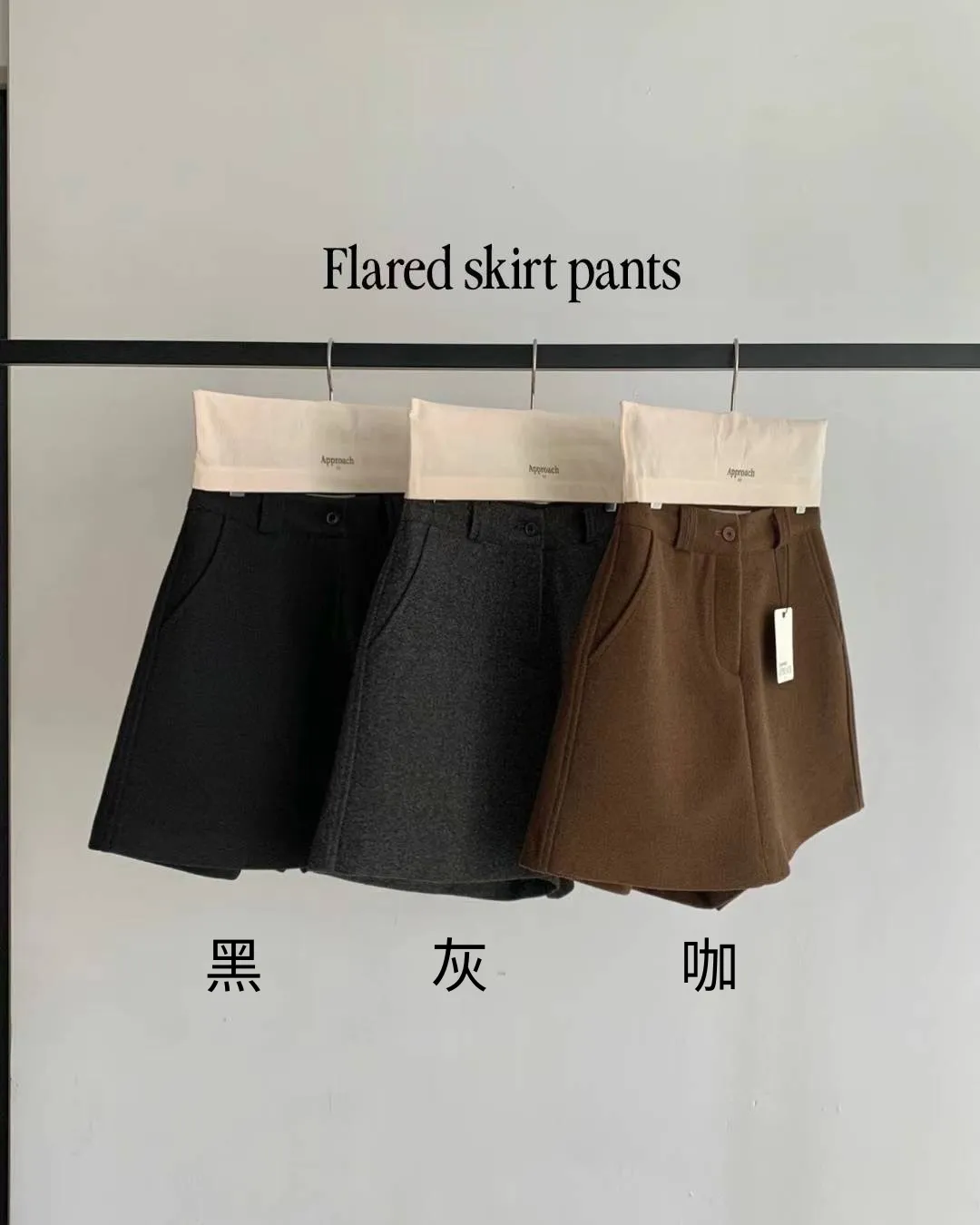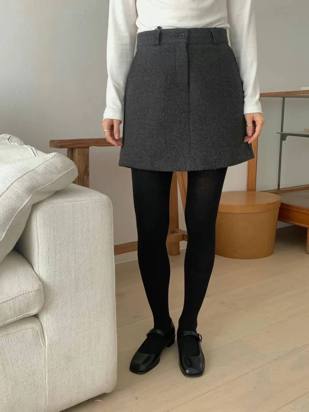 羊毛約40%+聚酯 釦鍊穿脫 有口袋 自然Aline 前看裙後看褲 內襯滑順