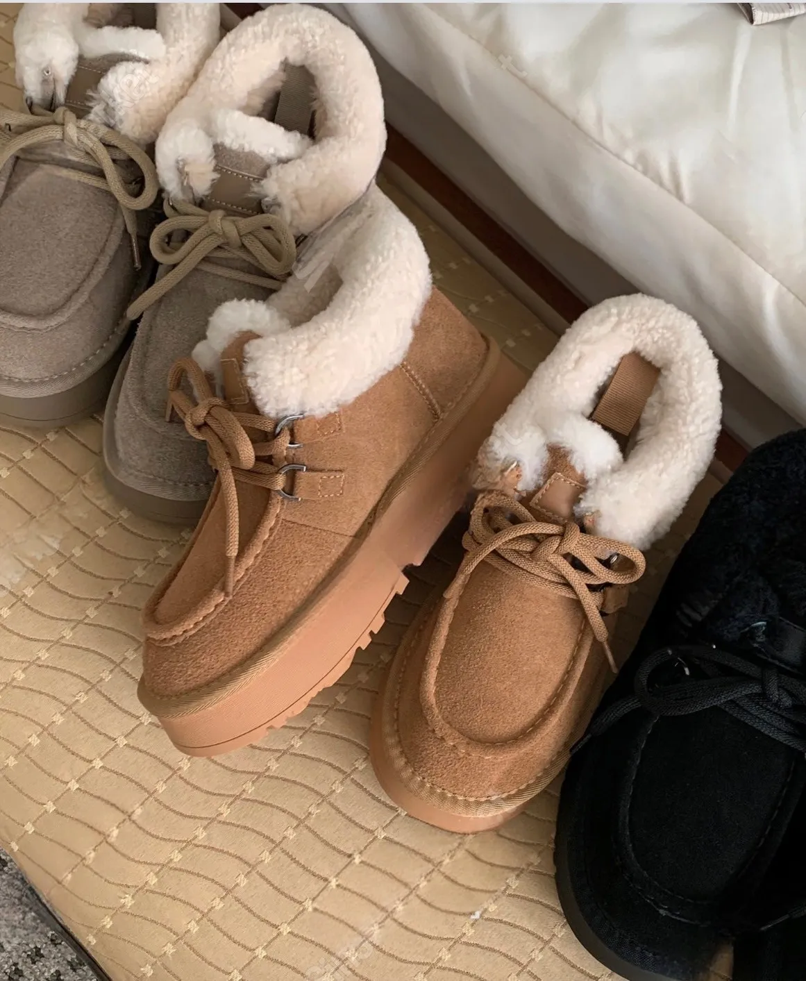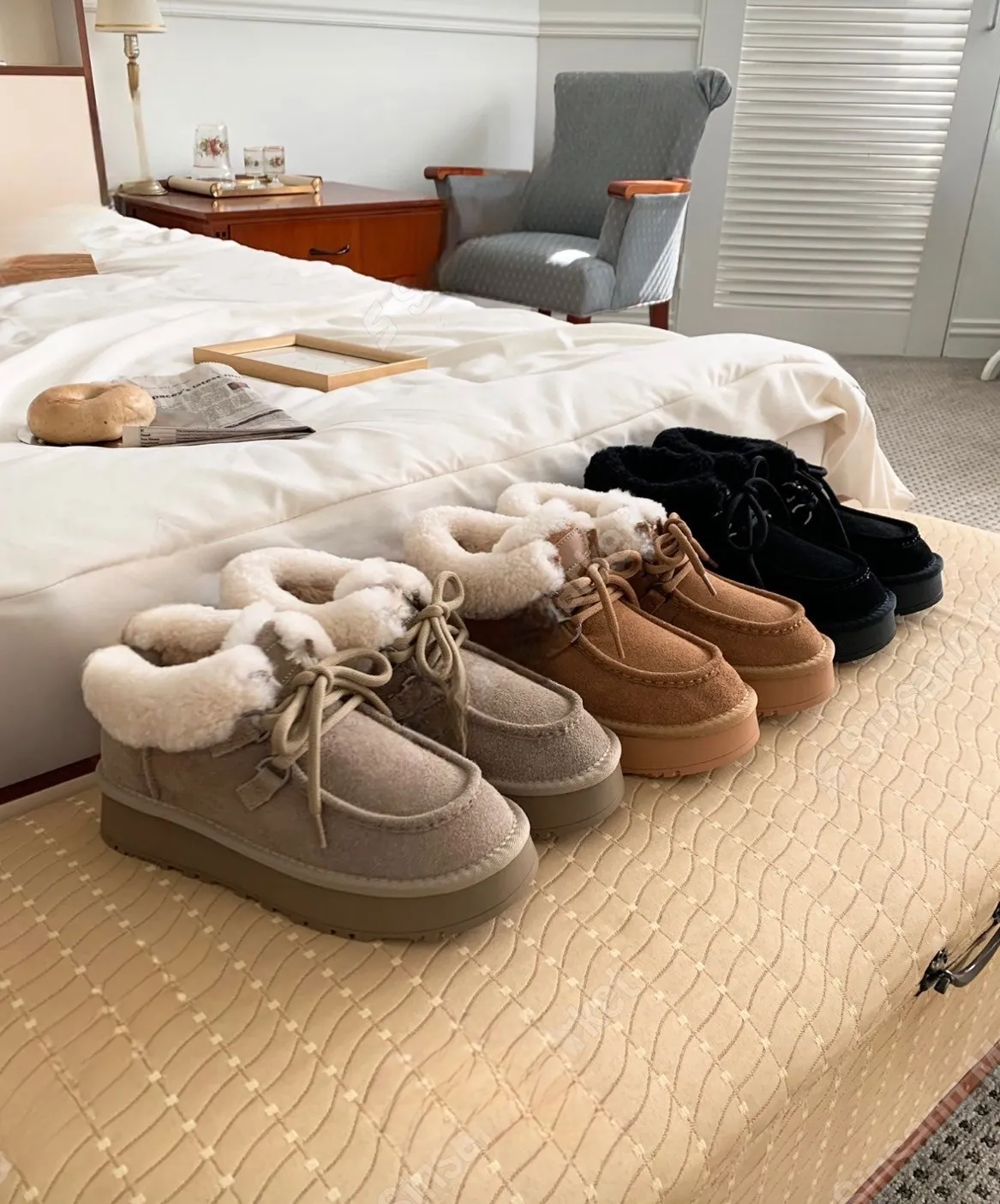 材質:天然皮革 100% MIC小編心得❣️有別於一般款雪靴是綁帶式 可愛中帶點中性風 保暖度也是非常OK 可甜美 也可帥氣哦! 因為內裡毛絨較為蓬鬆 建議拿大半號較為 適合哦! 以下焦糖色穿搭👇🏻 以下顏色,焦糖色 以下顏色,灰>焦糖>黑 以下顏色,灰>焦糖>黑 以下顏色,灰>焦糖>黑