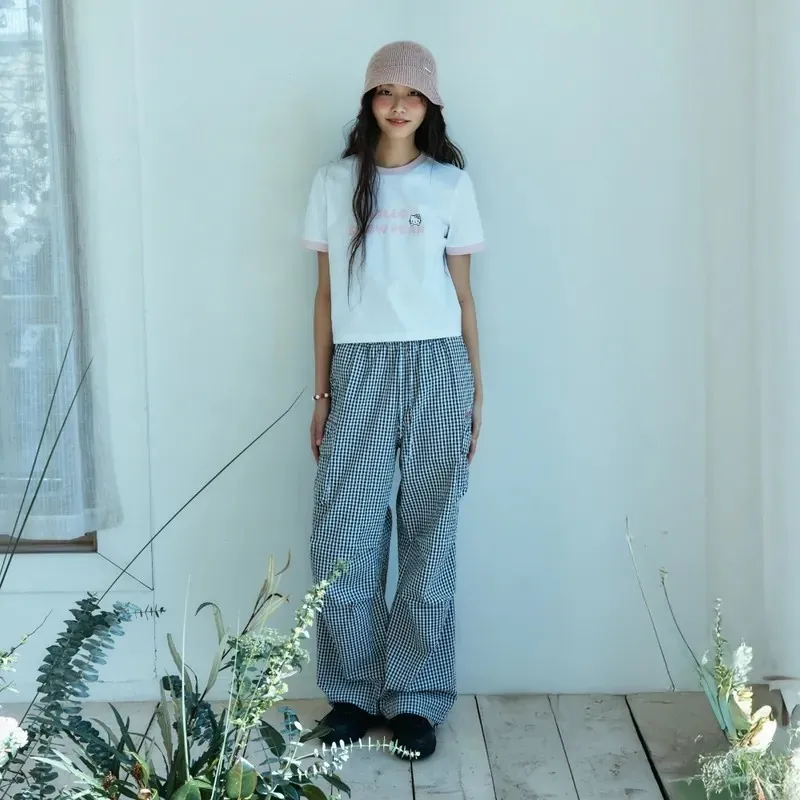 DF022輕盈泡泡紗格紋長褲 粉 黑 70 75 官網價$2850 線上價$2820