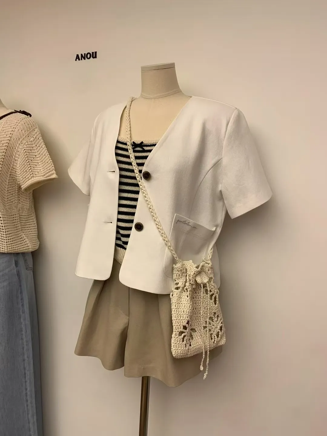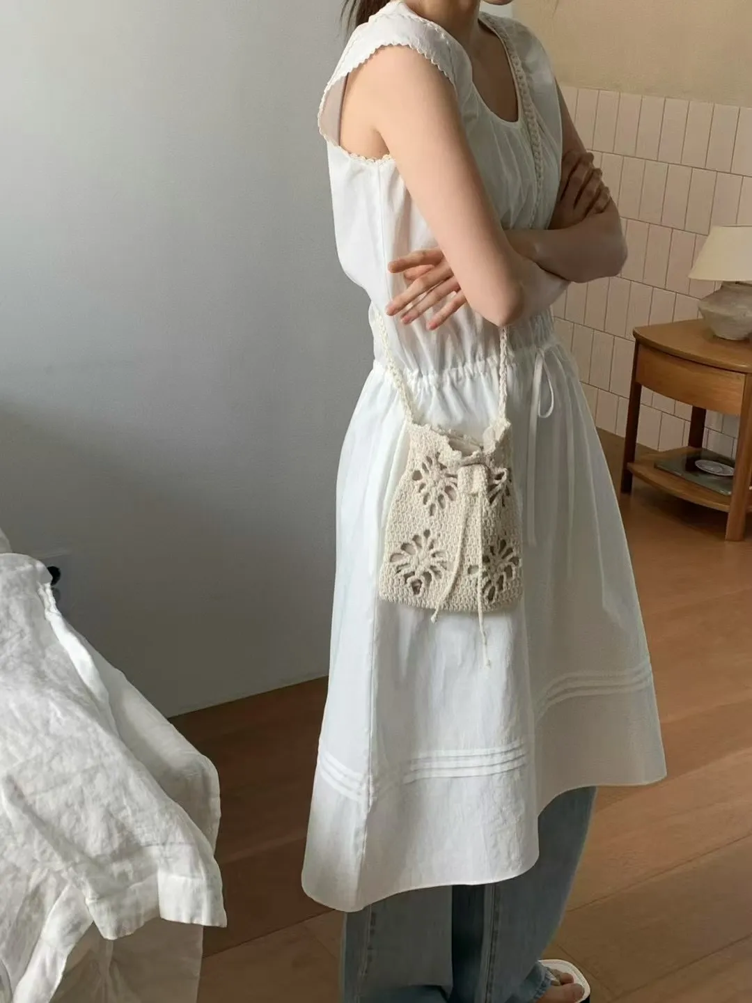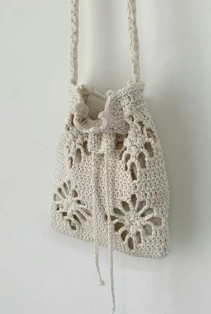 棉 勾織簍空 有小皮革標 有內裡 肩帶綁調 18*22公分