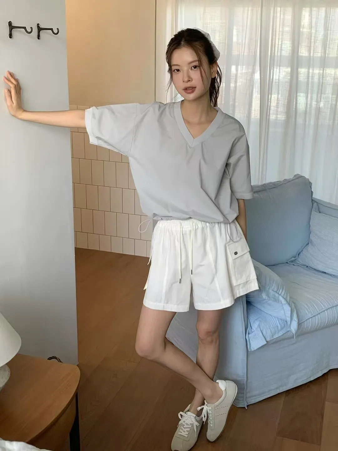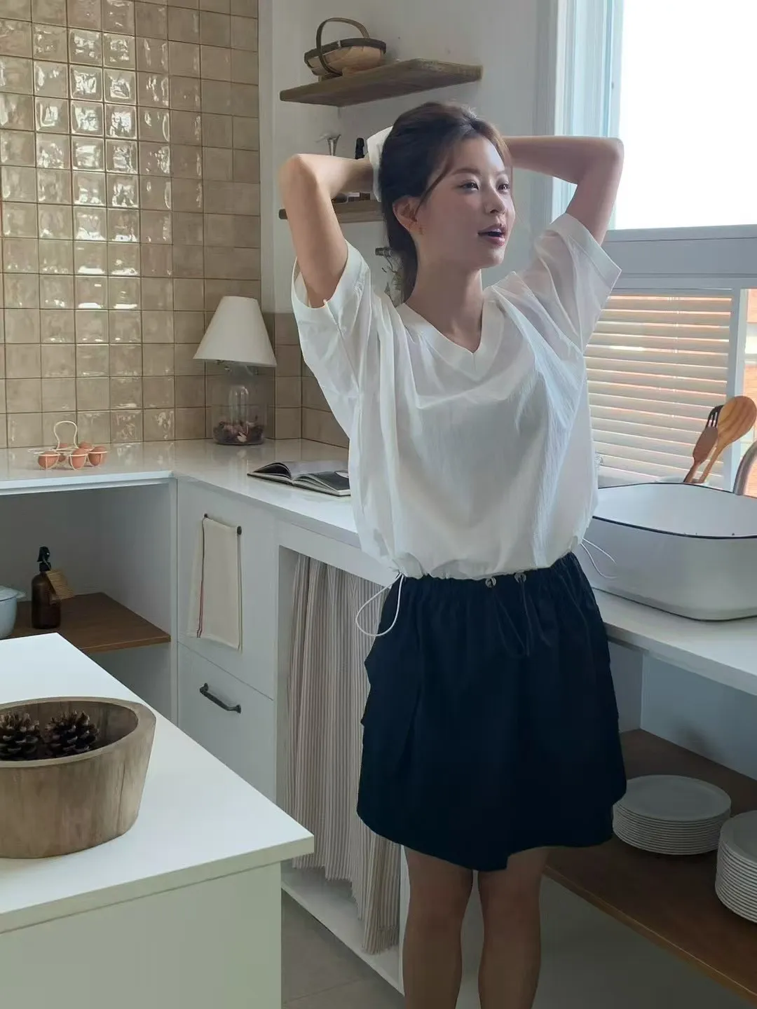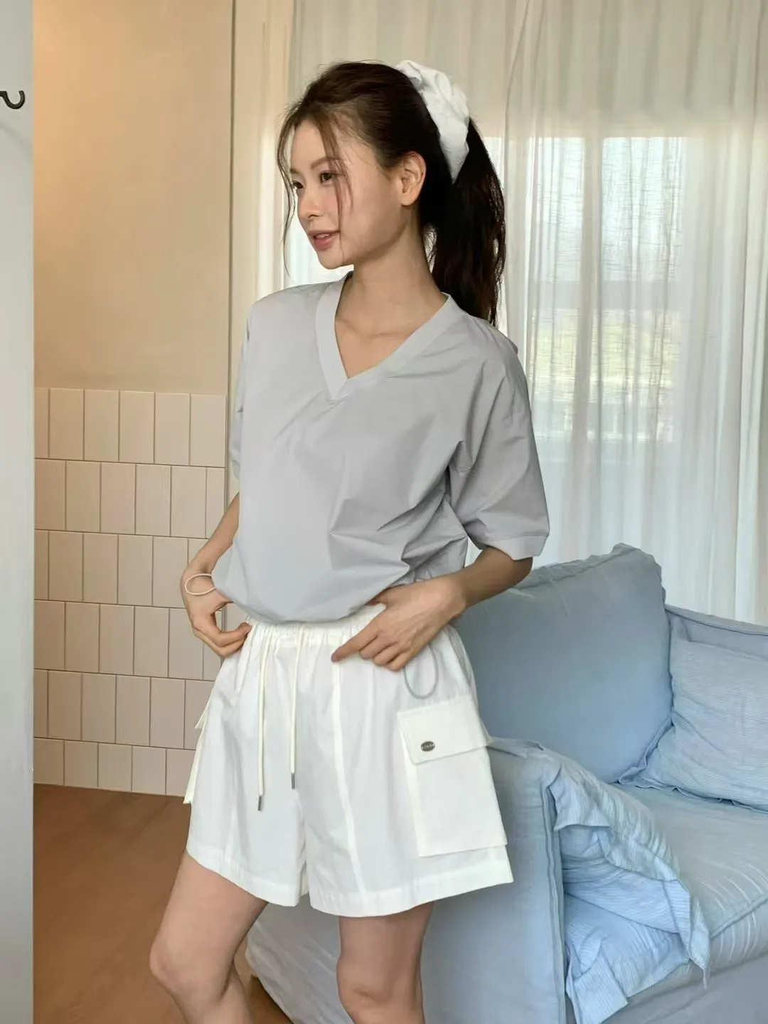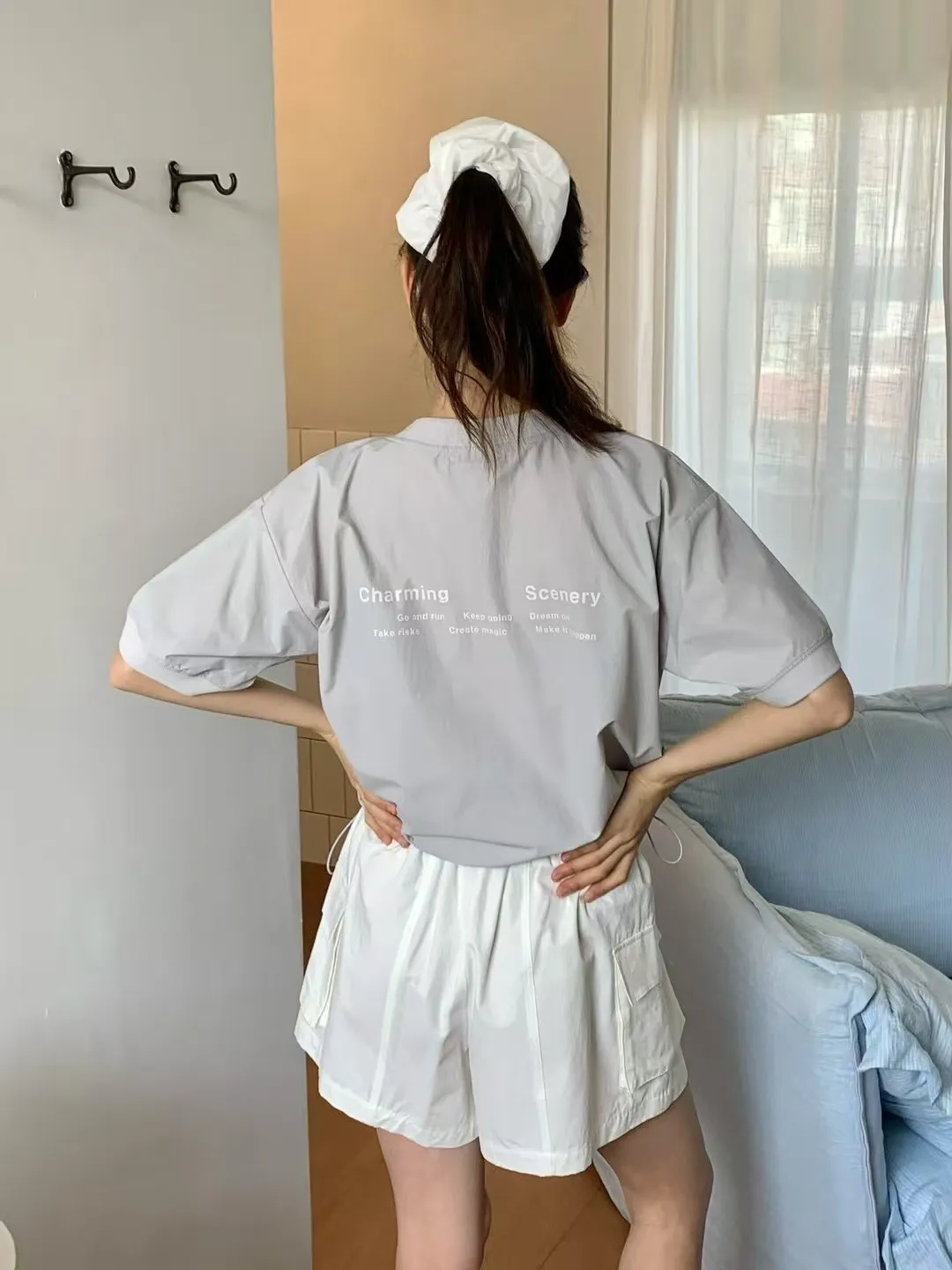 棉+尼龍+彈力 夏天機能面料 背後有英文 下擺抽繩