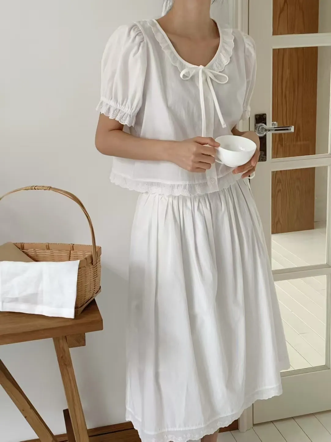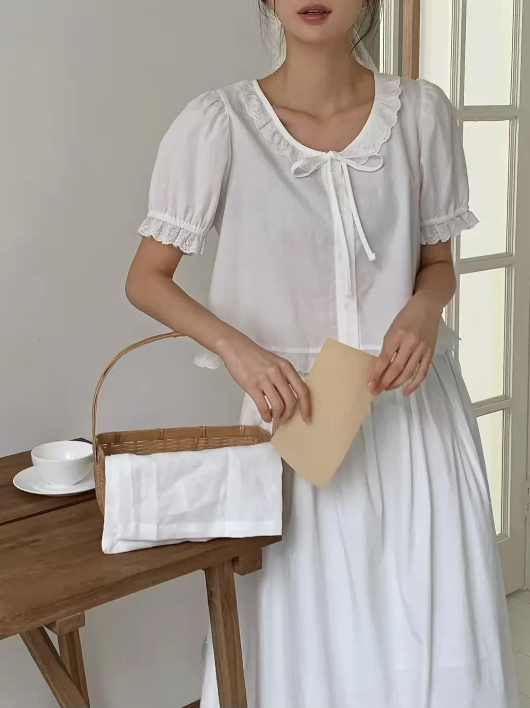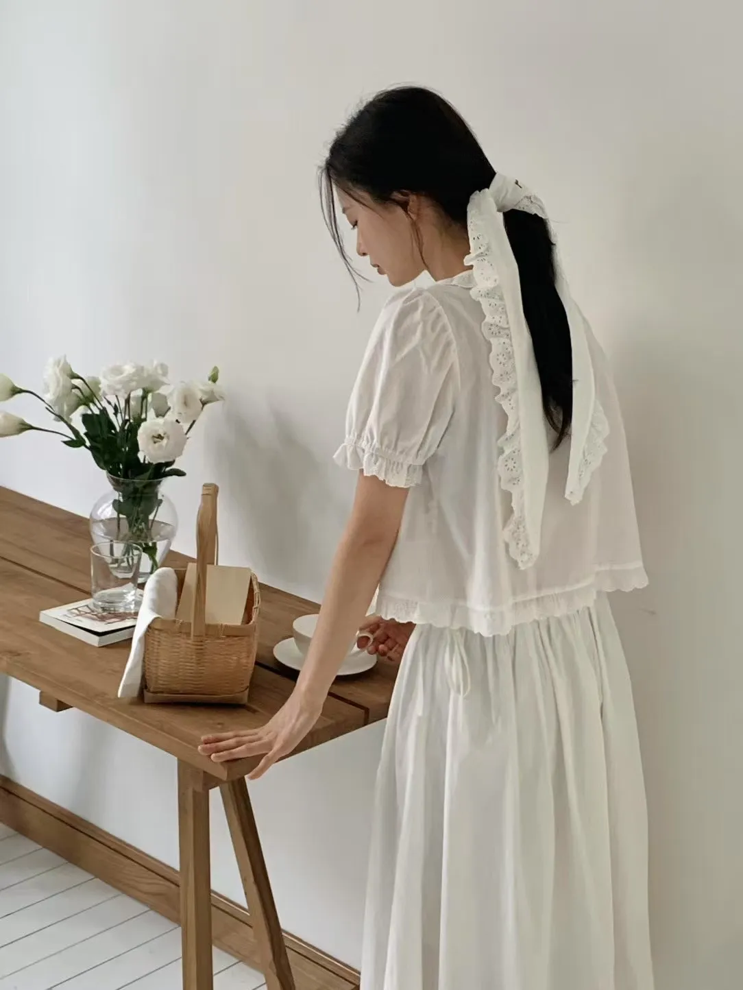 棉 柔軟面料 透氣舒適 蕾絲荷葉U領下擺 袖口友善 短版好比例