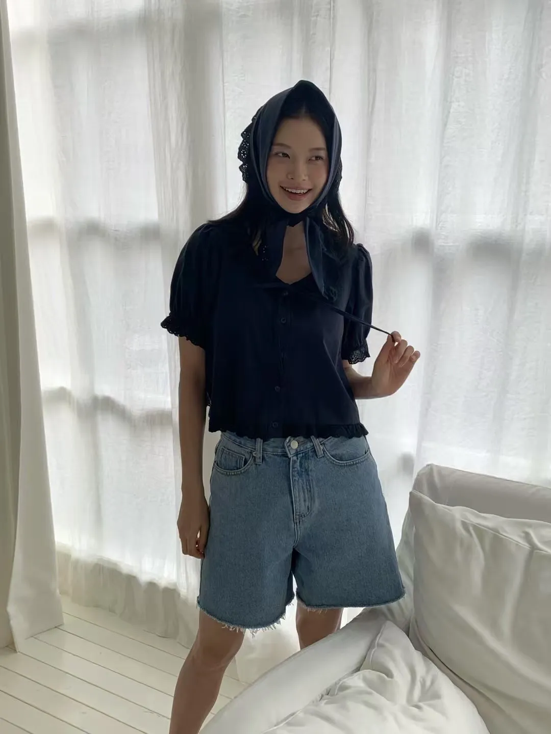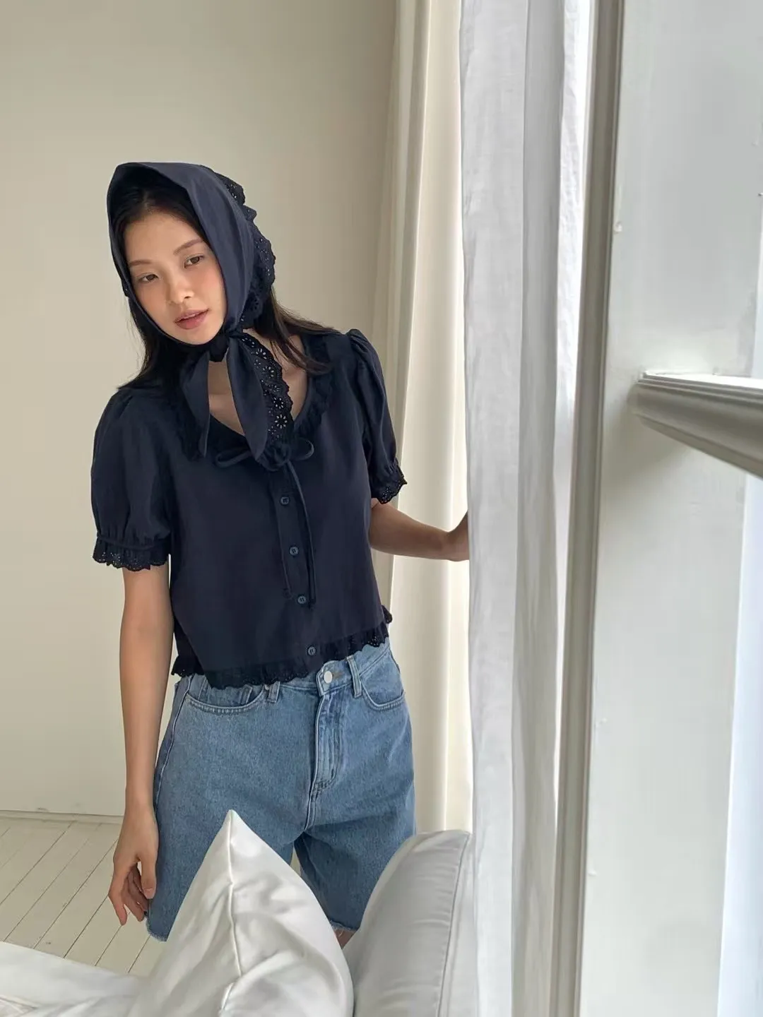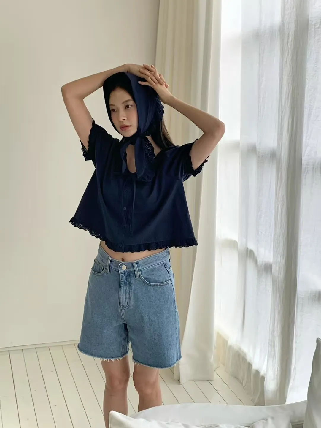 棉 柔軟面料 透氣舒適 蕾絲荷葉U領下擺 袖口友善 短版好比例