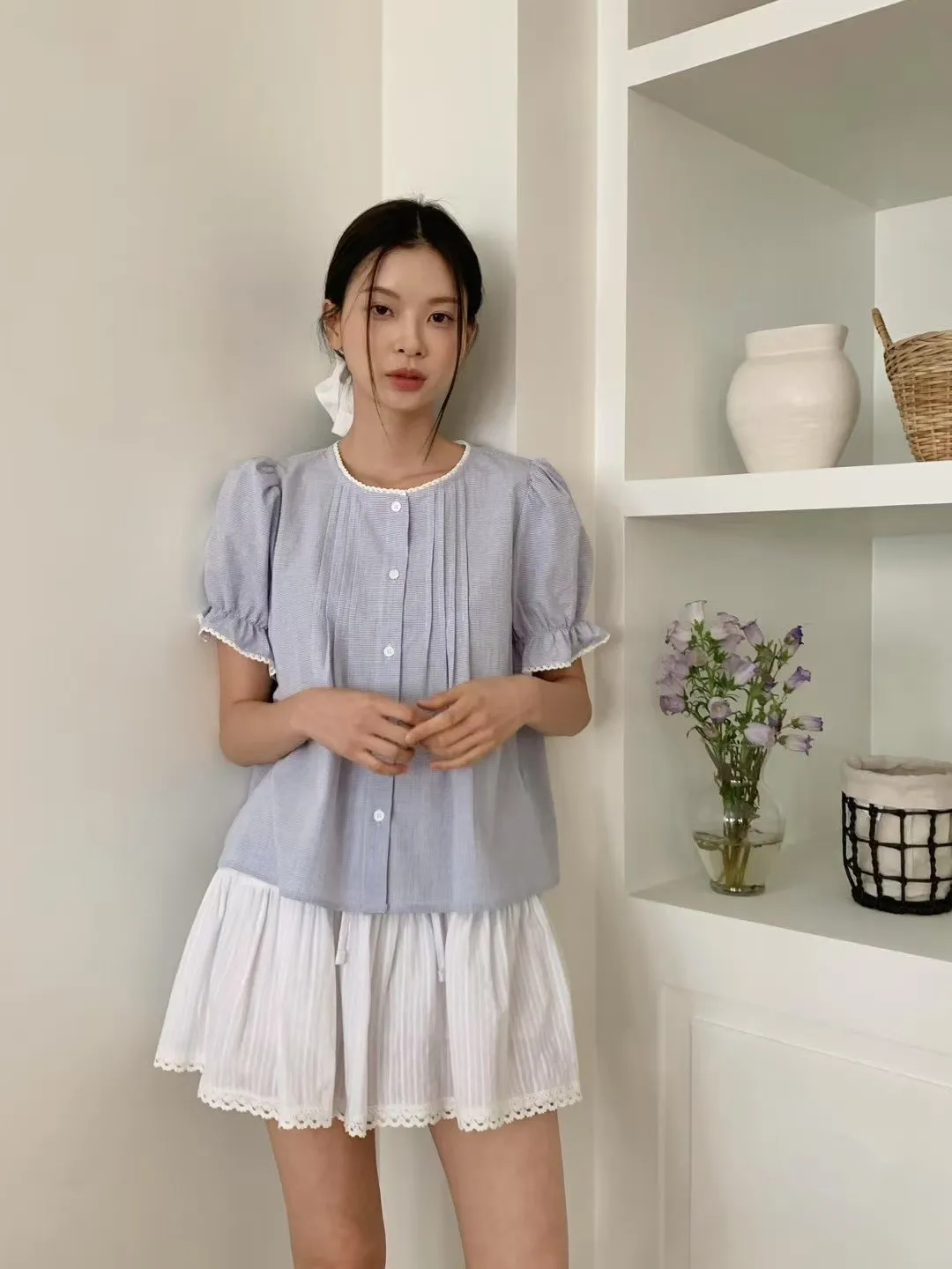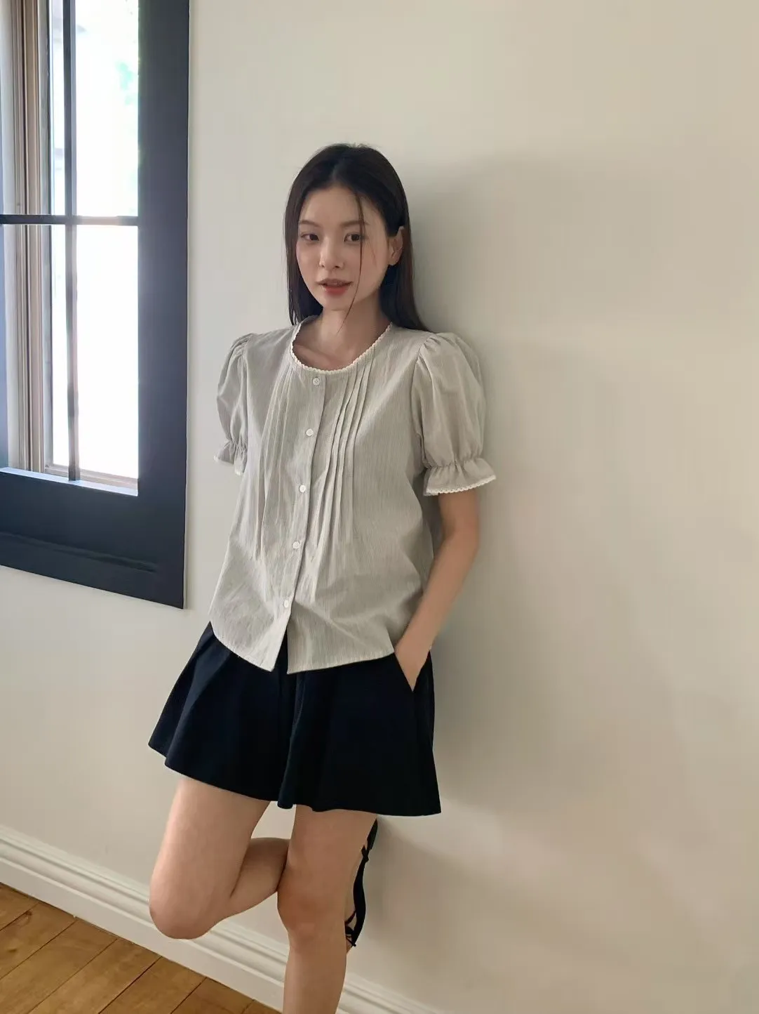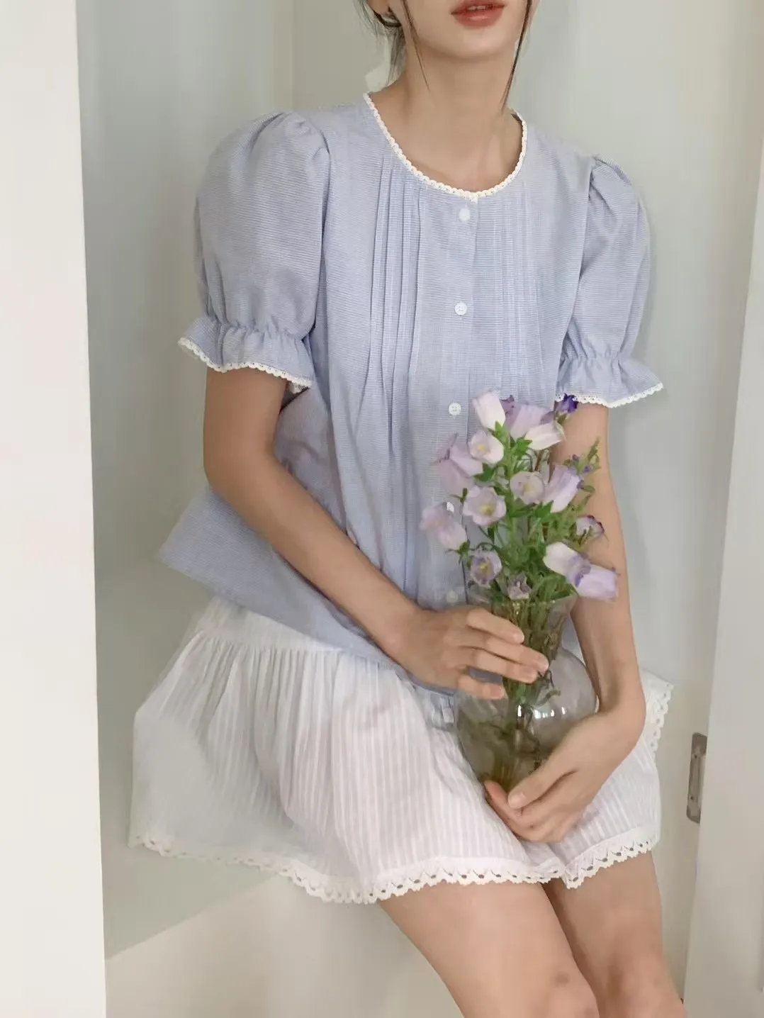 棉 蕾絲袖口領口滾邊 排釦穿脫 袖口友善 大胸友善