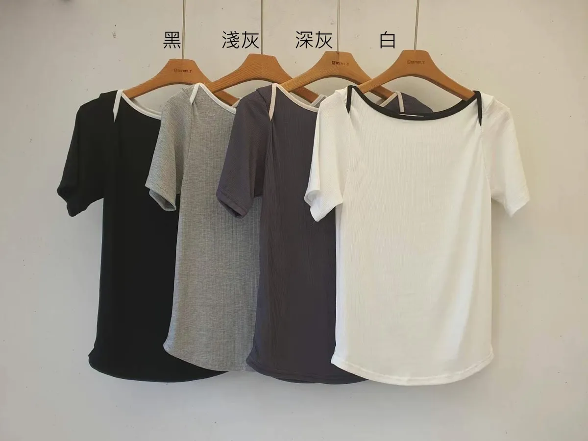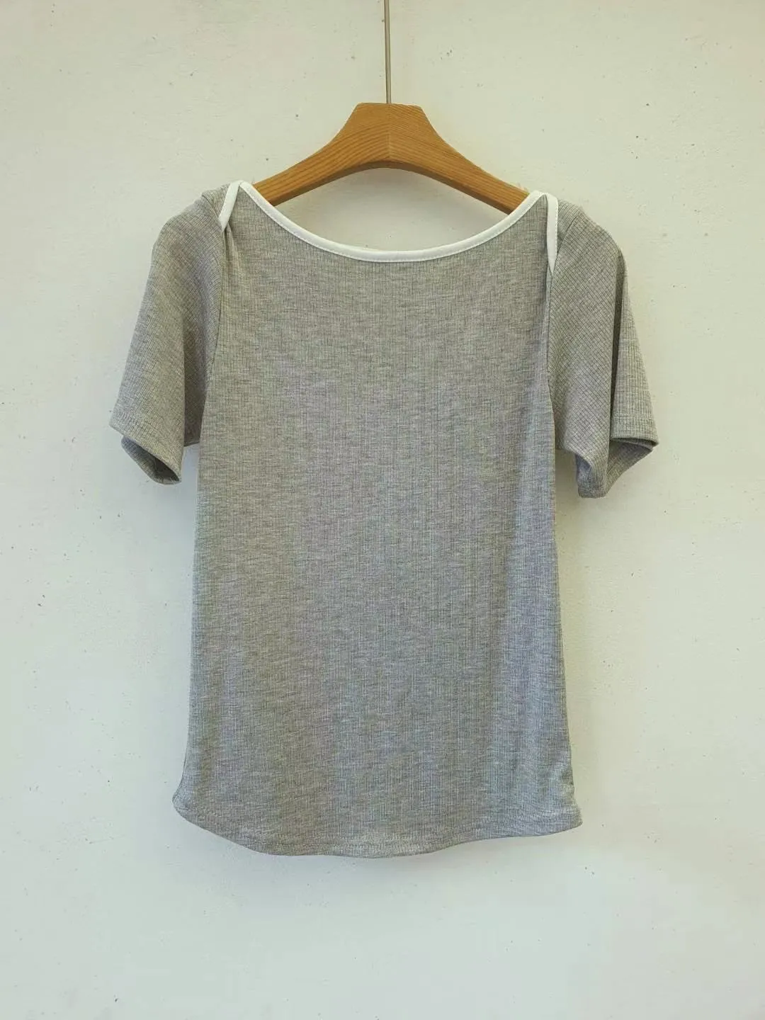 棉 類似莫代爾 Q彈坑條 滾邊跳色船領 親膚舒適 自然腰身感