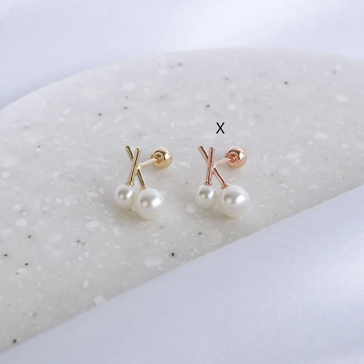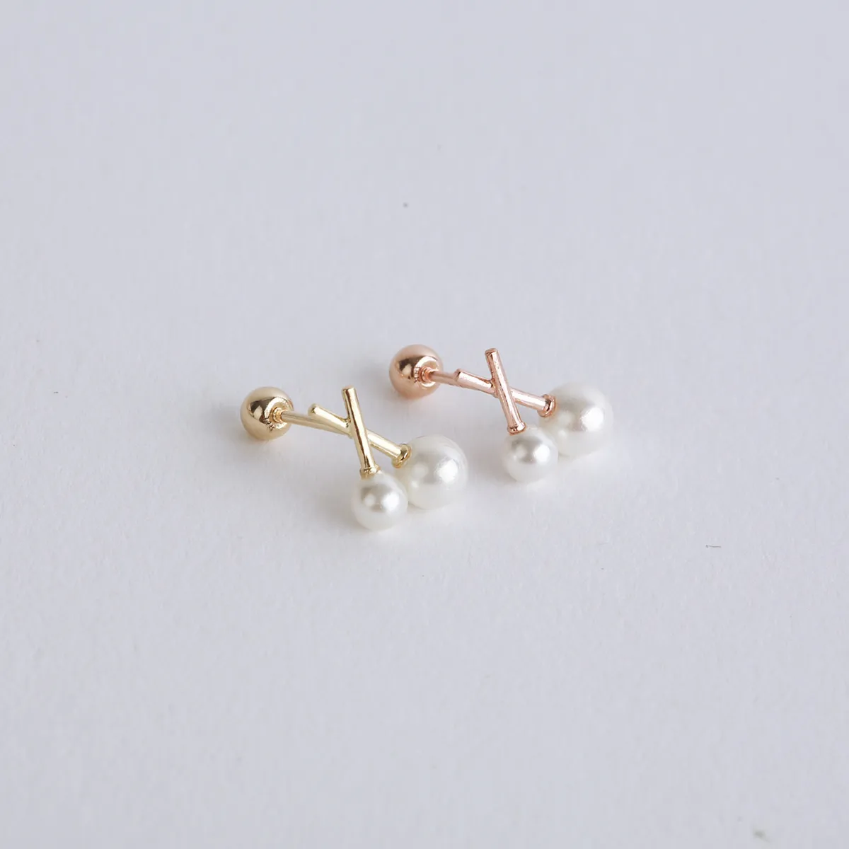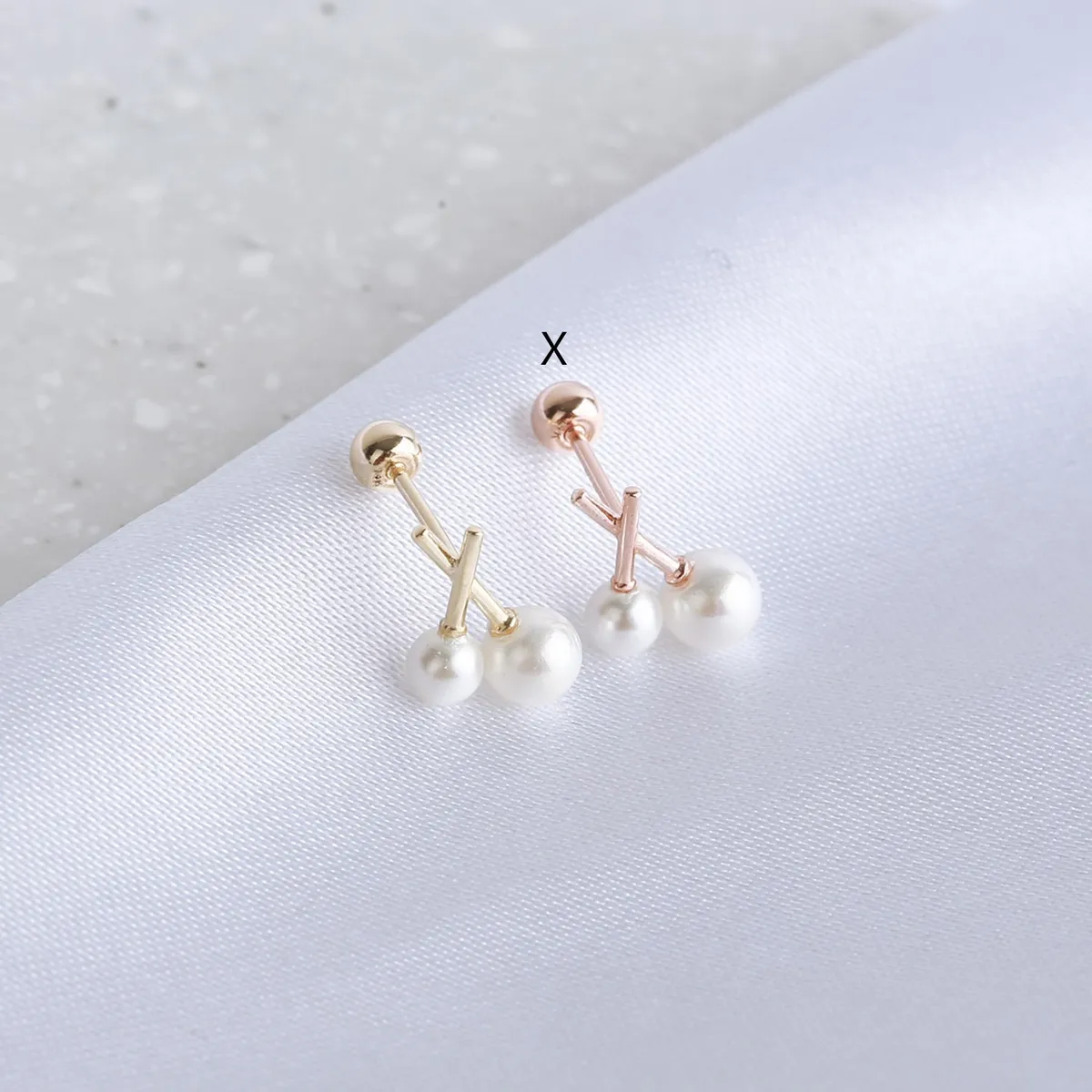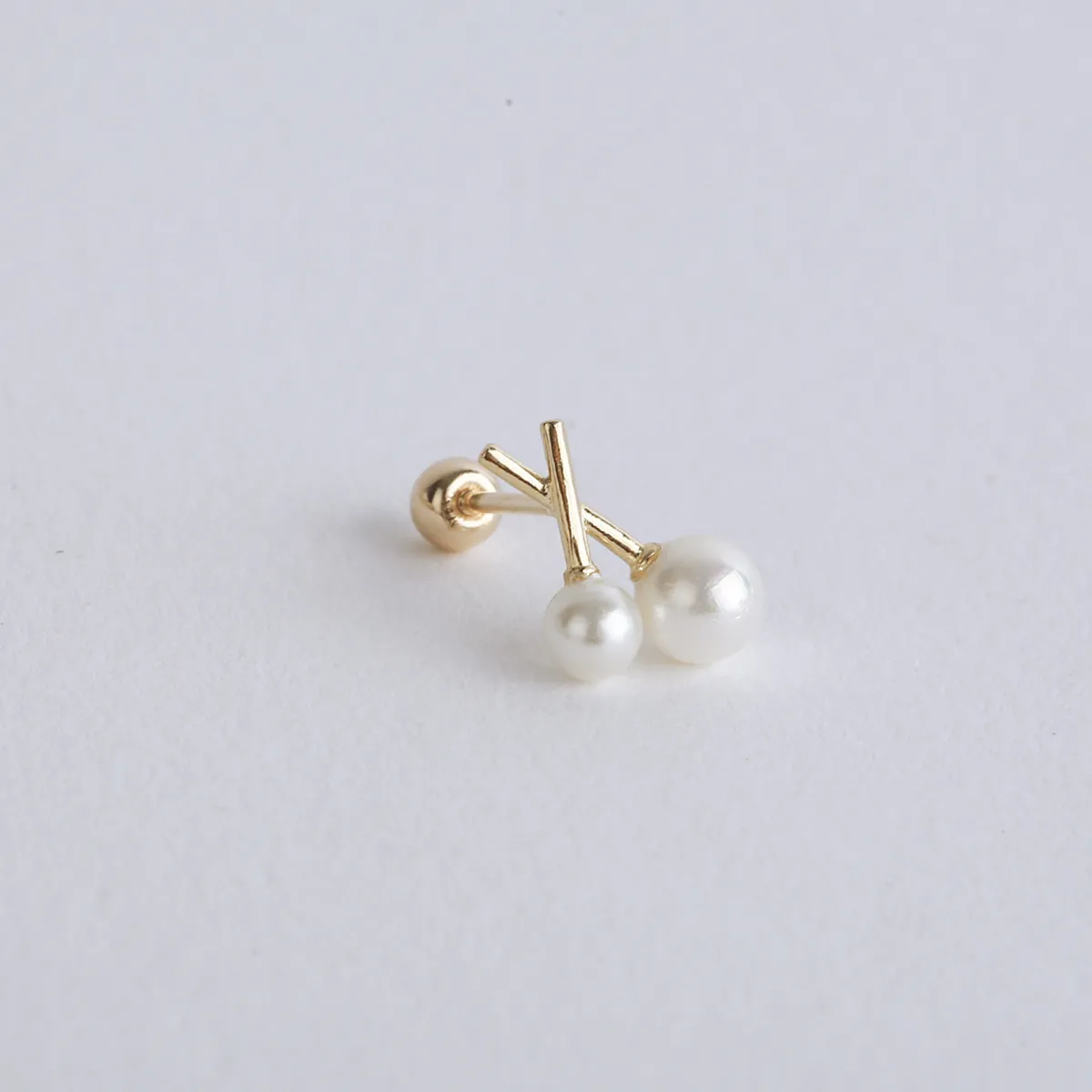 DF296珍珠金條小櫻桃14K金耳環(單支轉珠耳環)