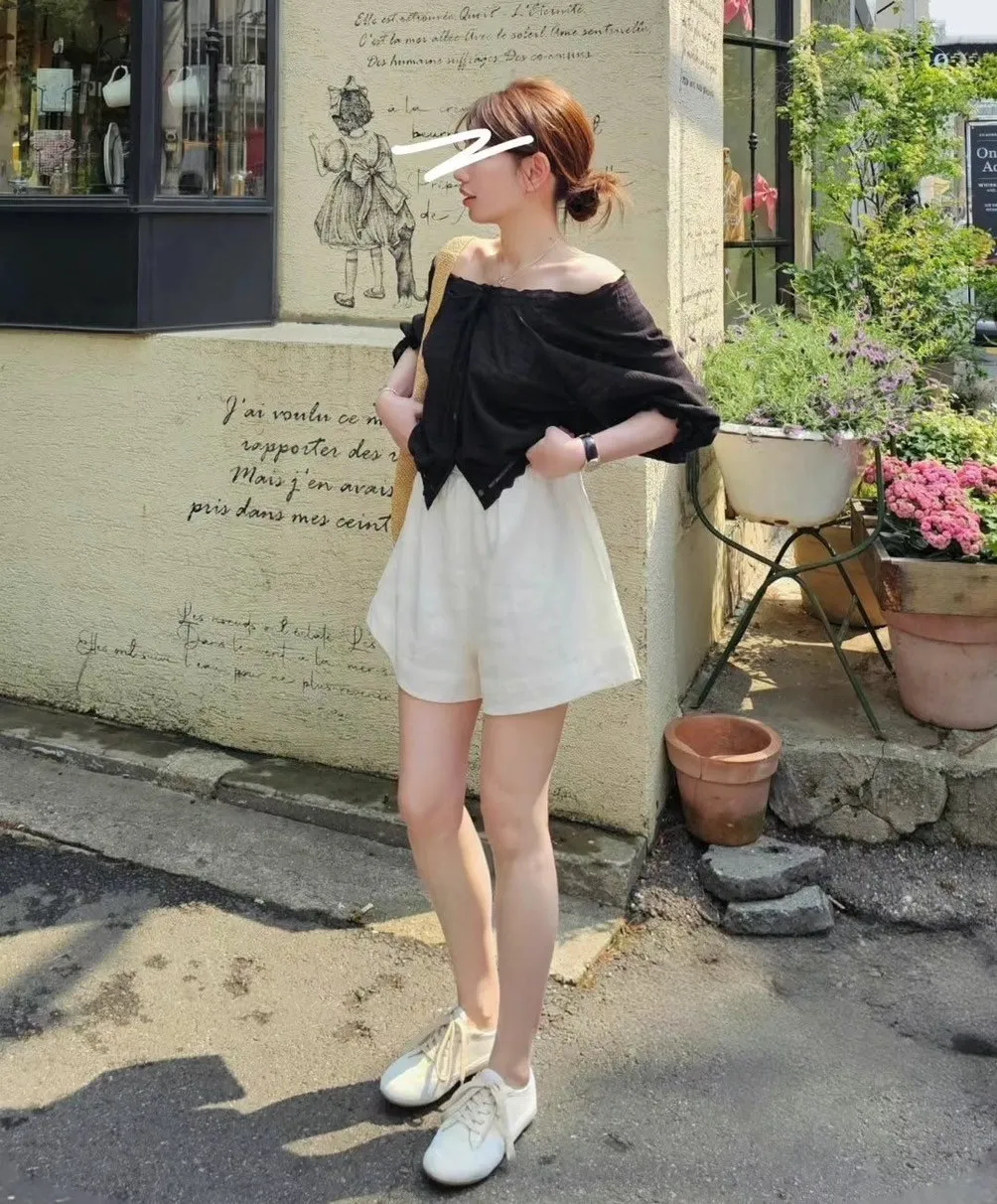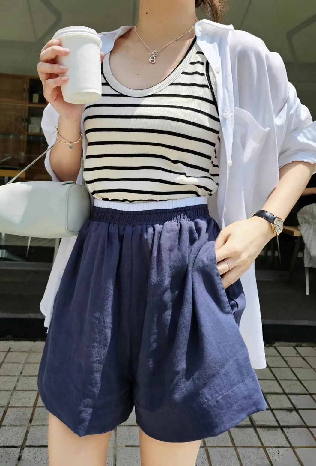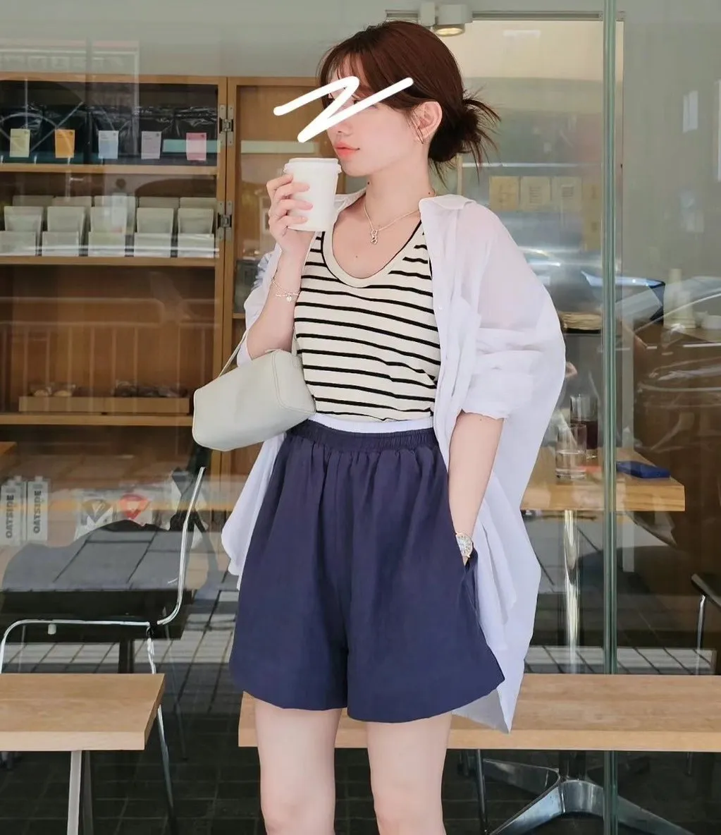 全腰鬆緊 雙色腰頭 舒適涼快 A字版型 有內裡 有口袋 百搭風格