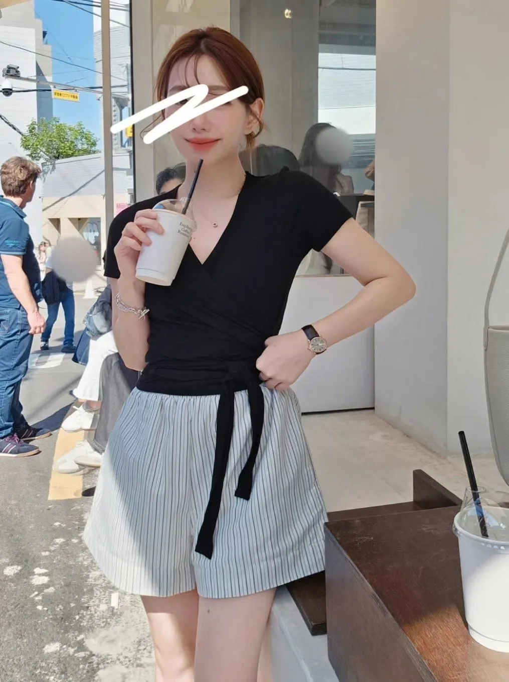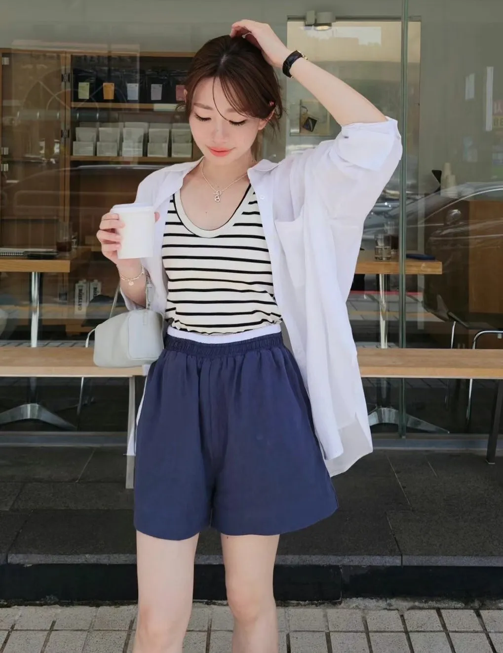 以下白條紋色穿搭👇🏻