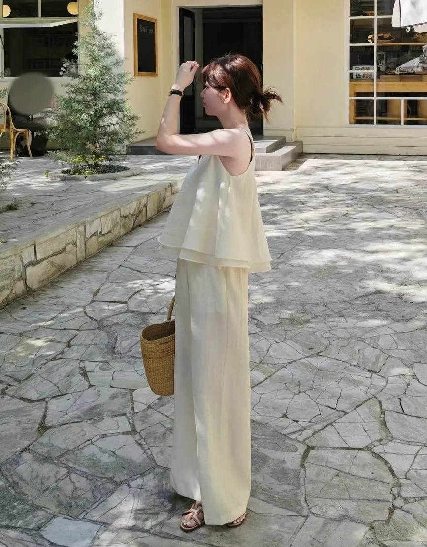 人造絲+亞麻+棉 雙層造型 輕盈薄款 肩帶可調