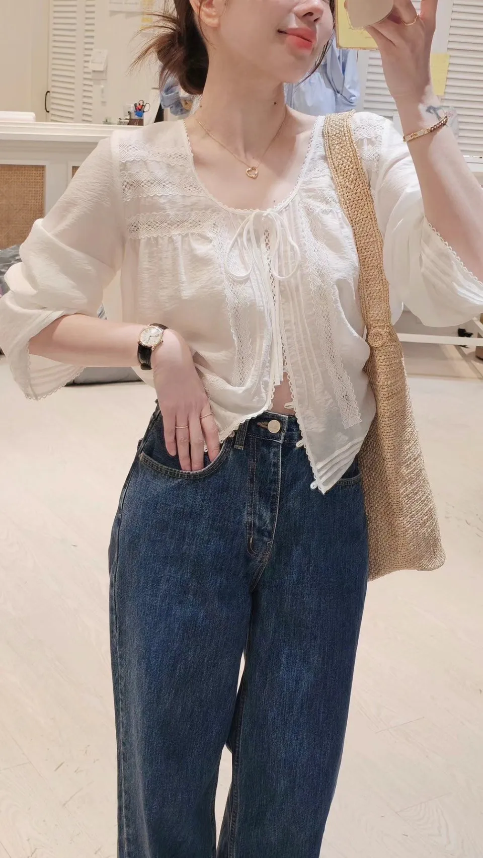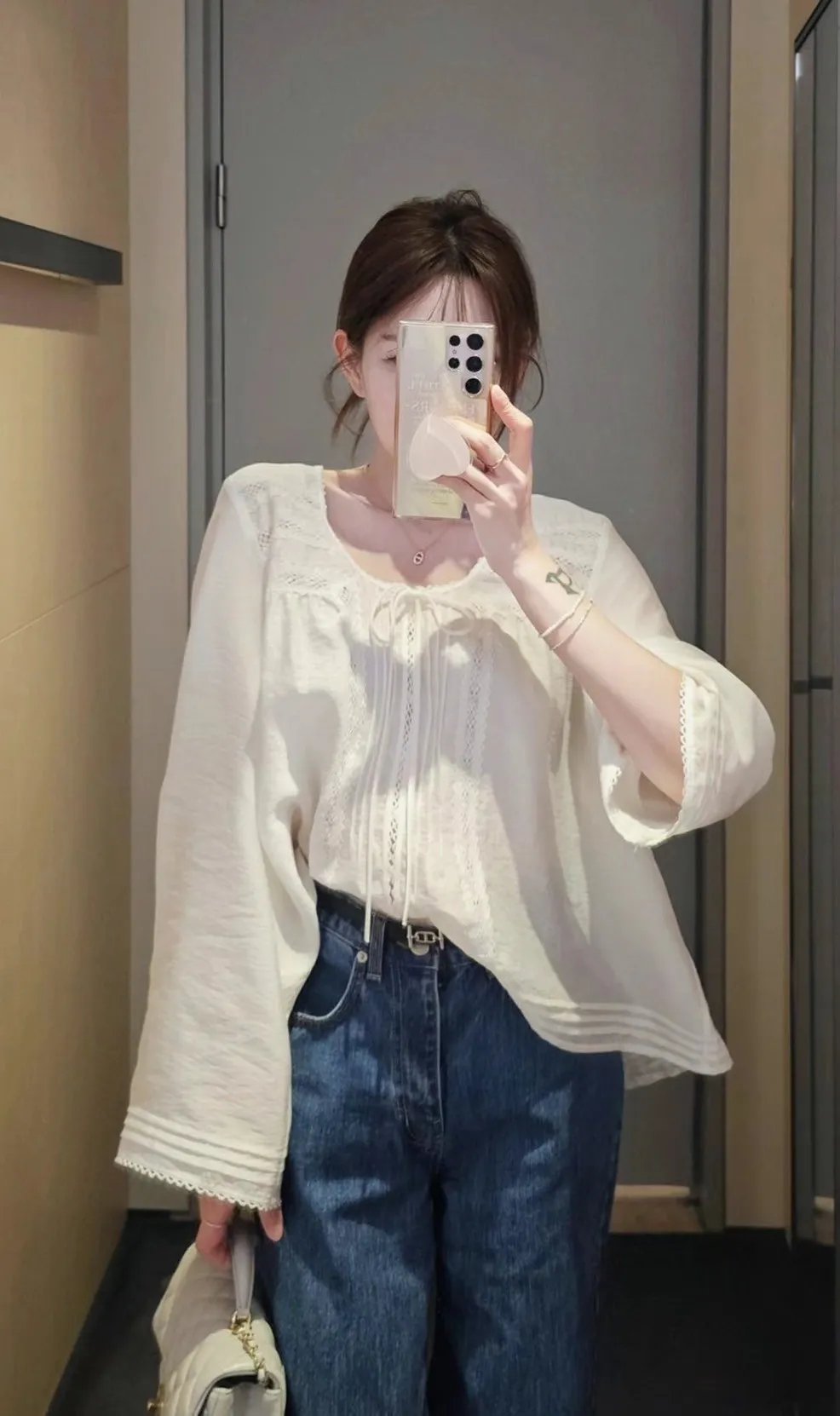棉 精緻面料 薄款透光 鎖骨U領 罩衫版型 寬鬆舒適 XL友善