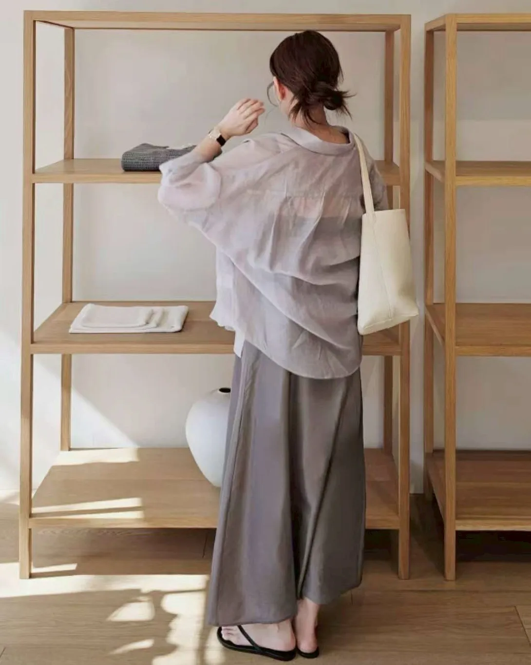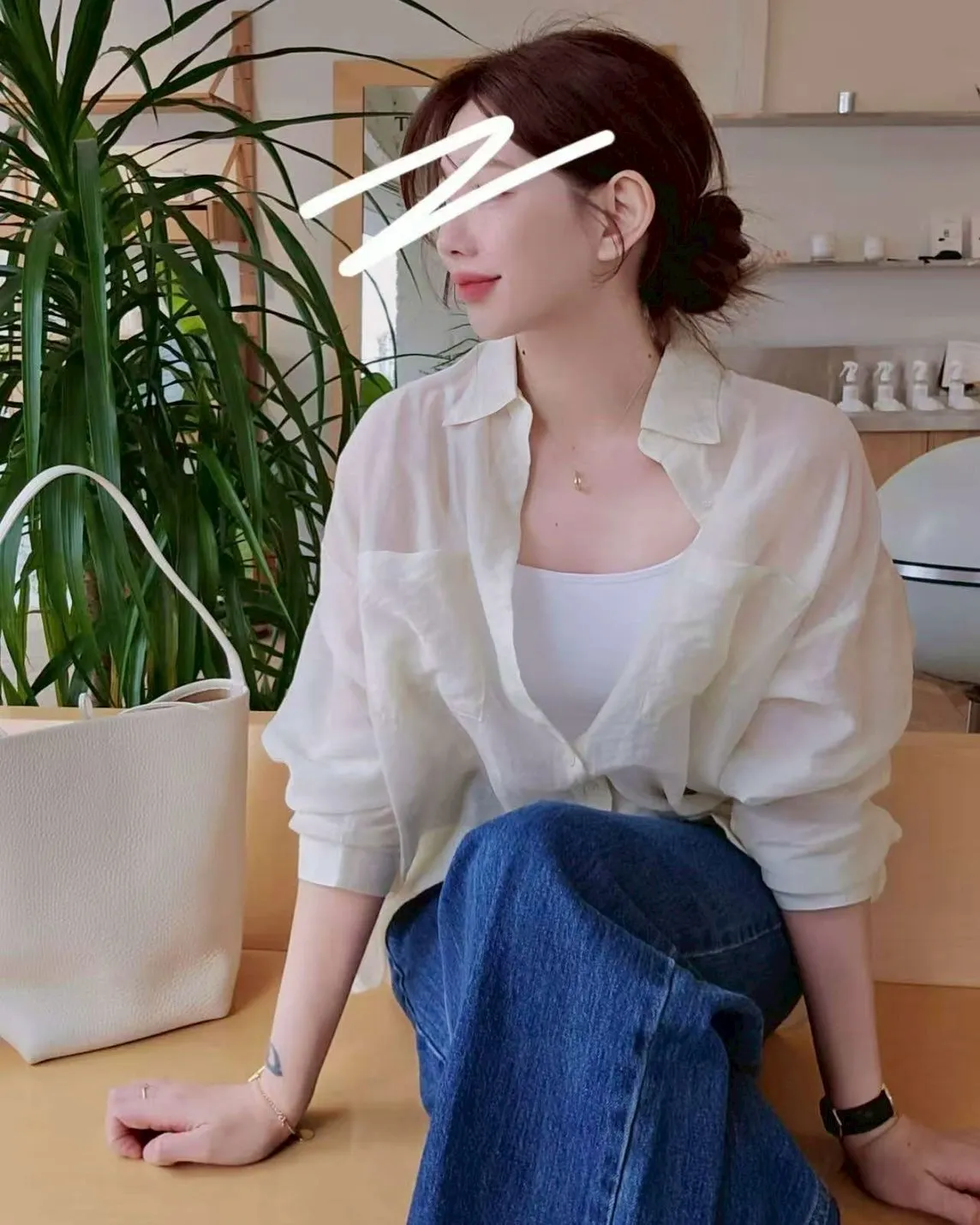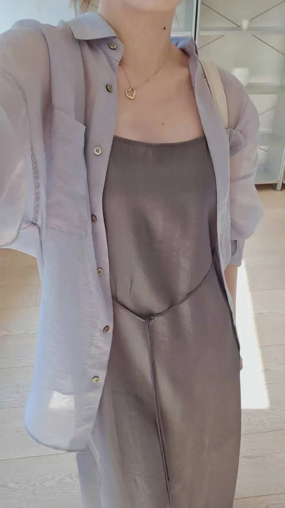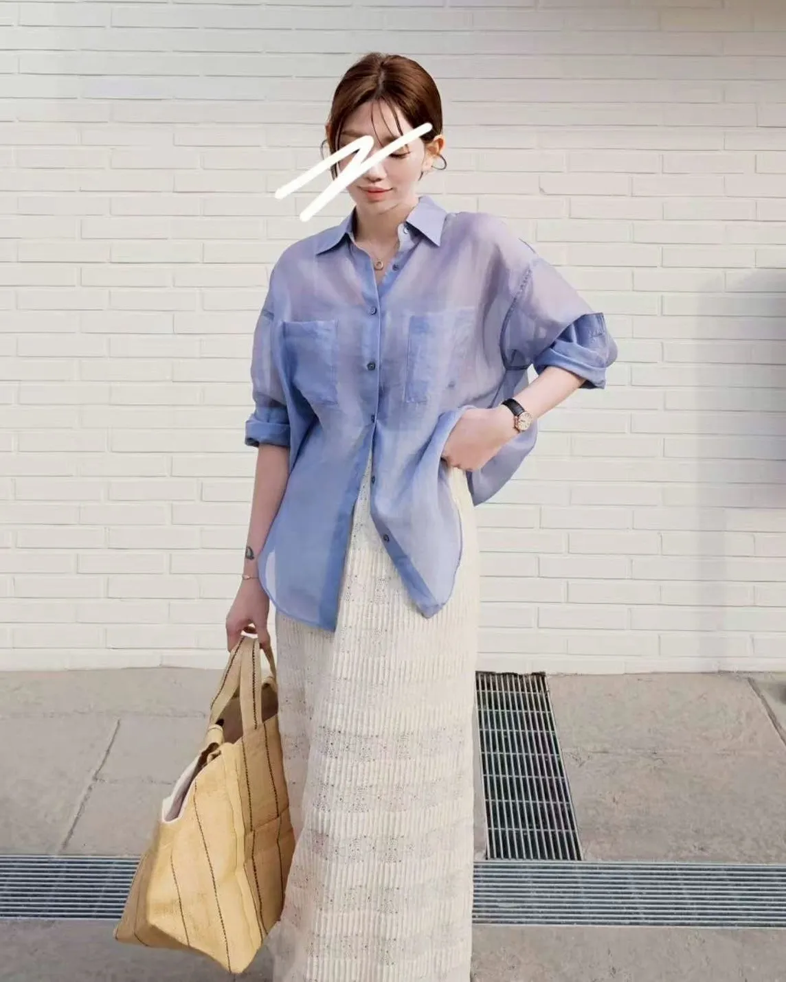 天絲80% 高級光澤感 貝殼釦 薄款透光