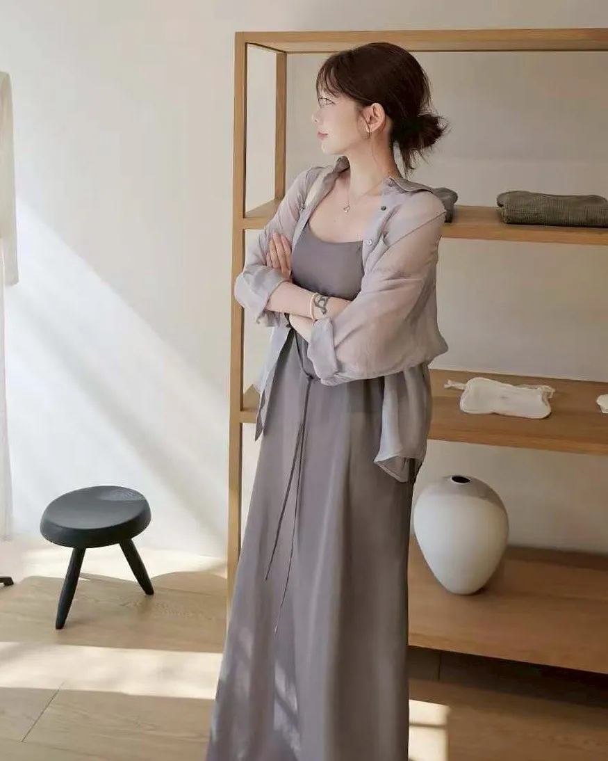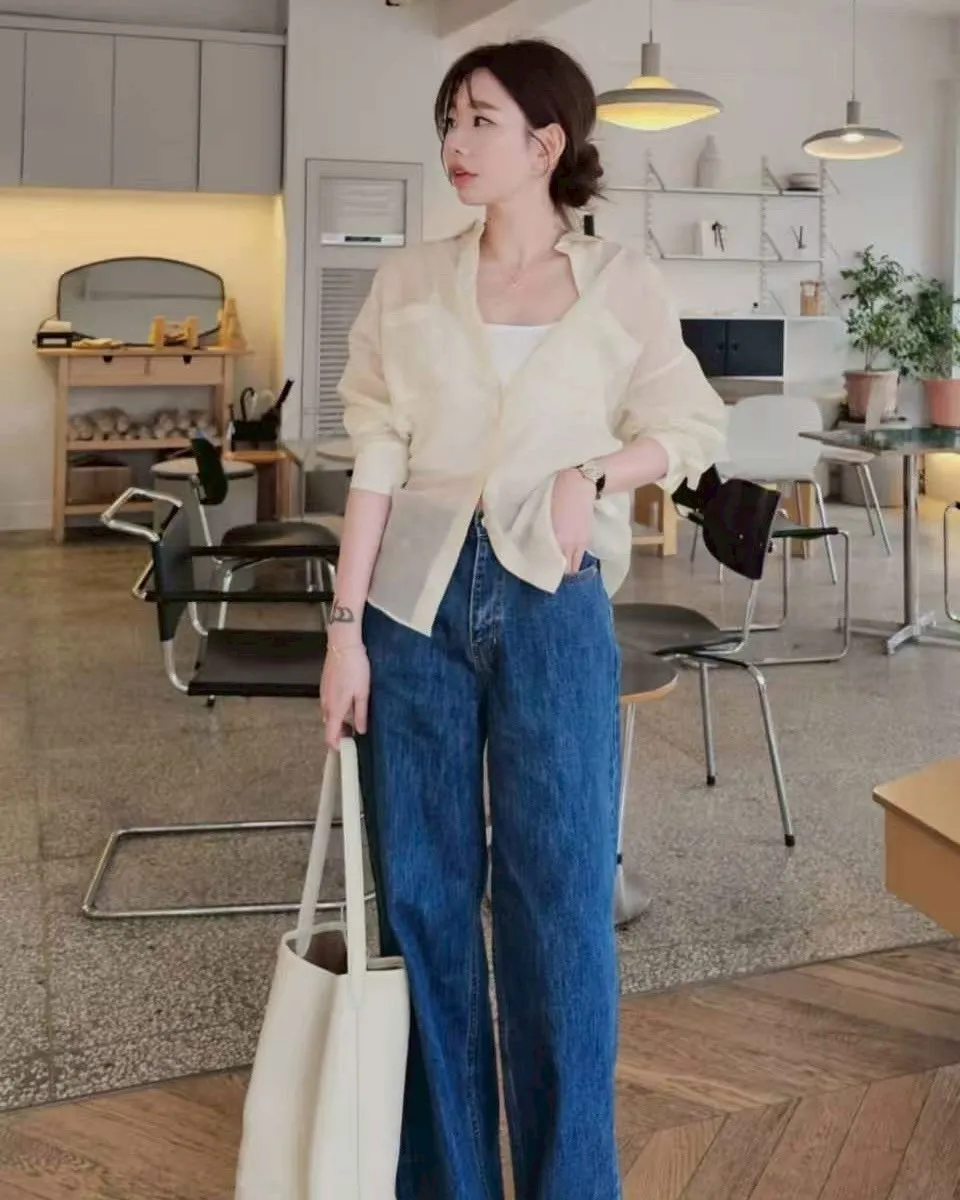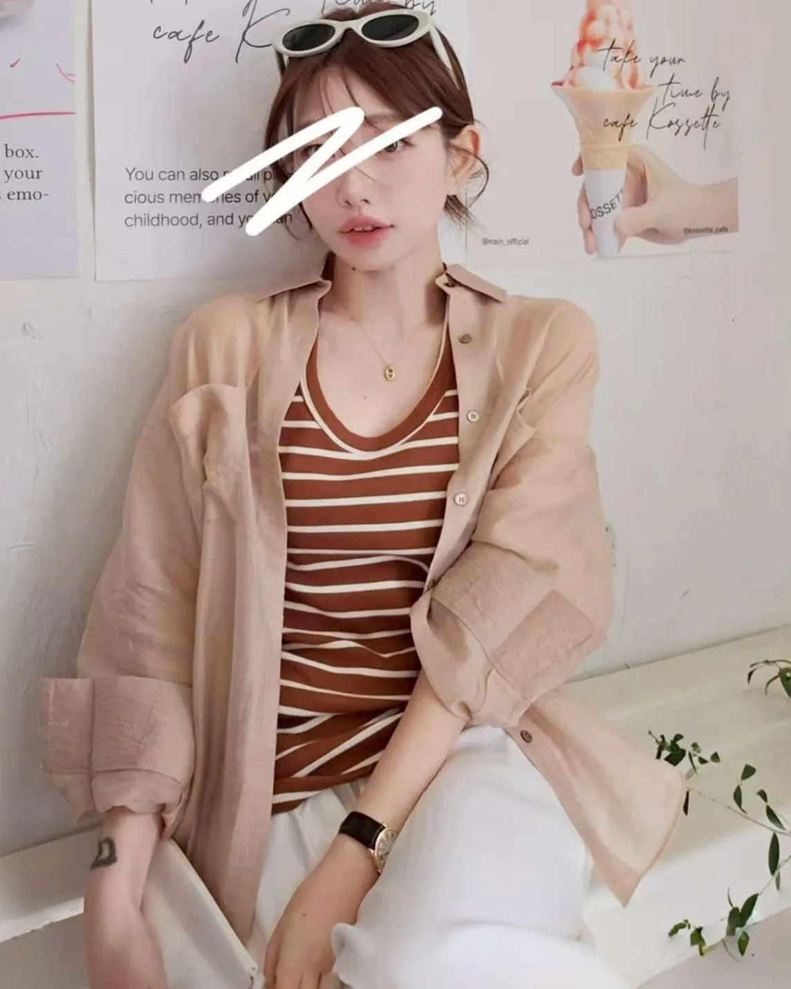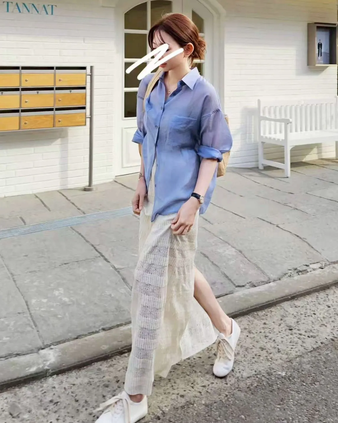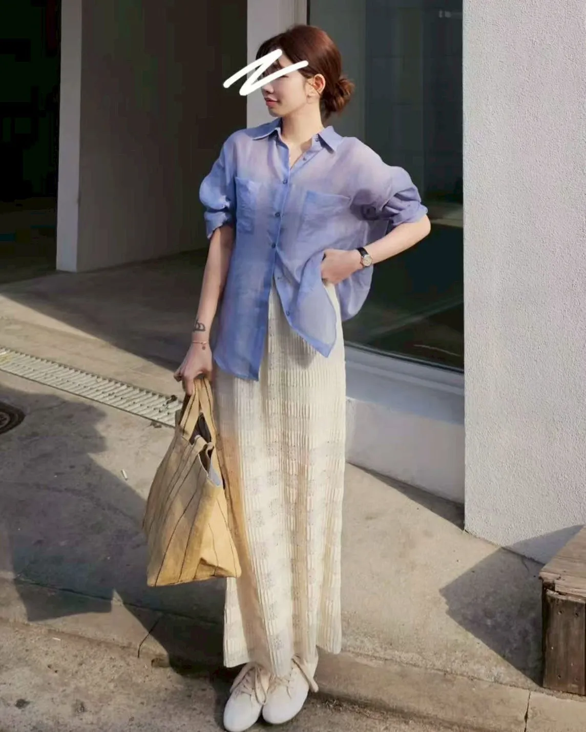 天絲80% 高級光澤感 貝殼釦 薄款透光