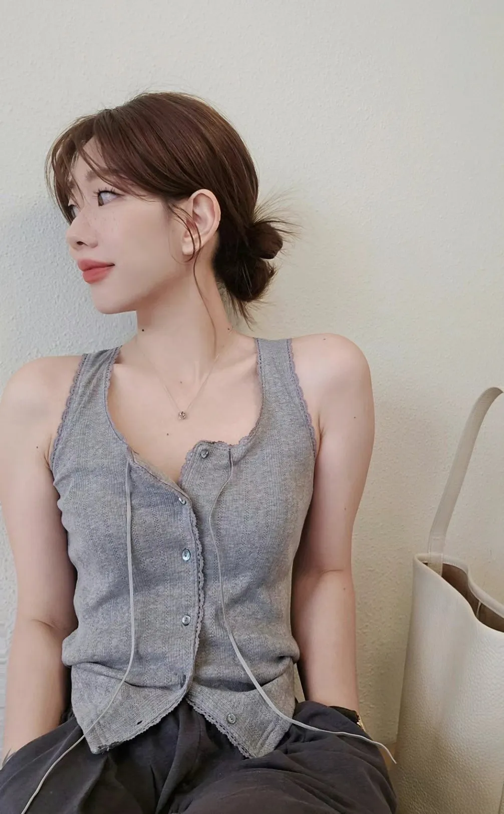 棉,親膚舒適 細緻簍空 緹花織紋 領口蕾絲滾邊絲絨胸綁帶