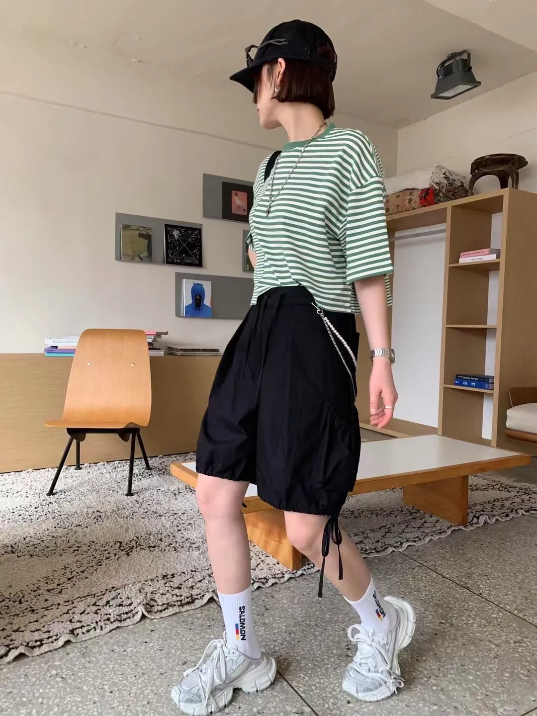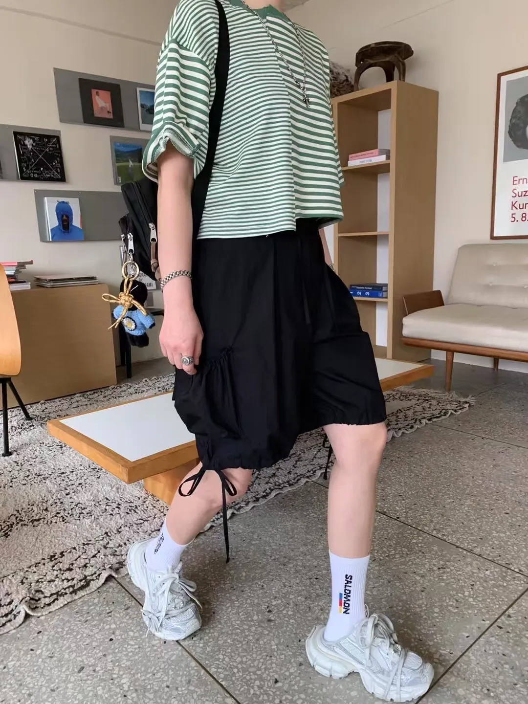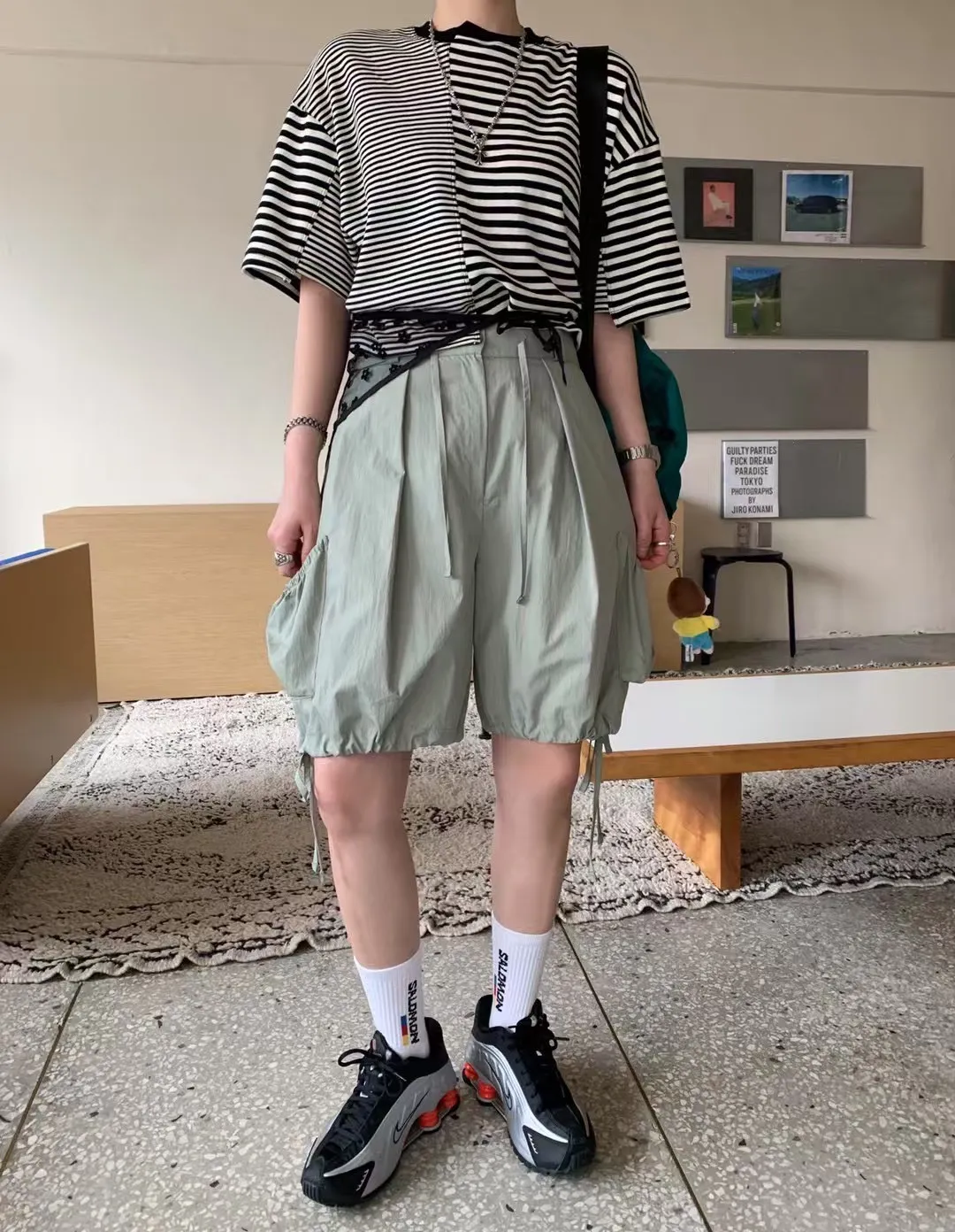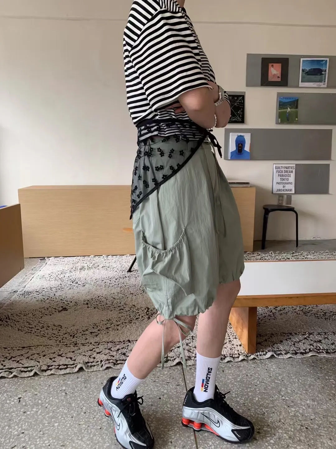 棉+尼龍 有口袋 雙側綁繩 薄款輕盈 全腰鬆緊