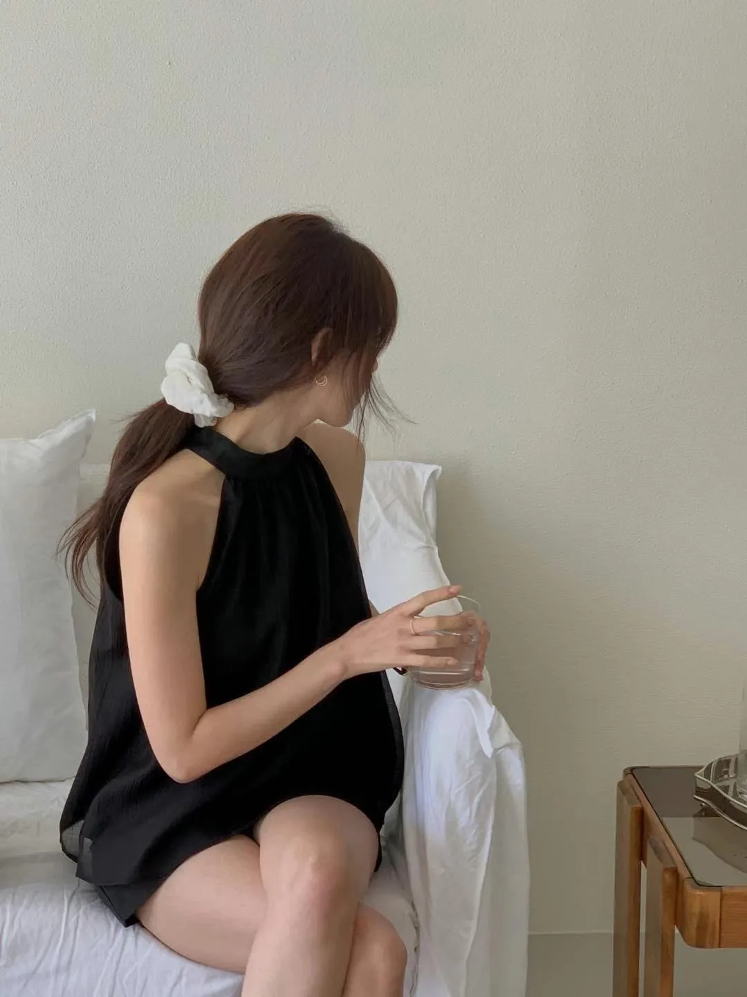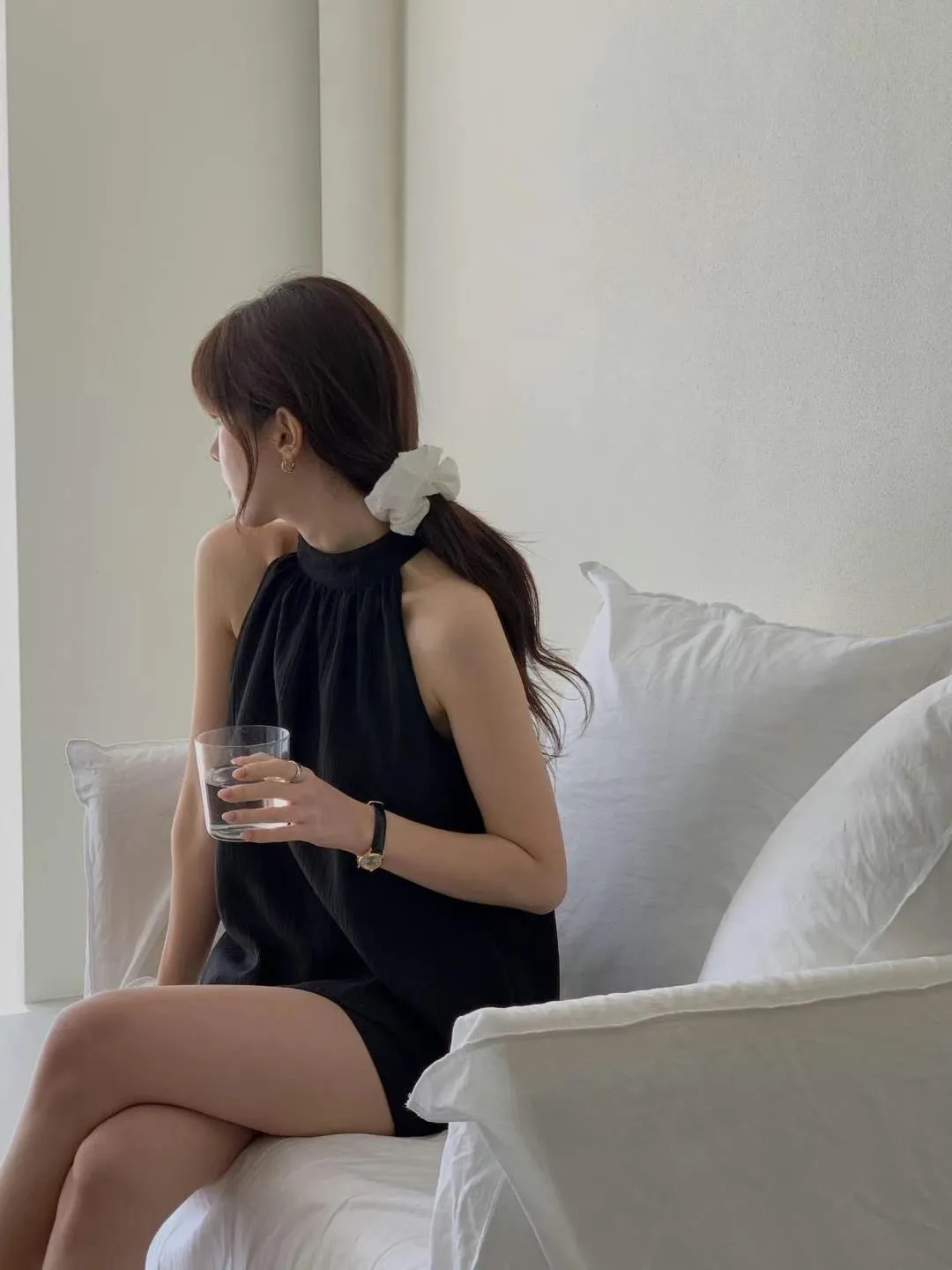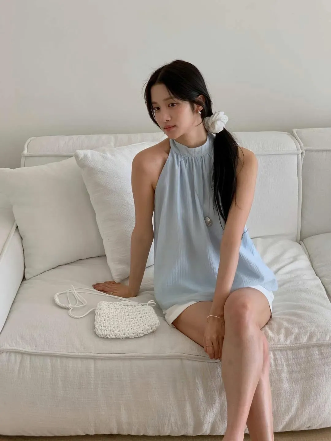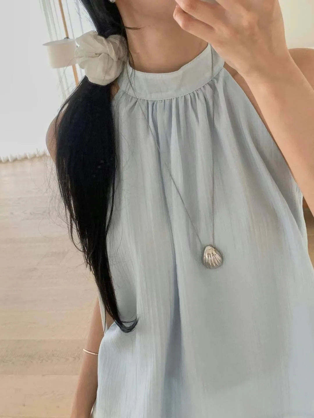縲縈+亞麻+聚酯 輕薄柔軟 涼感舒適有內裡 細緻氣質紋理 後頸釦穿脫