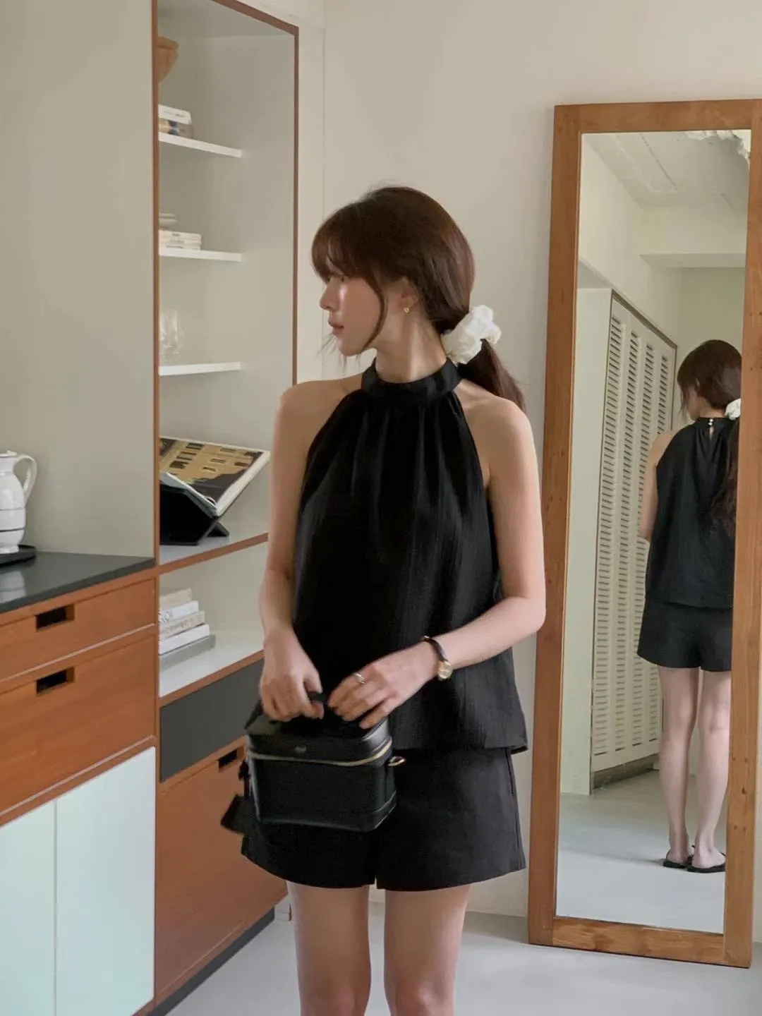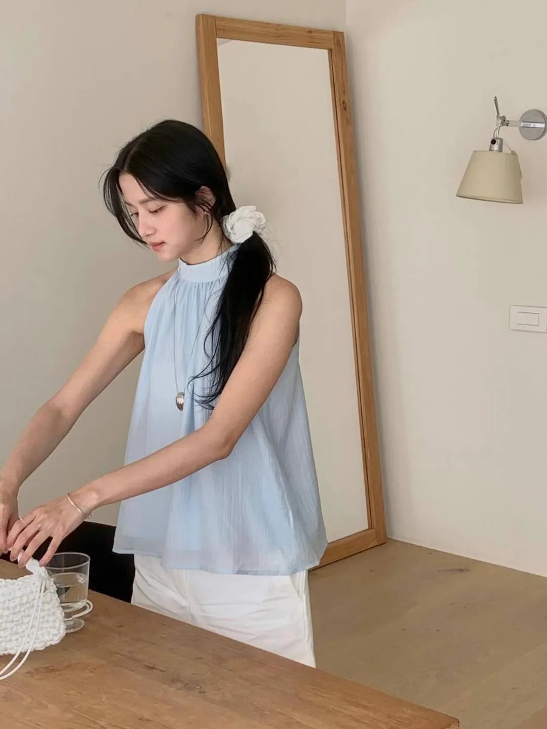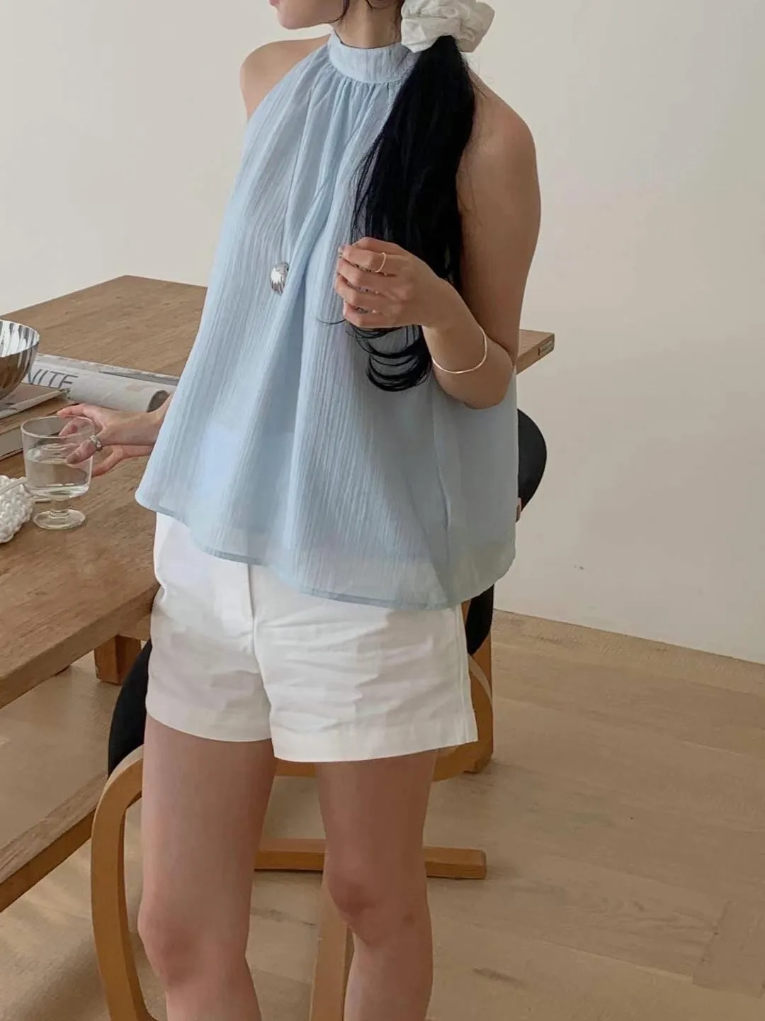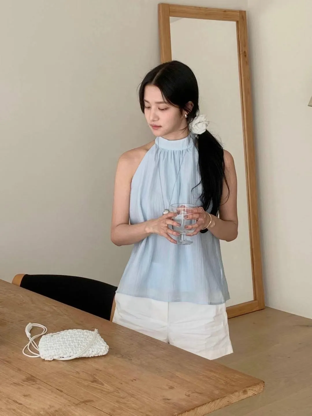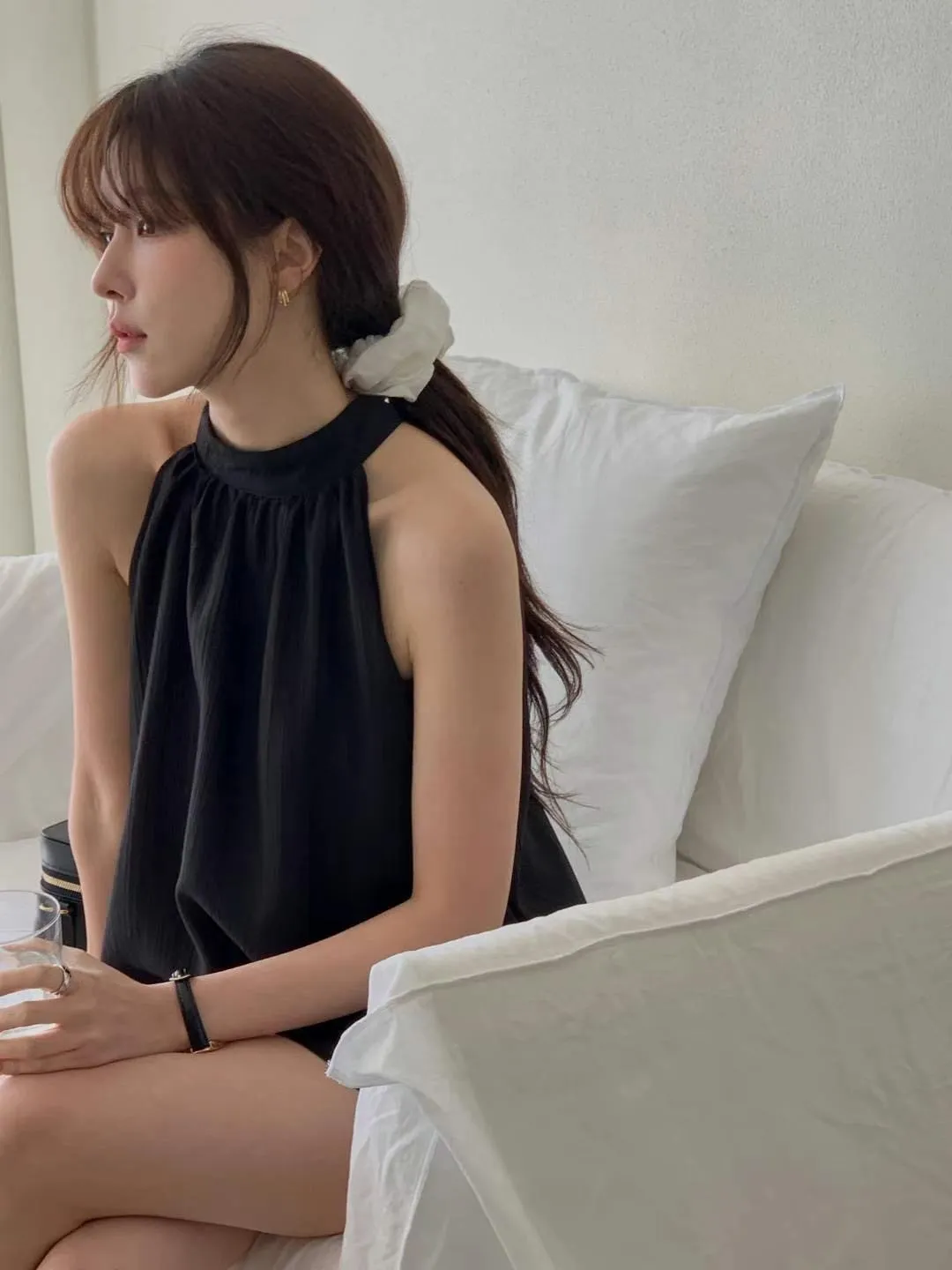 縲縈+亞麻+聚酯 輕薄柔軟 涼感舒適有內裡 細緻氣質紋理 後頸釦穿脫
