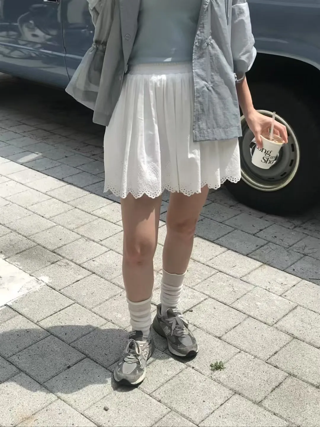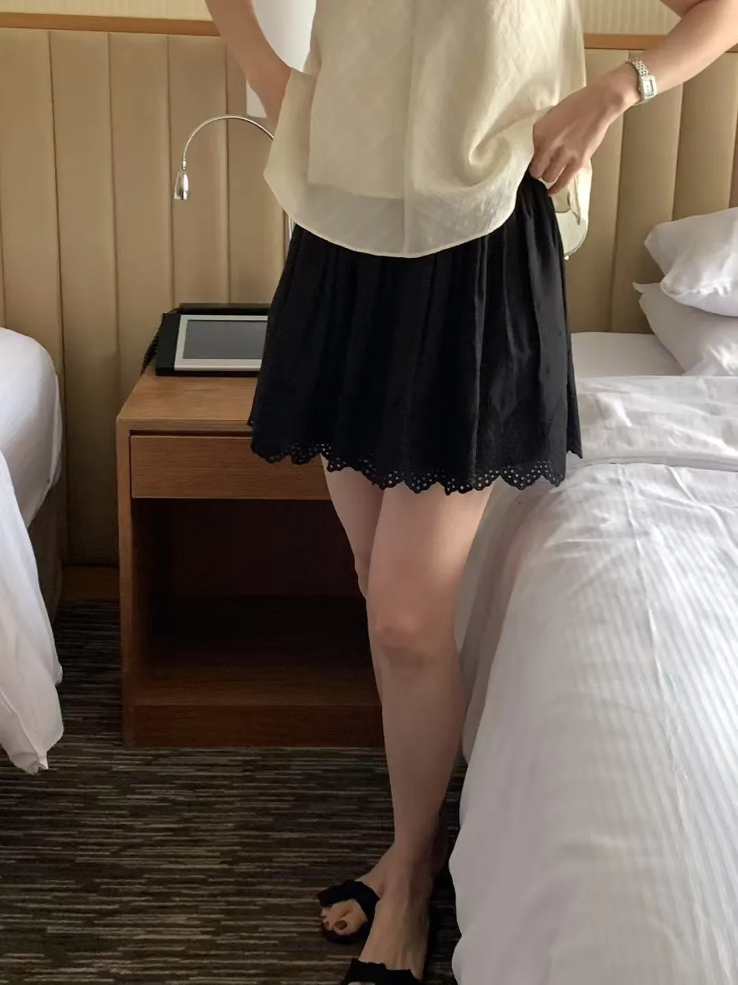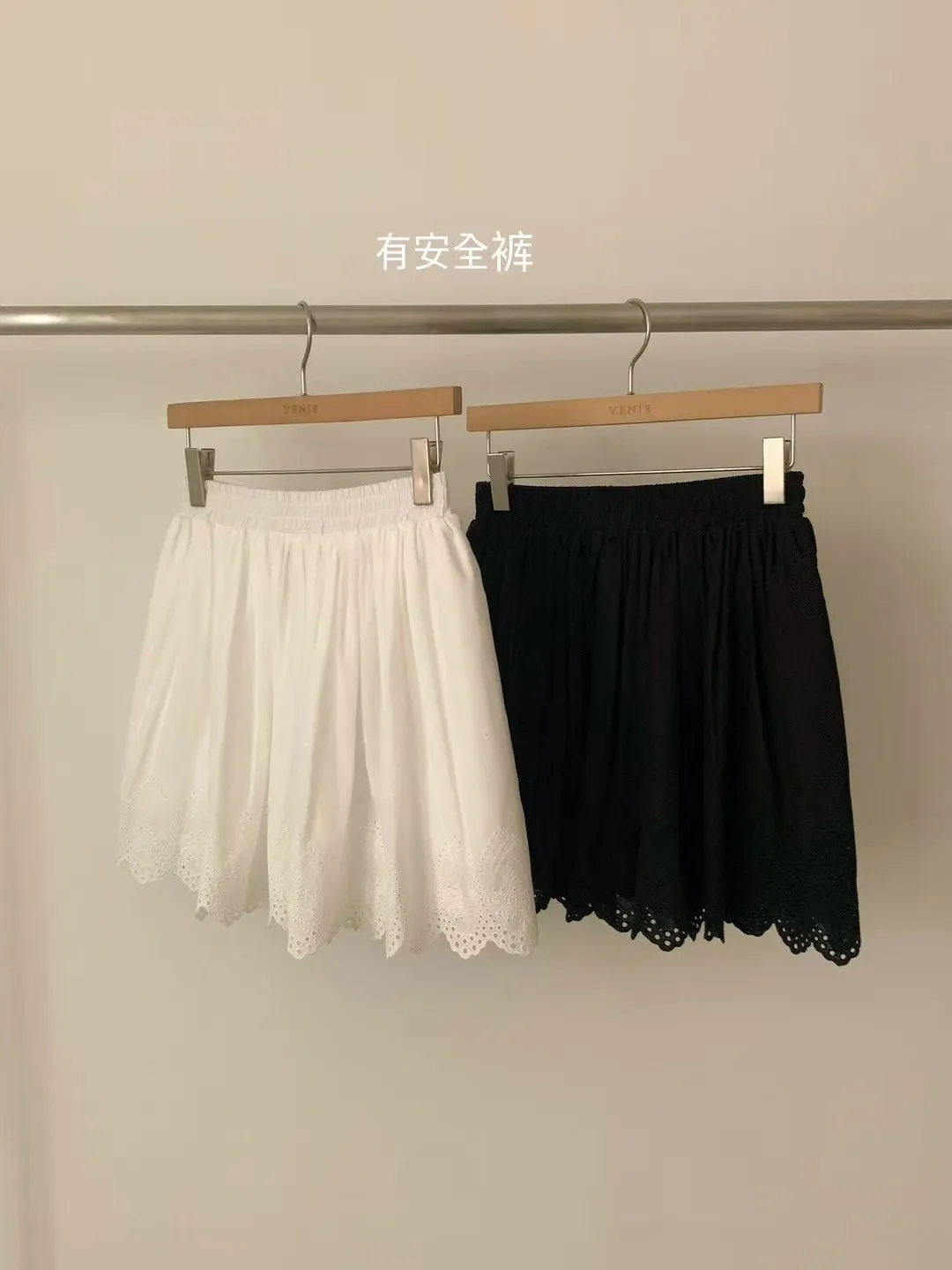 棉 下擺雕花簍空蕾絲 有內裡 全腰鬆緊 是褲裙