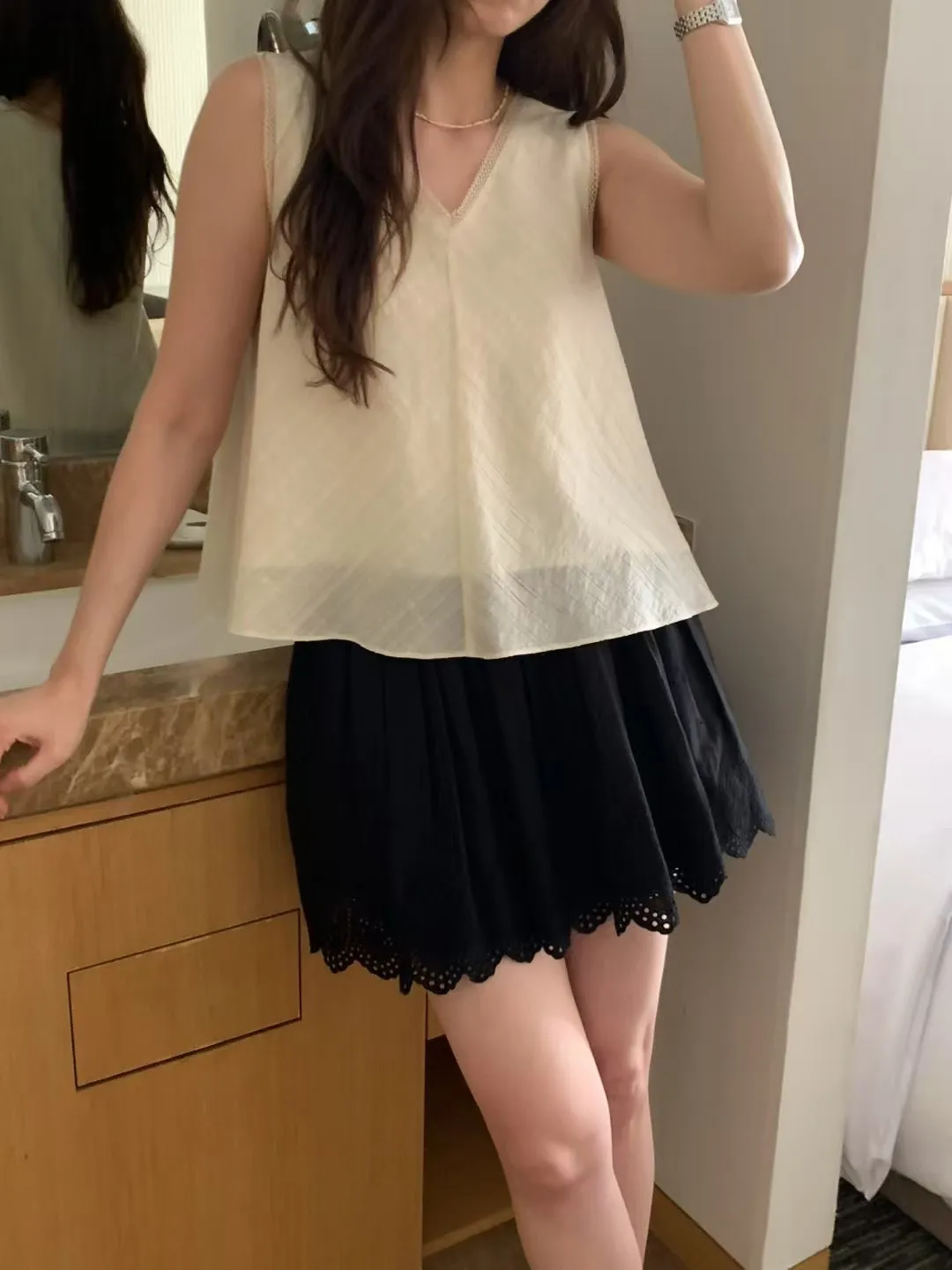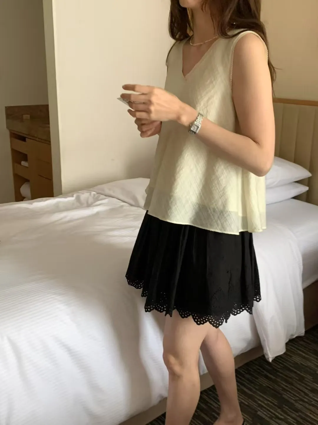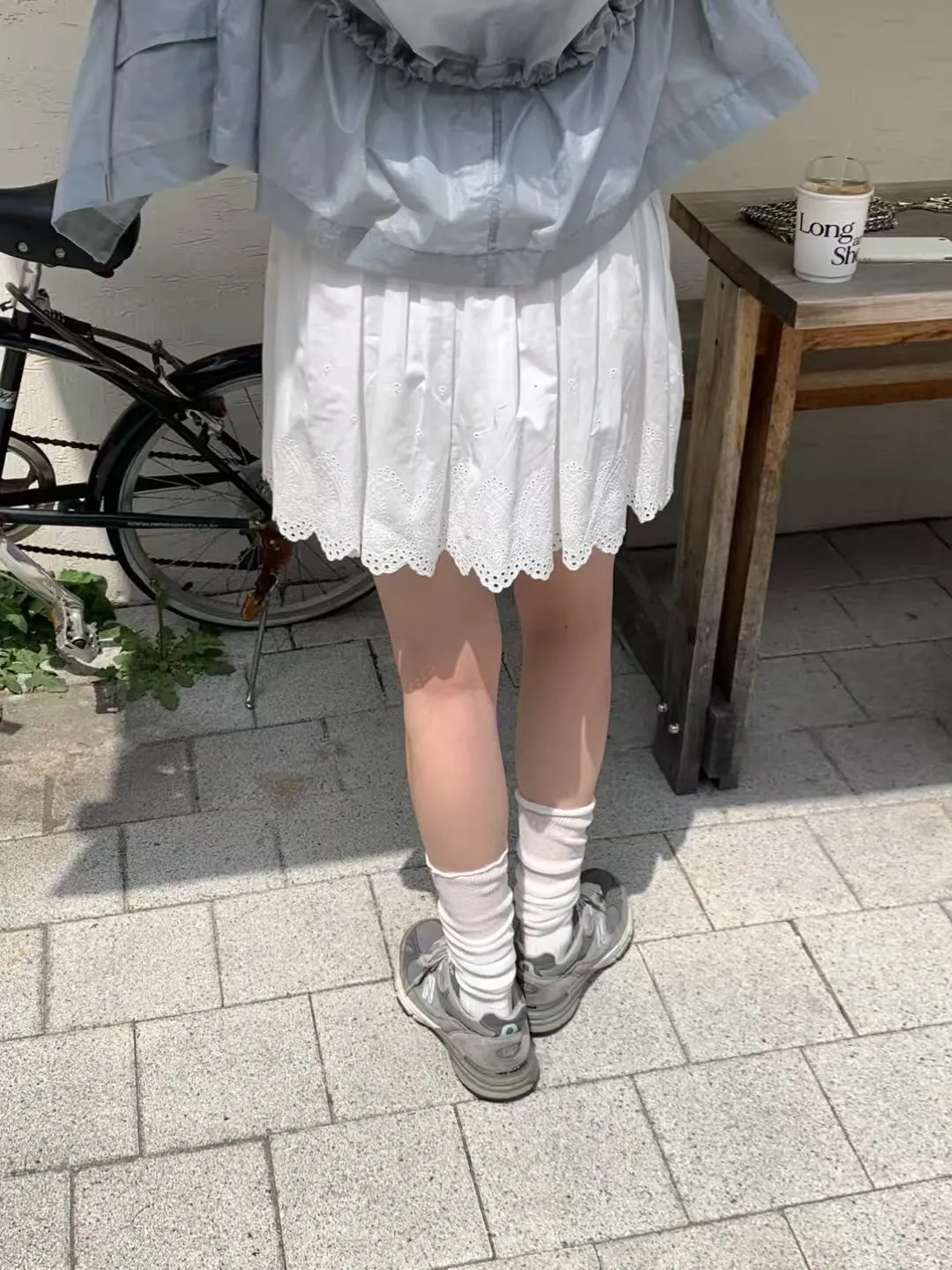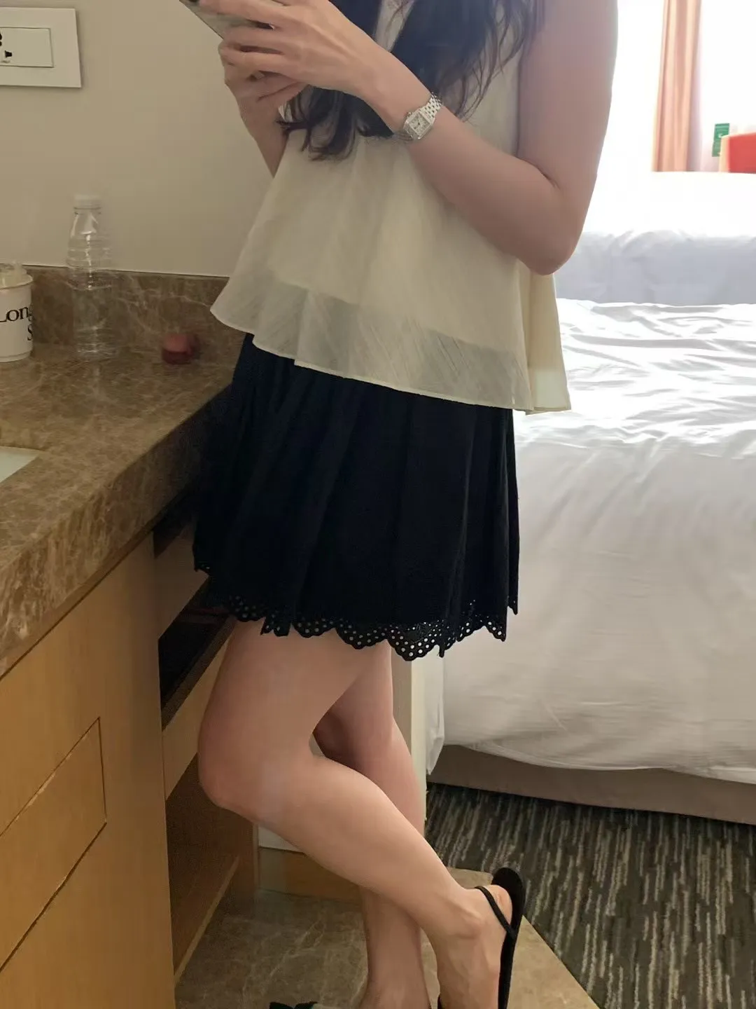棉 下擺雕花簍空蕾絲 有內裡 全腰鬆緊 是褲裙
