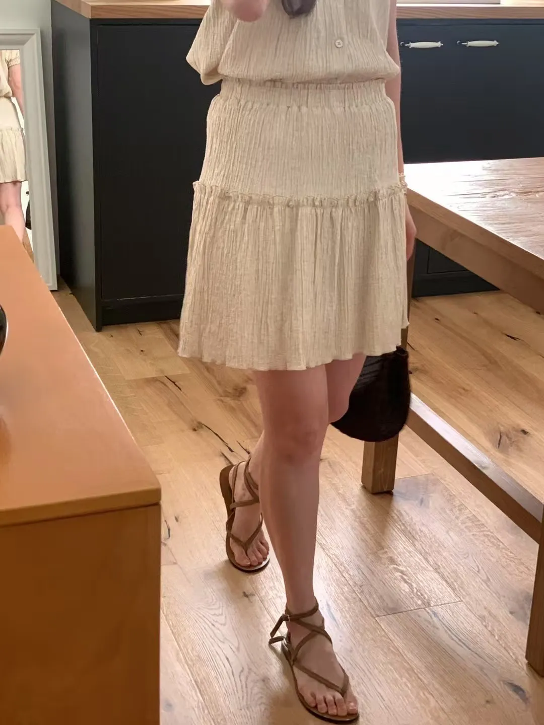 天絲+亞麻+縲縈+聚酯 不易皺 全腰鬆緊 無口袋