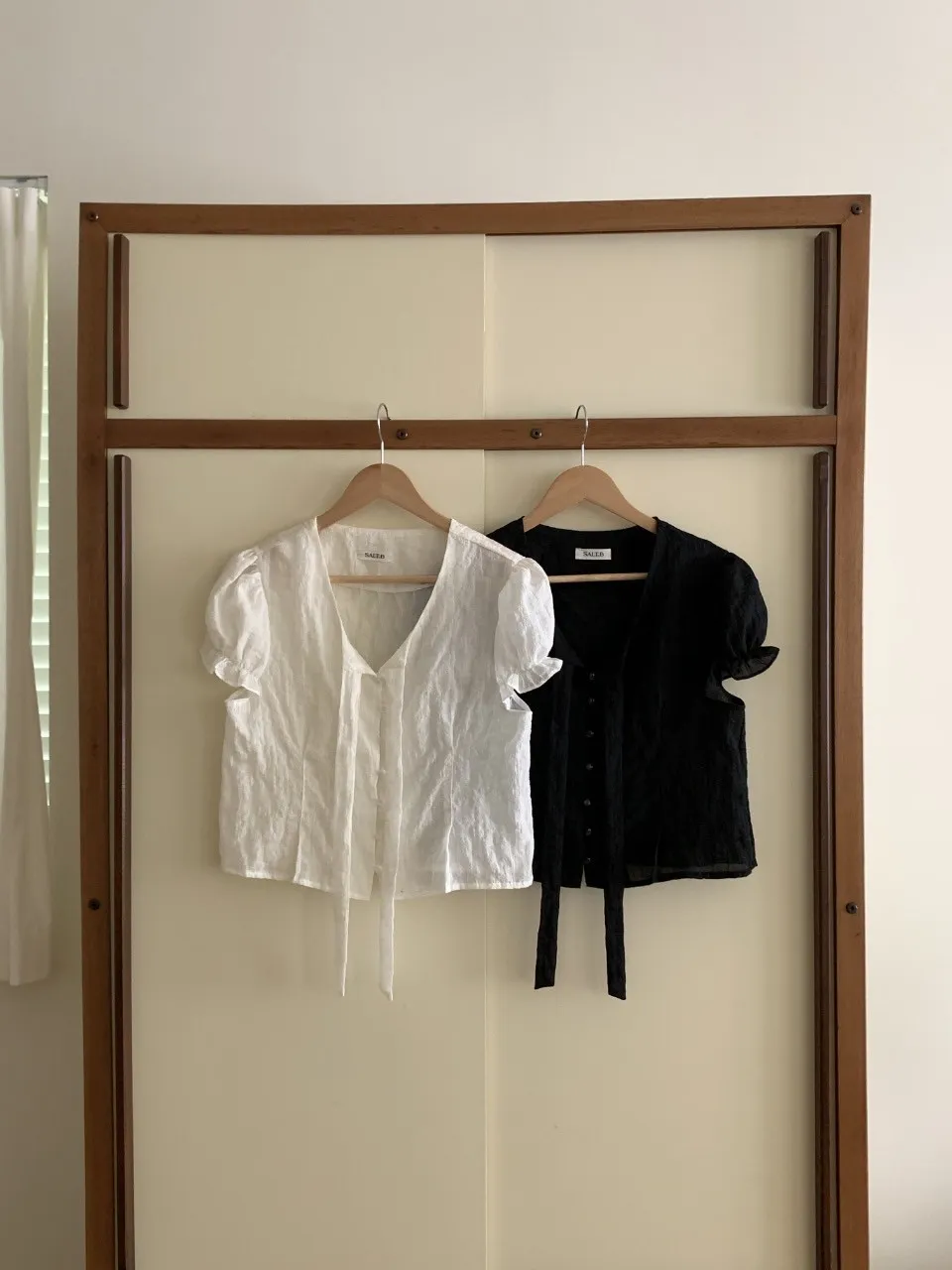 縲縈+聚酯 珍珠光澤 細緻花朵面料 荷葉鬆緊公主袖 薄款透光舒適