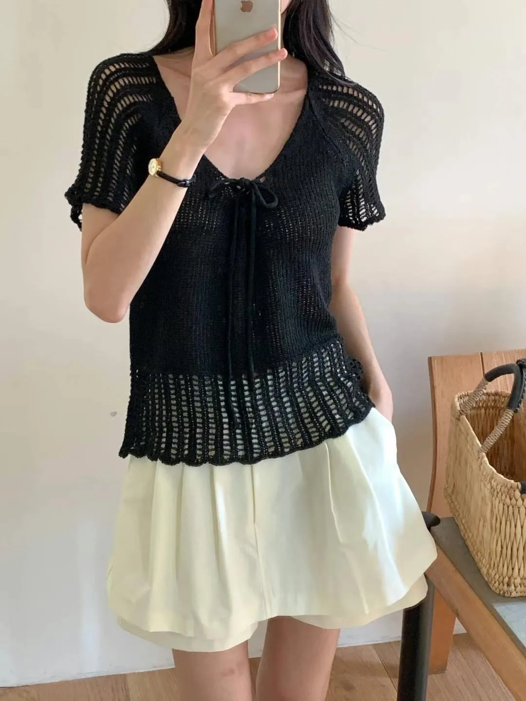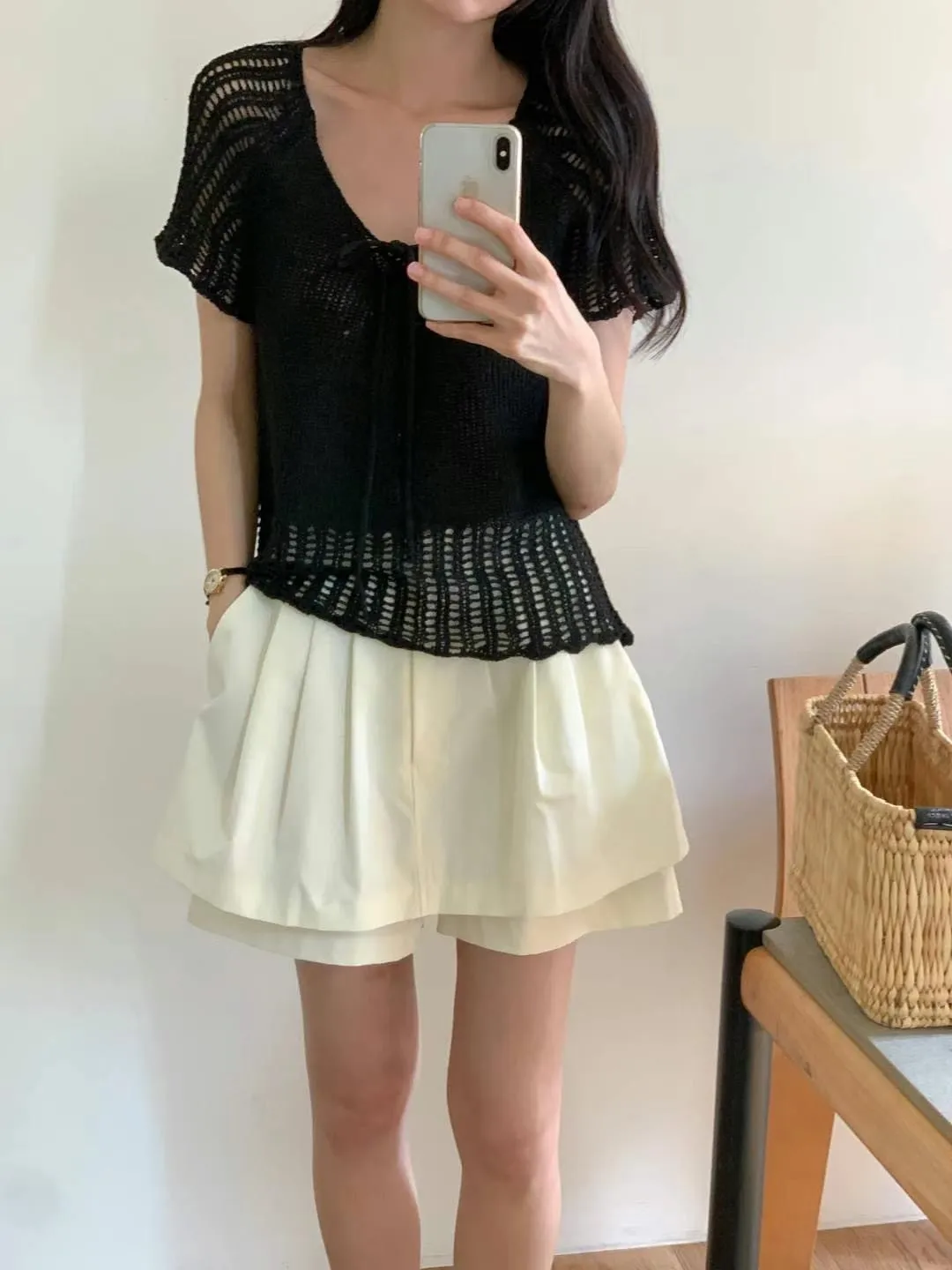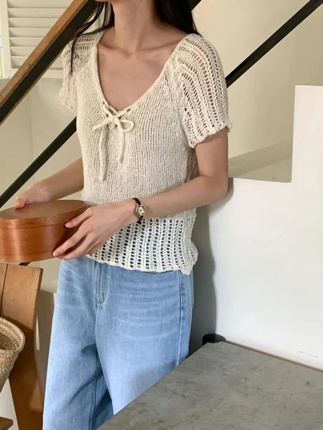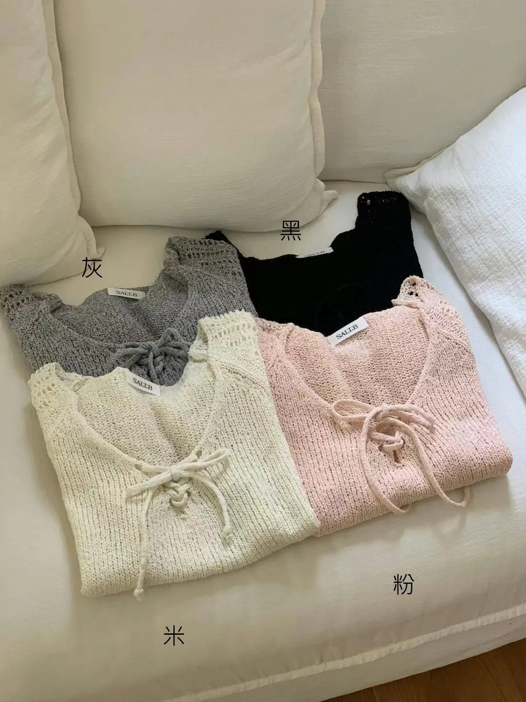 聚酯 有彈性 胸前蝴蝶結 透氣簍空針織