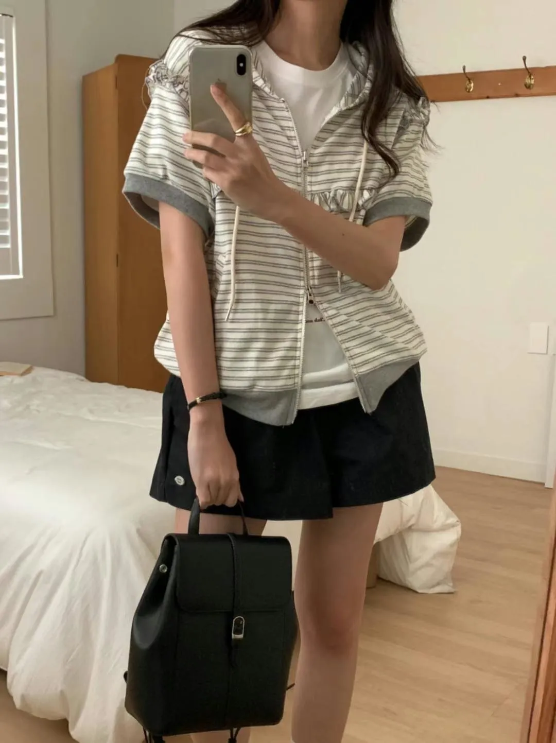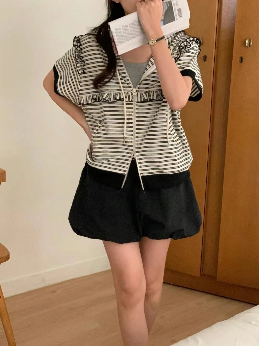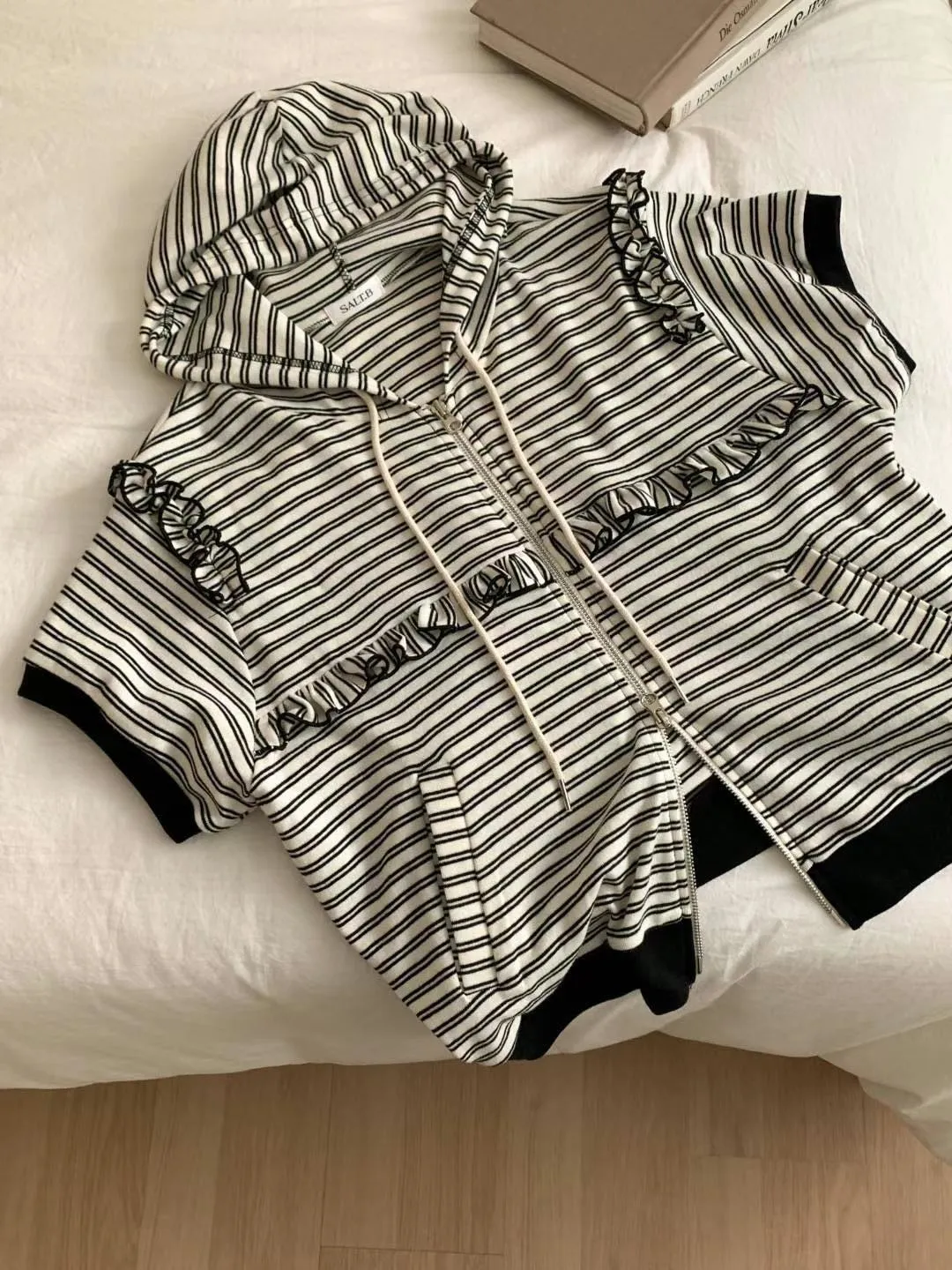 棉+莫代爾 柔軟舒服 透氣適合夏天 連帽設計 拉鍊穿脫 荷葉滾邊