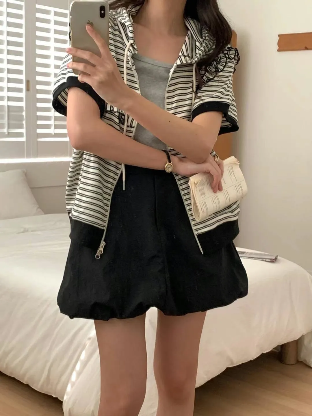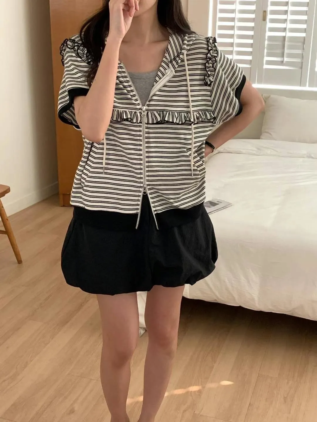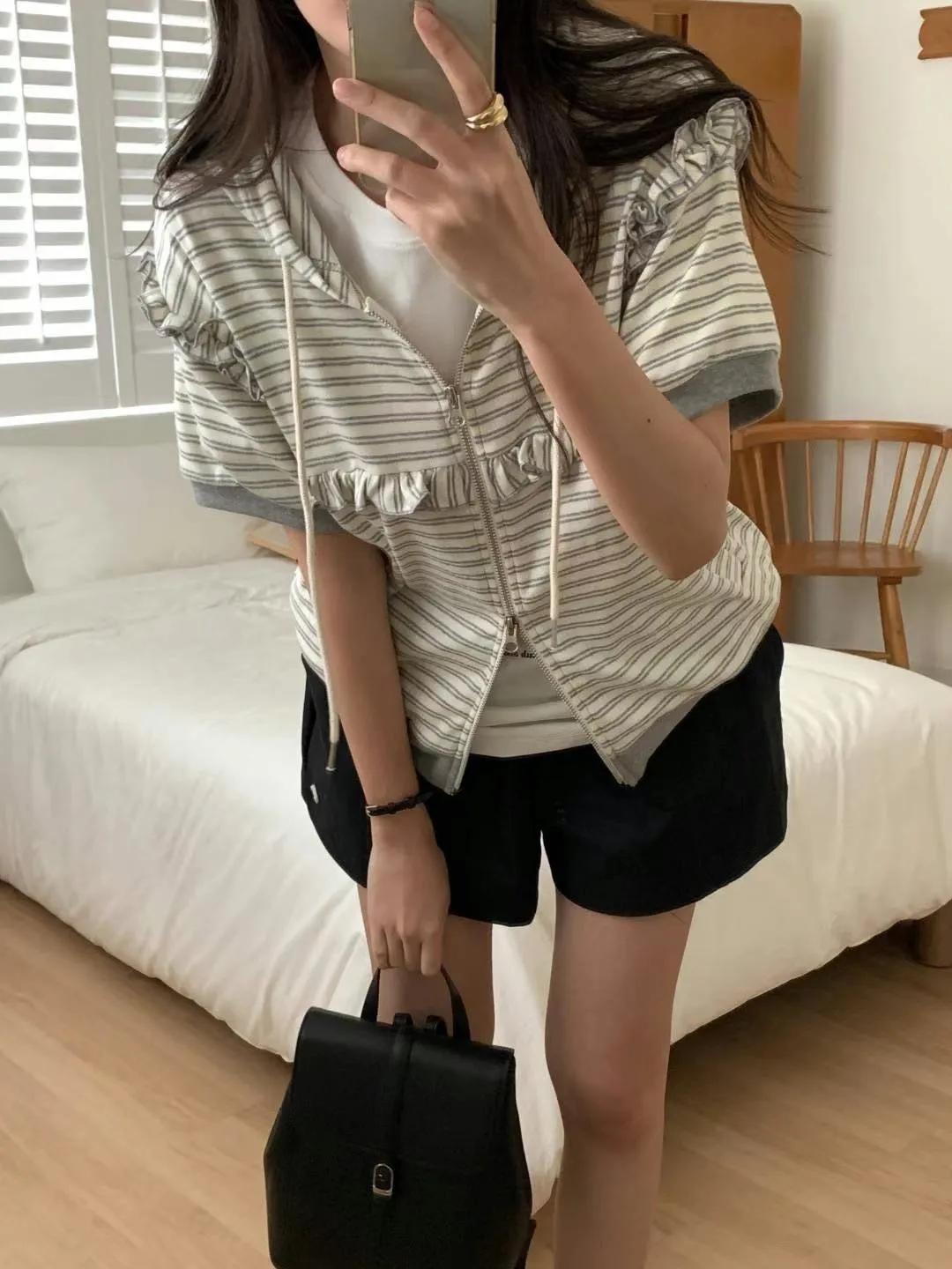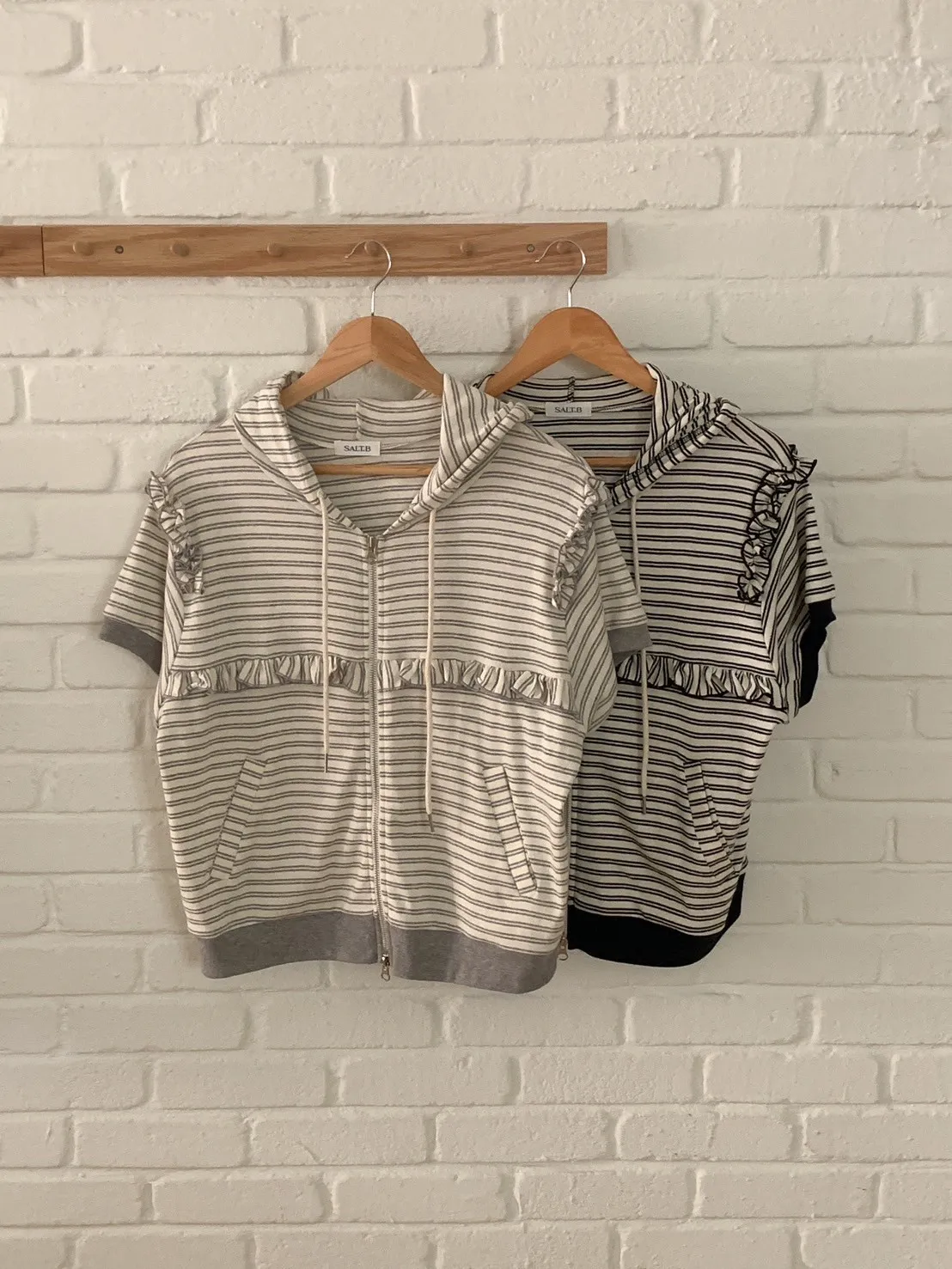 棉+莫代爾 柔軟舒服 透氣適合夏天 連帽設計 拉鍊穿脫 荷葉滾邊