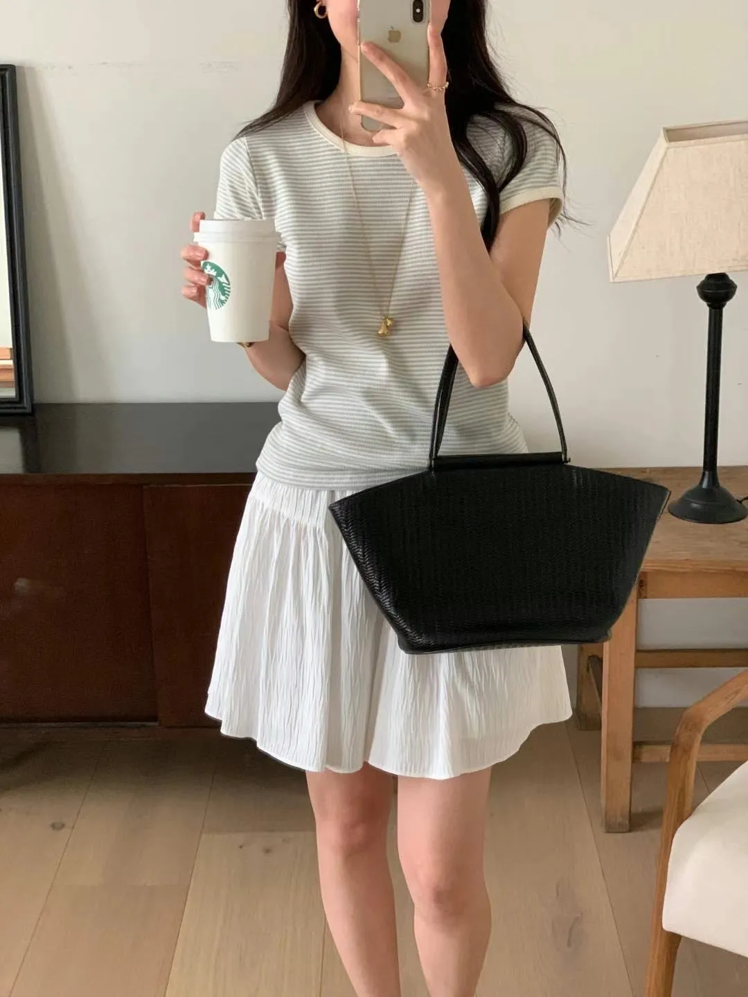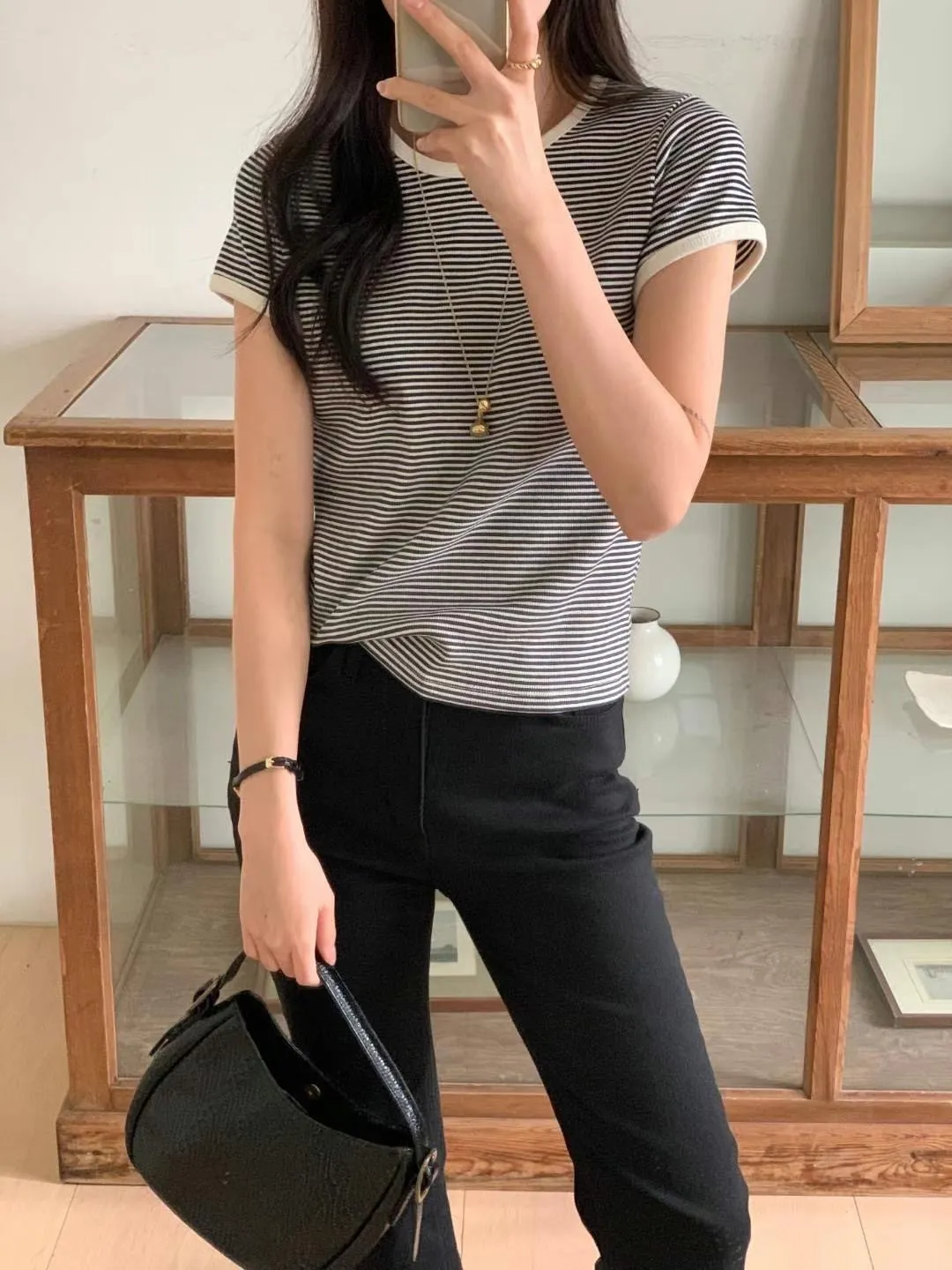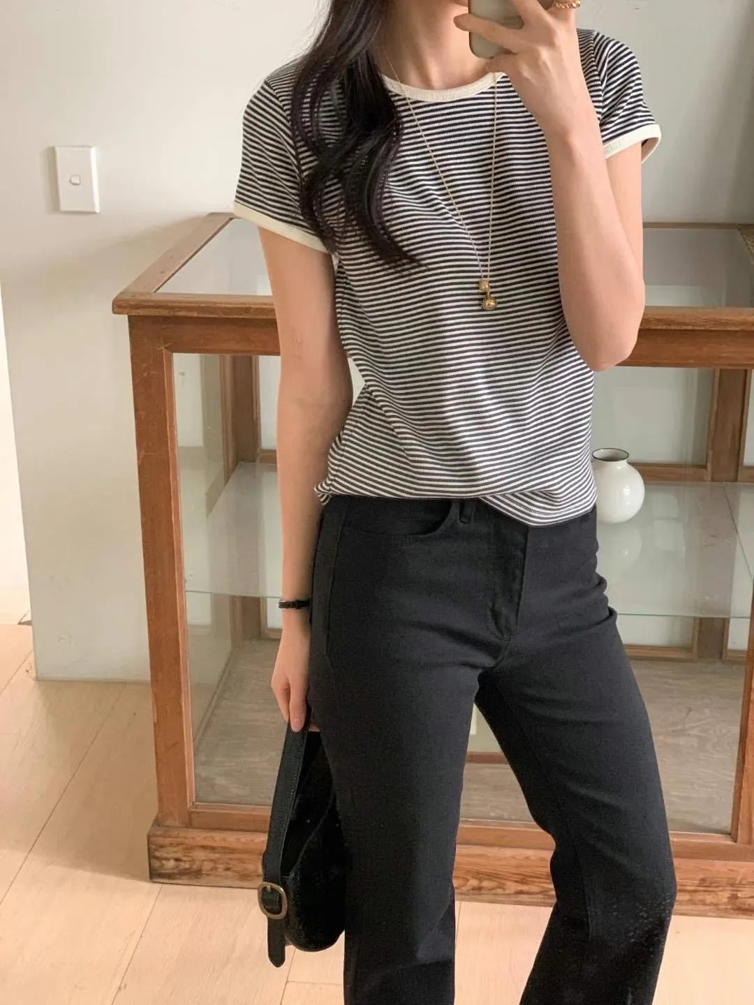 棉+彈力 柔軟舒適 彈性很好 領口袖口滾邊 穿到M號