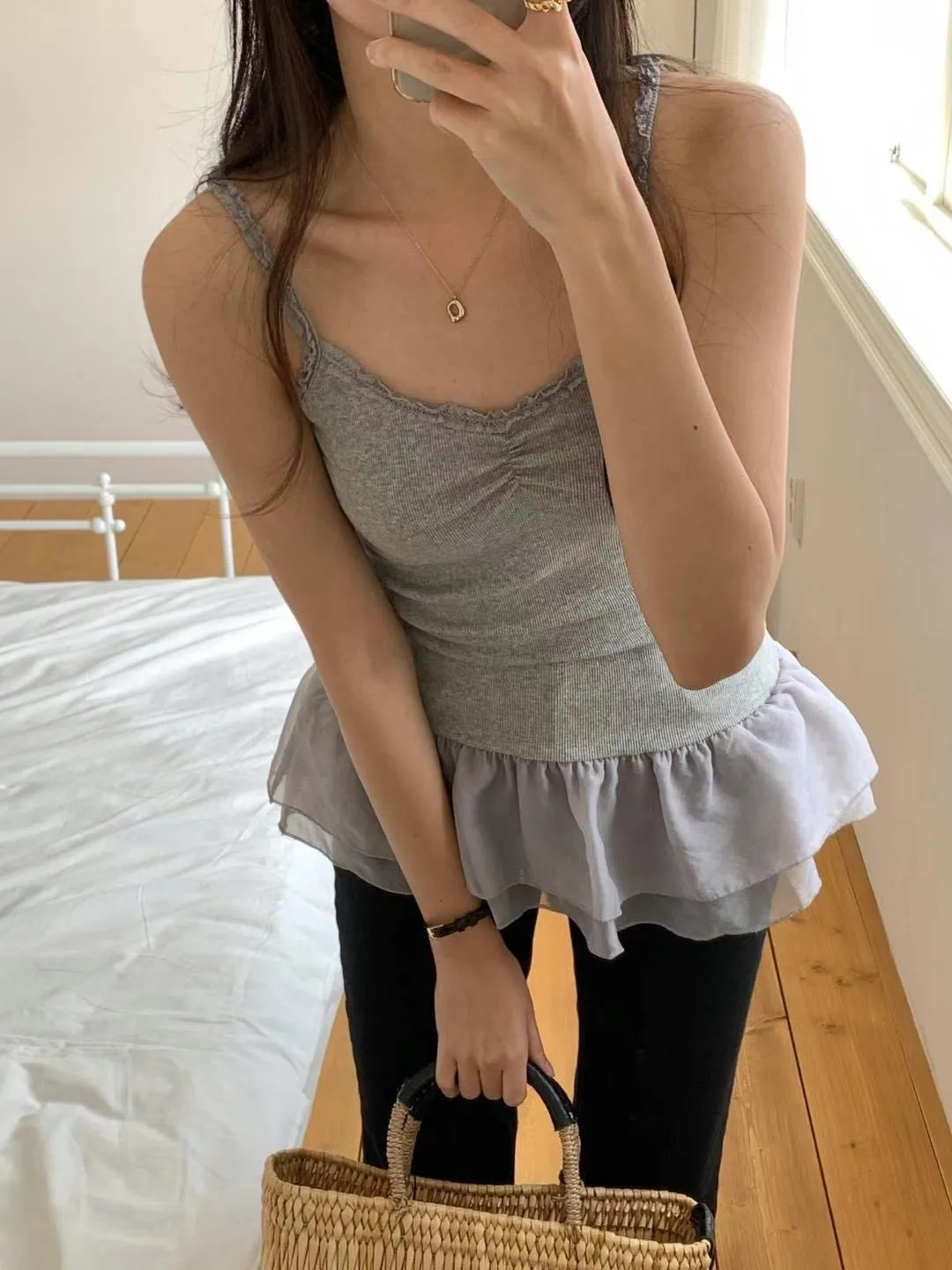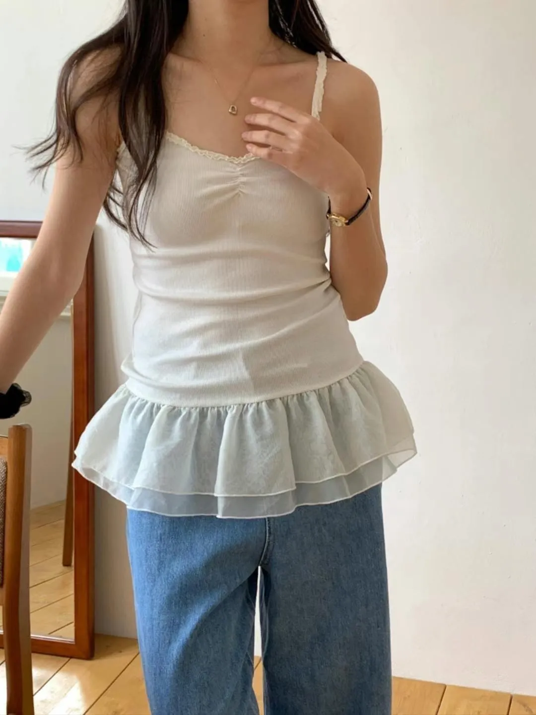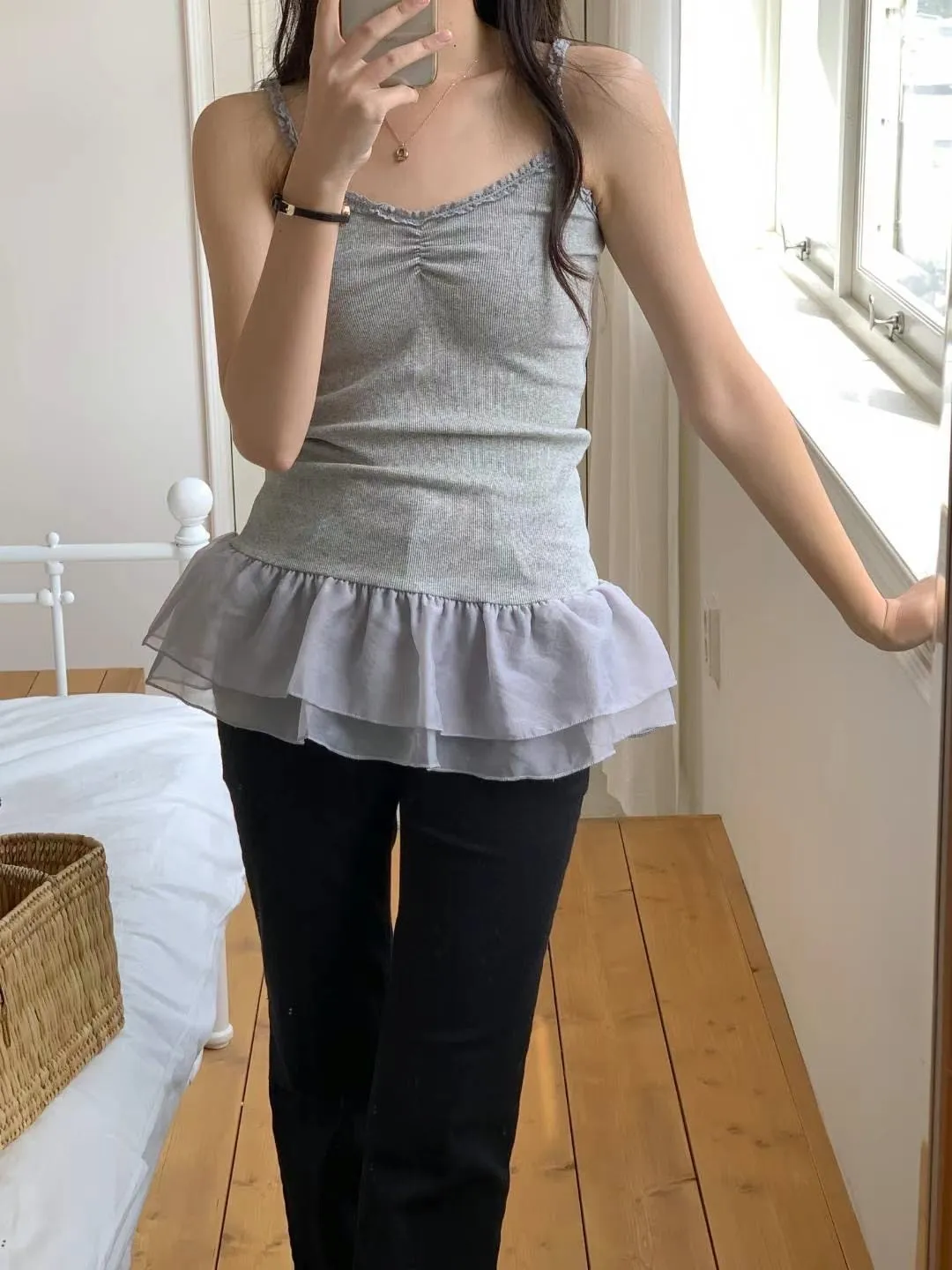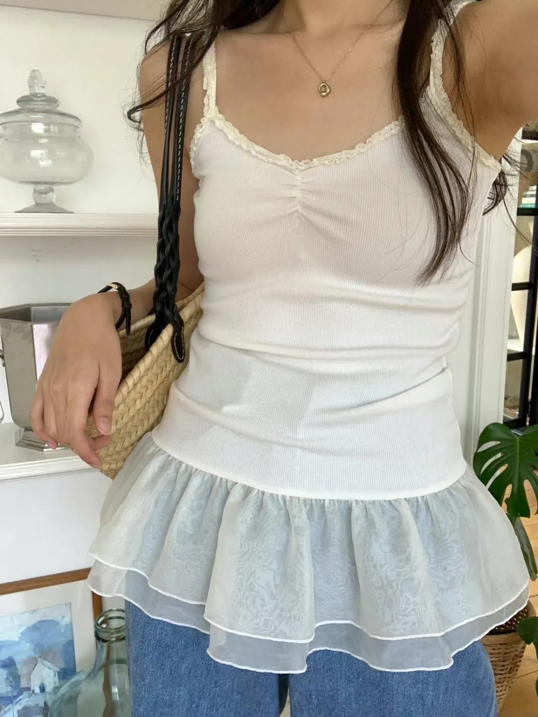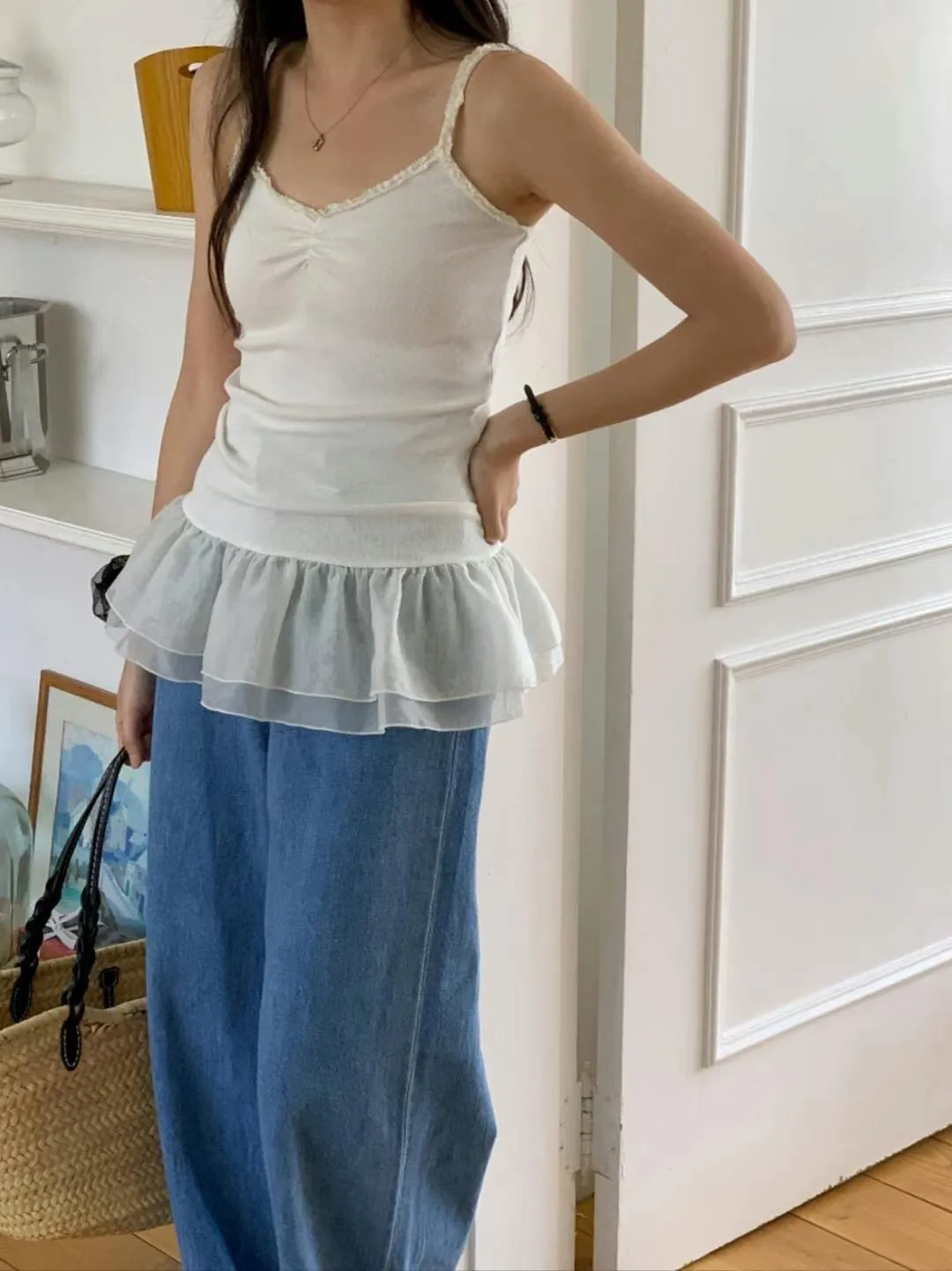 棉+歐根紗 肩帶不可調 胸抓皺設計 層次歐根紗下擺 穿到M號