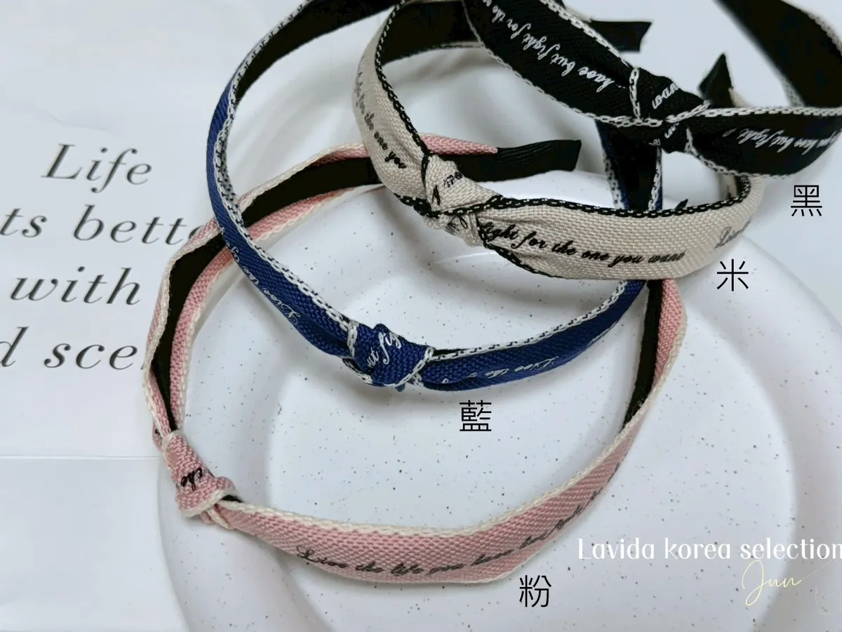 DF499細緻滾邊單扭結英文髮箍 米 粉 藍 黑 官網價$190 線上價$170