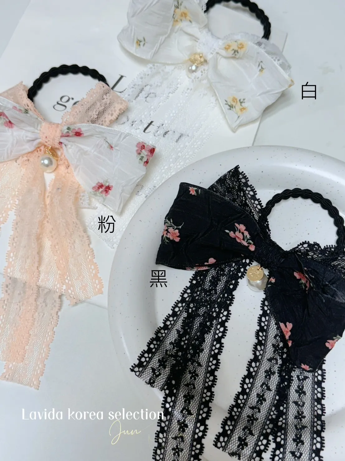 精緻層次蕾絲緞帶 小碎花細緻面料 彈性髮圈