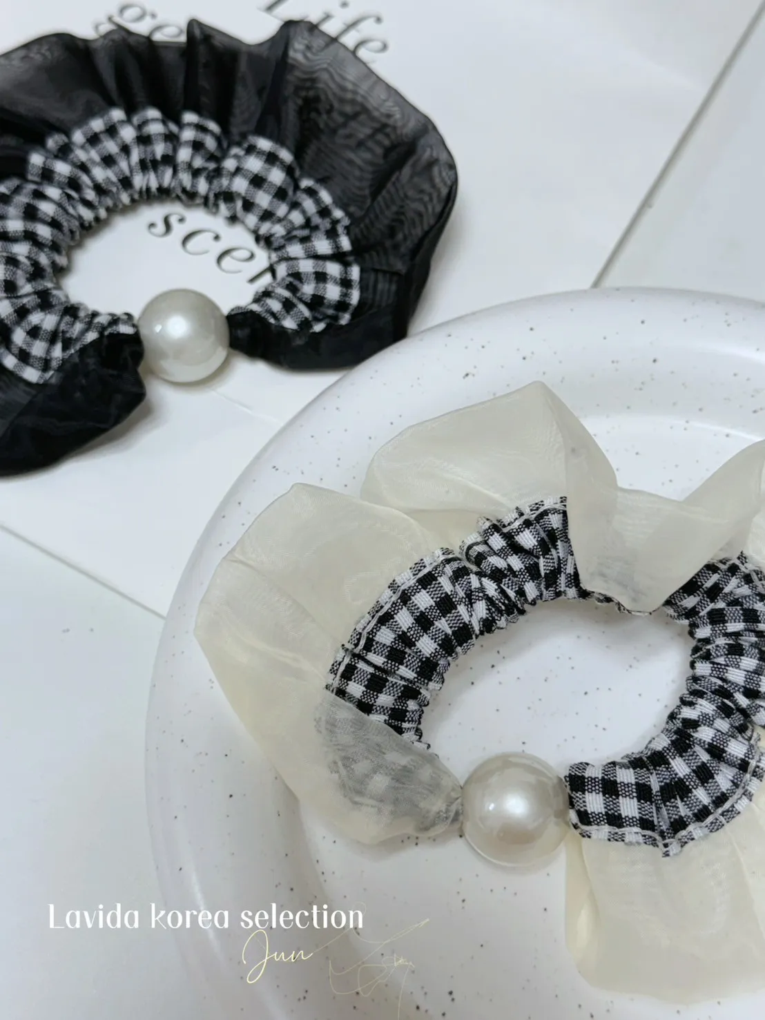 韓系設計風格 透光外圈網紗 細緻內圈格紋