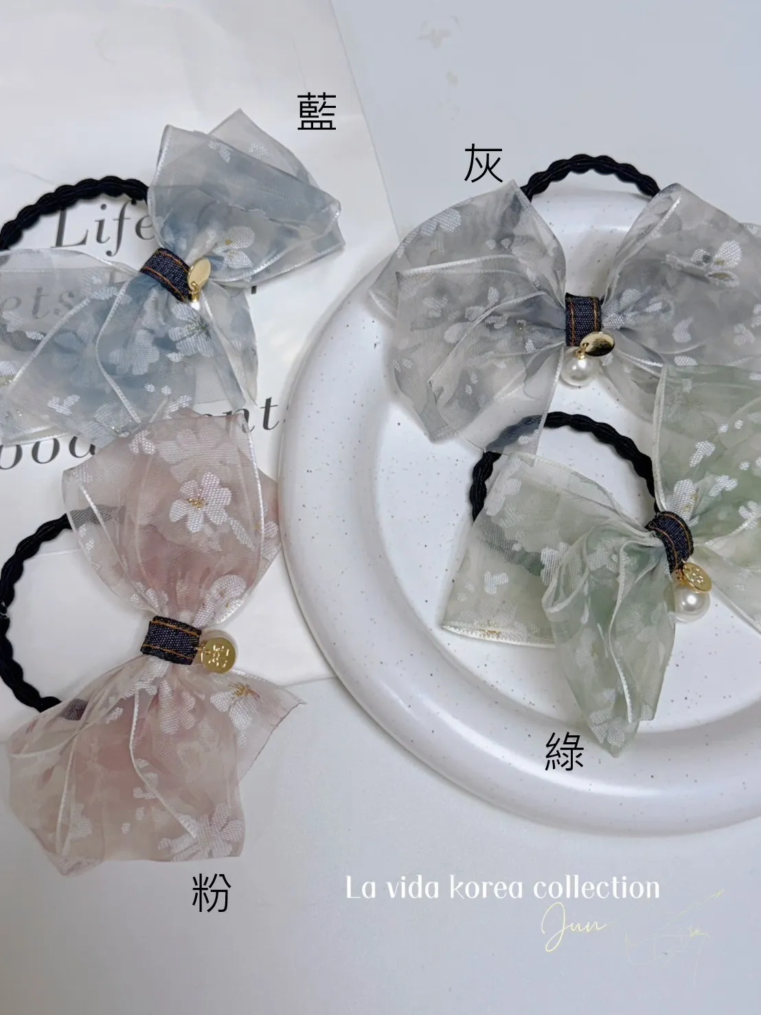 DF520極美霧霾透光刺繡髮圈 綠 藍 粉 灰 官網價$190 線上價$170