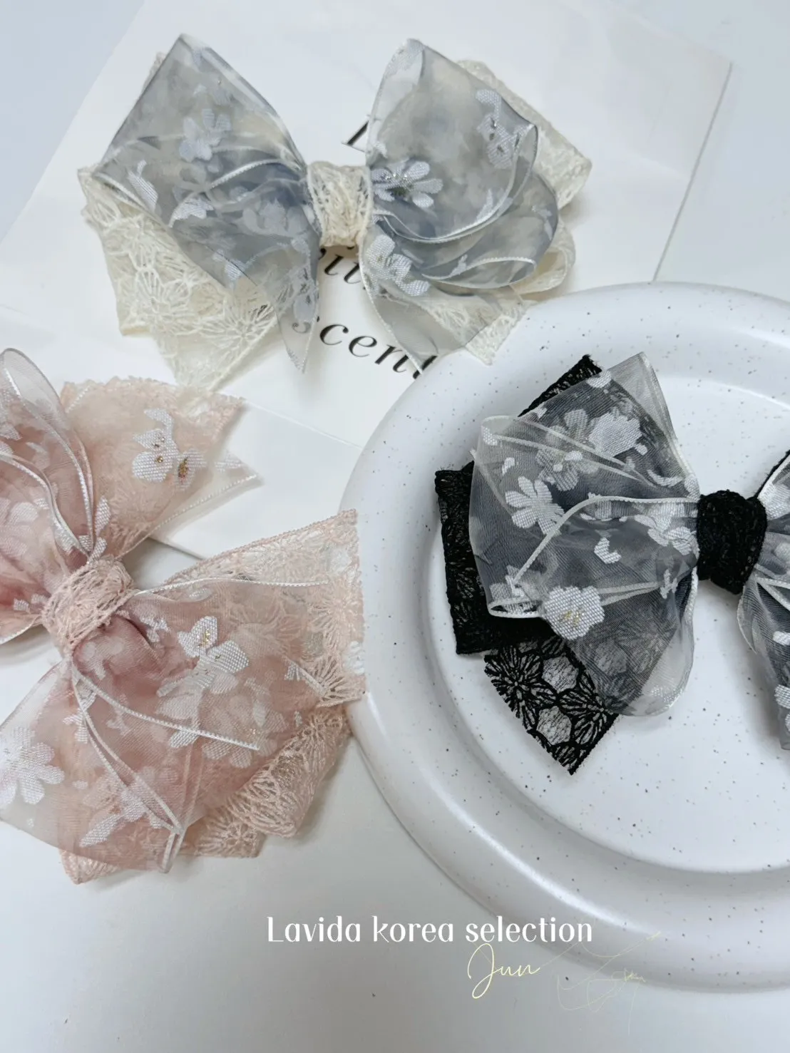 DF527許願款美到不行多層次蕾絲髮夾 粉 灰 黑 官網價$280 永恆甜甜價$260