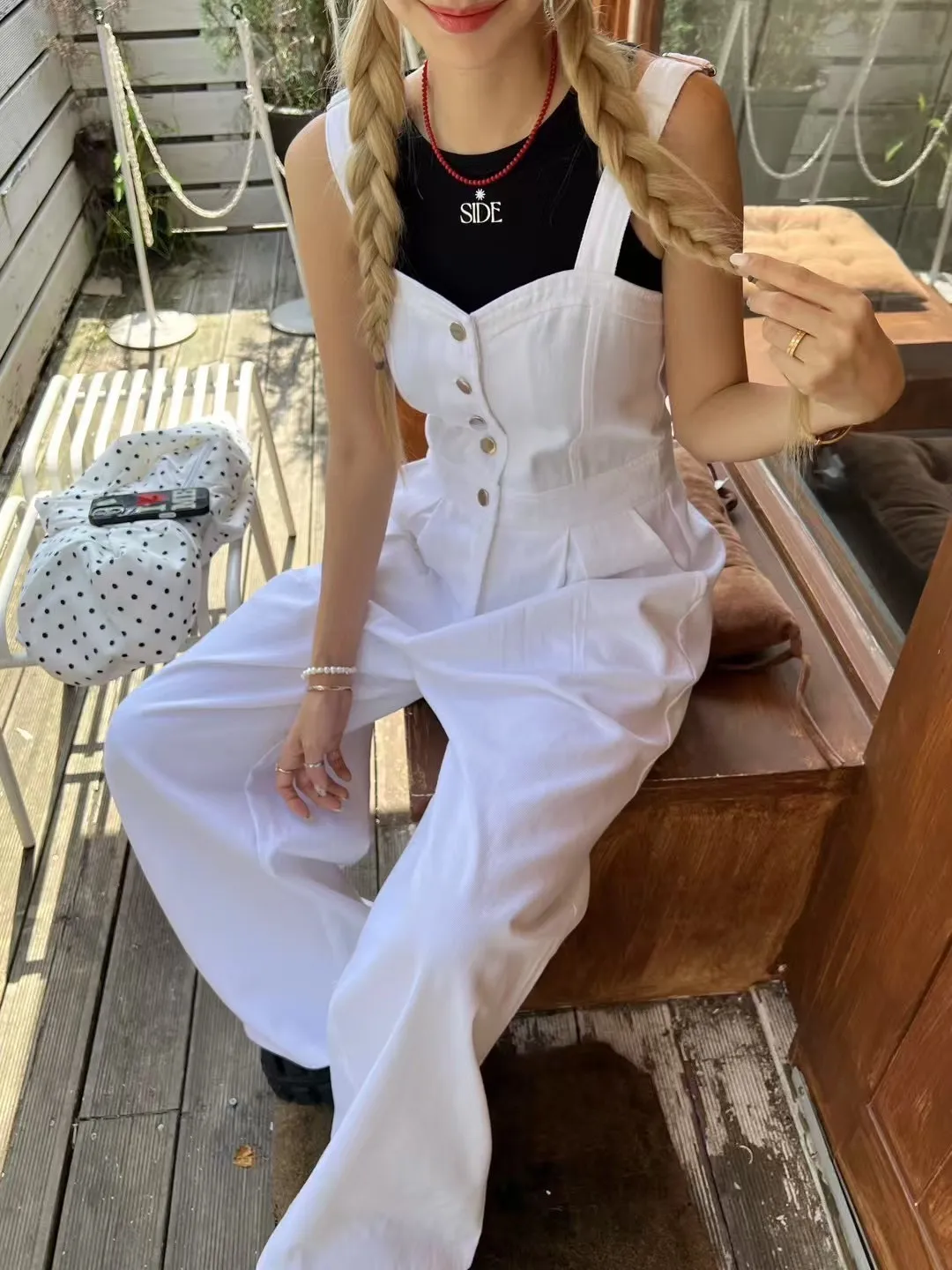 棉 連身褲 肩帶可調 後腰鬆緊 空間友善