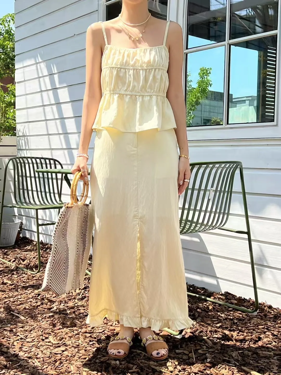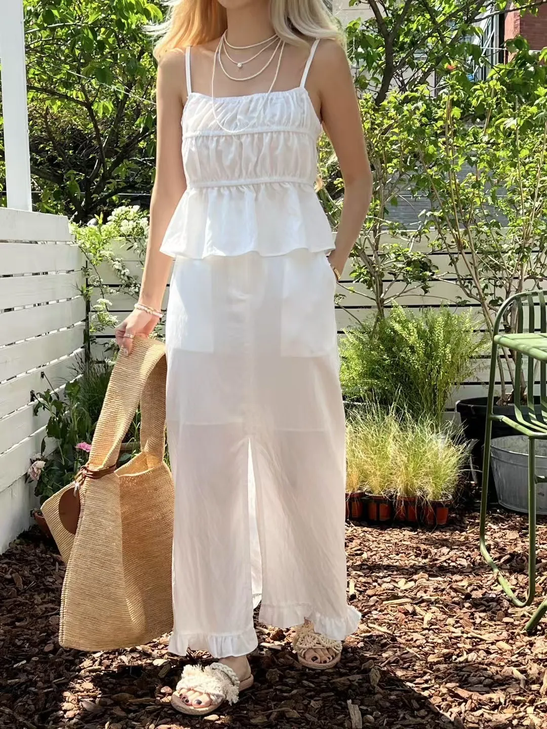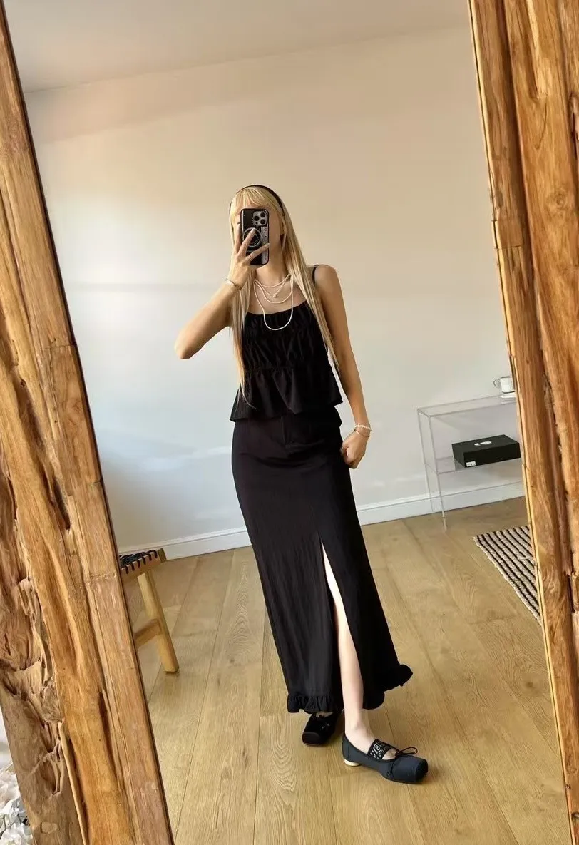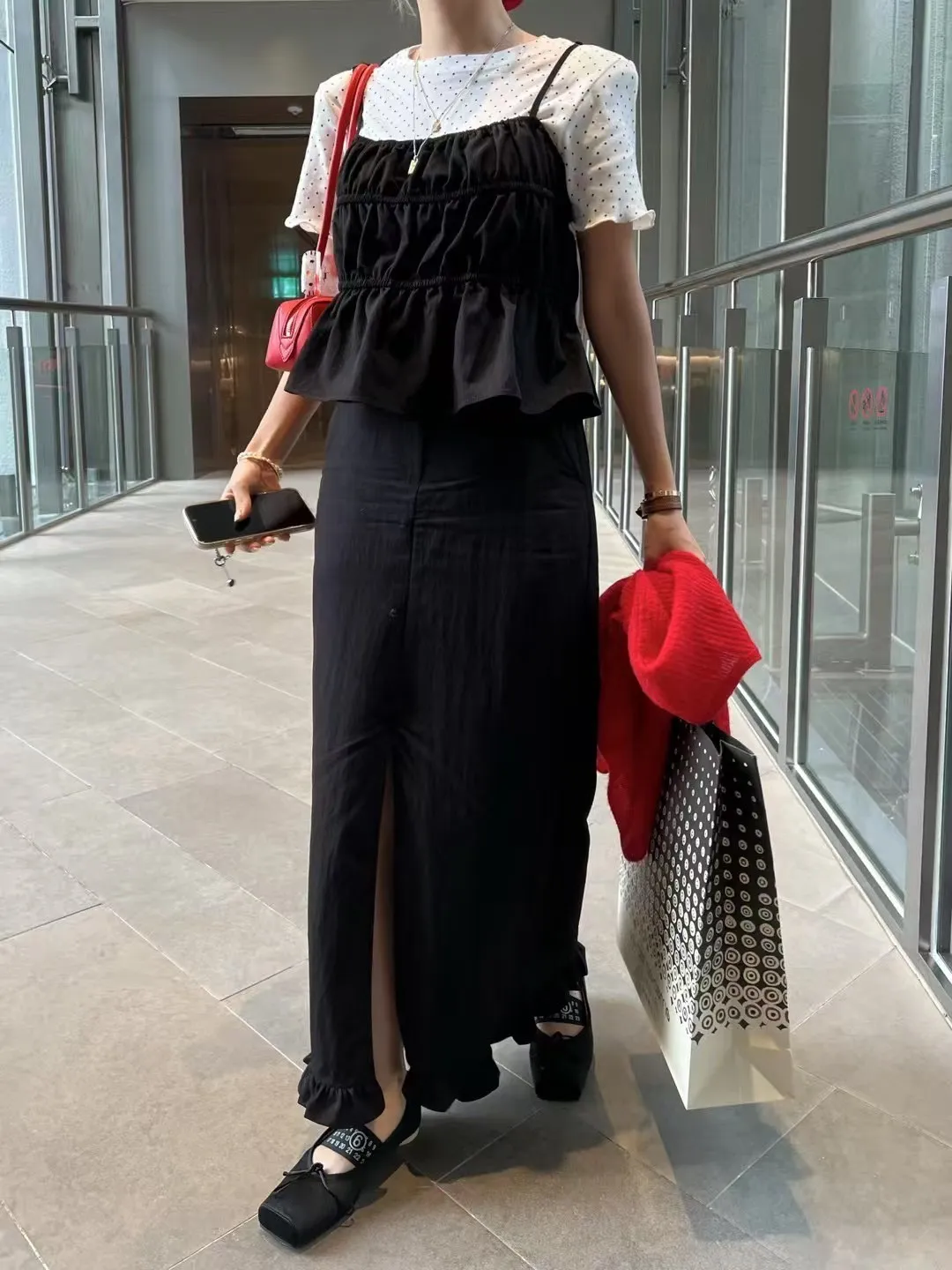 棉+縲縈+尼龍 釦鍊穿脫 微透材質 有內裡 前開叉 下擺荷葉邊